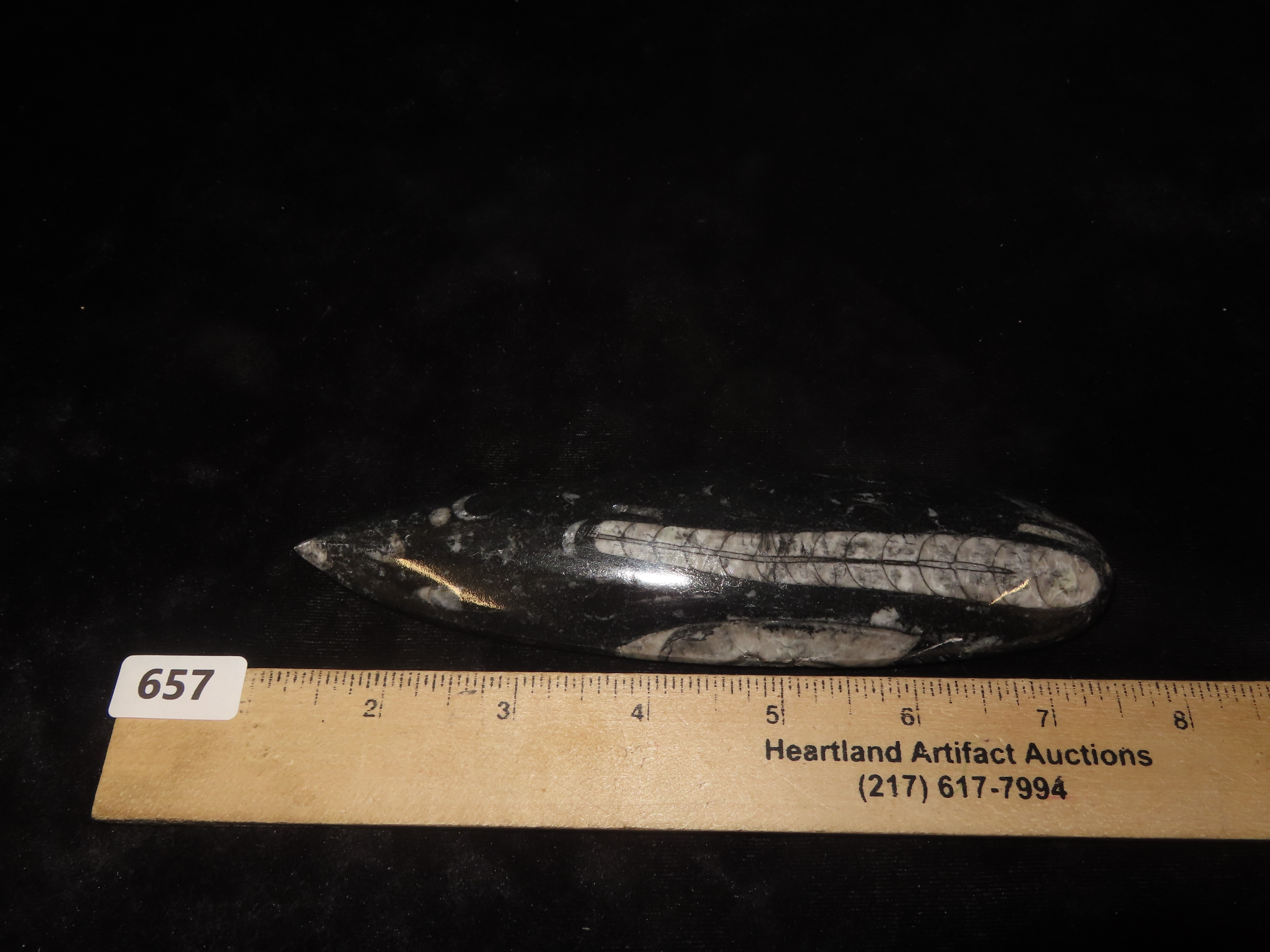 6 5/8" 400 Million Years Old Polished Orthoceras Fossil, Devonian Period, Atlas Mountains of Morocco