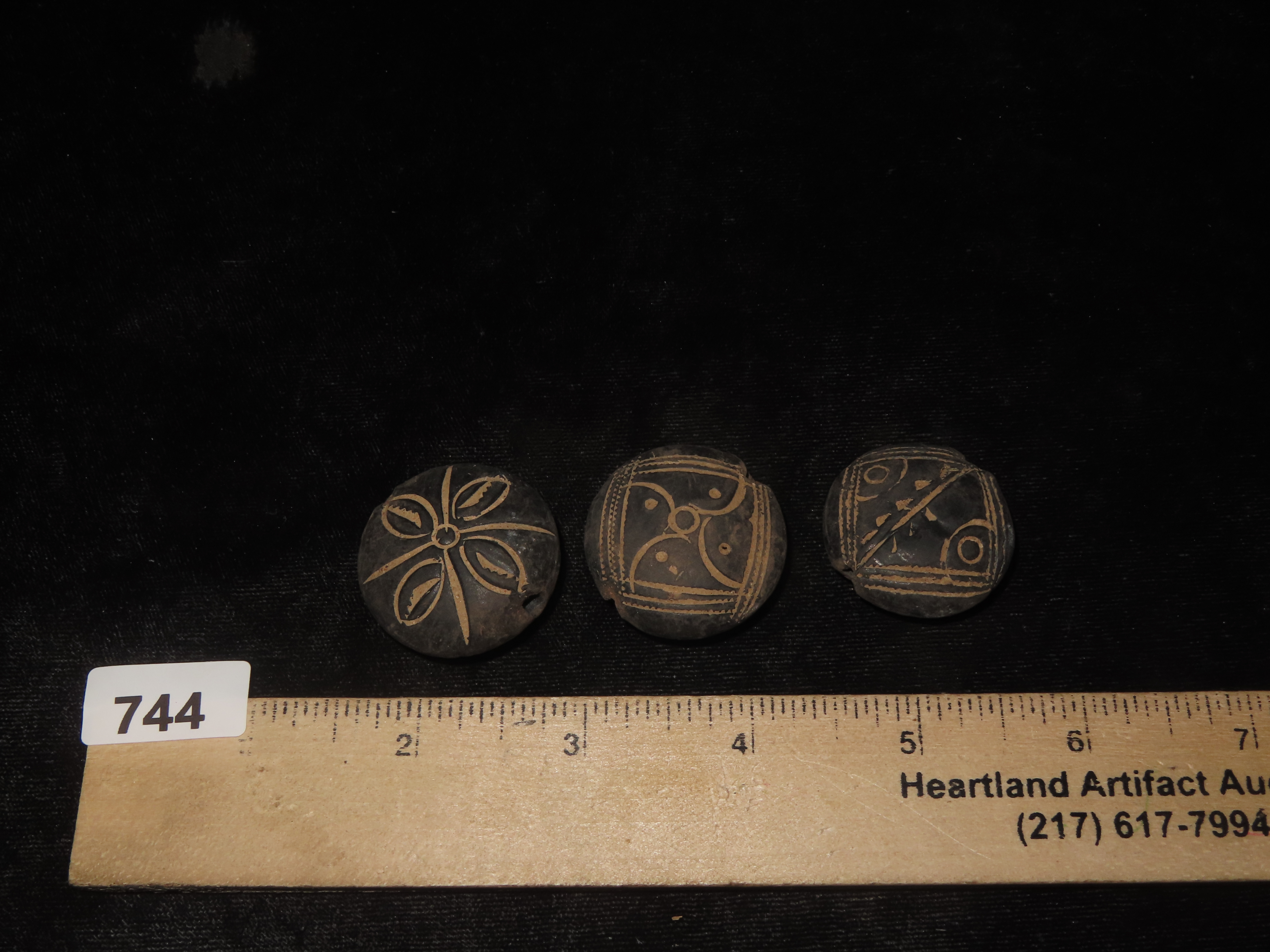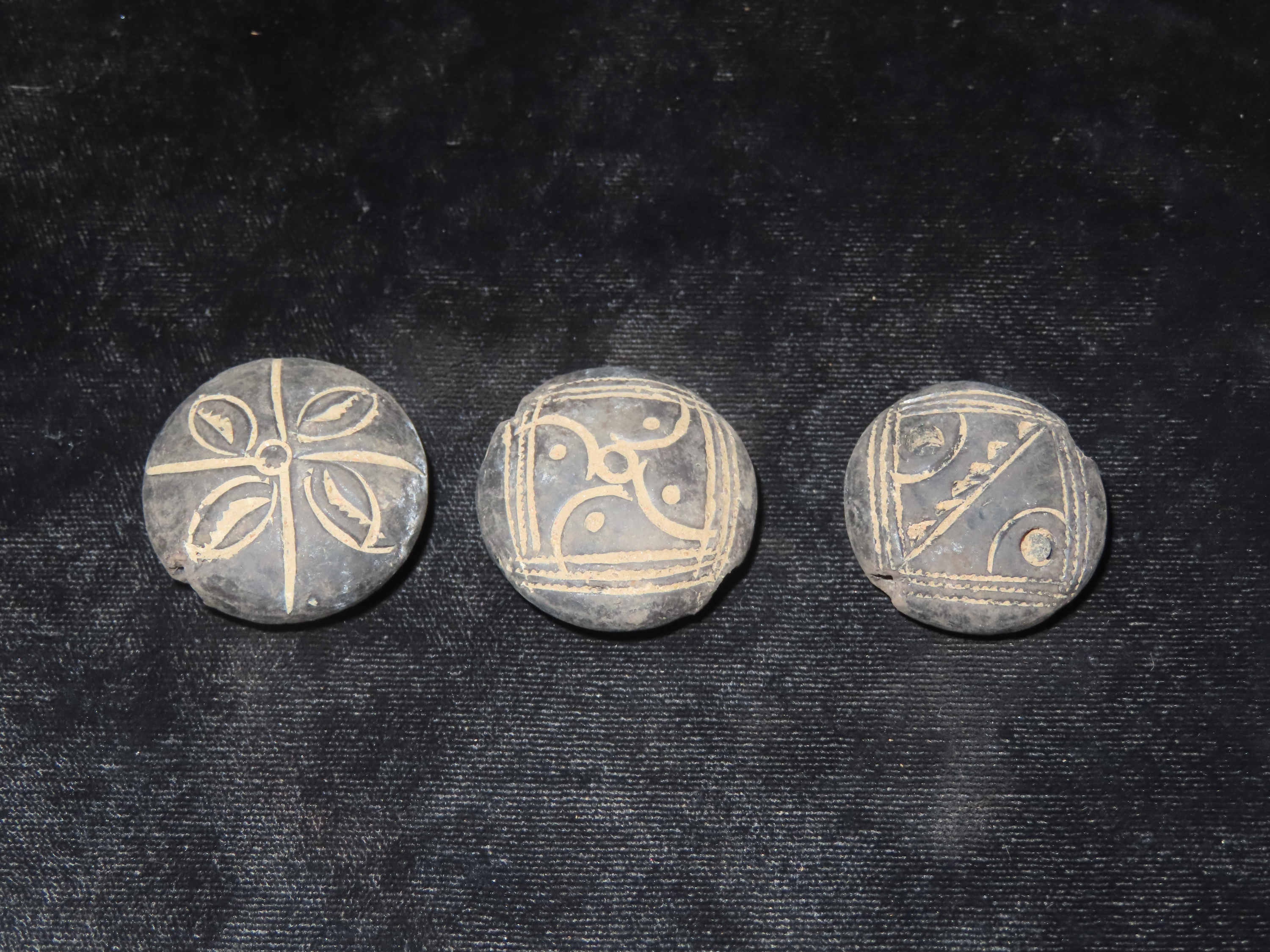 Lot of 3 Neolithic African Pottery Beads, Engraved