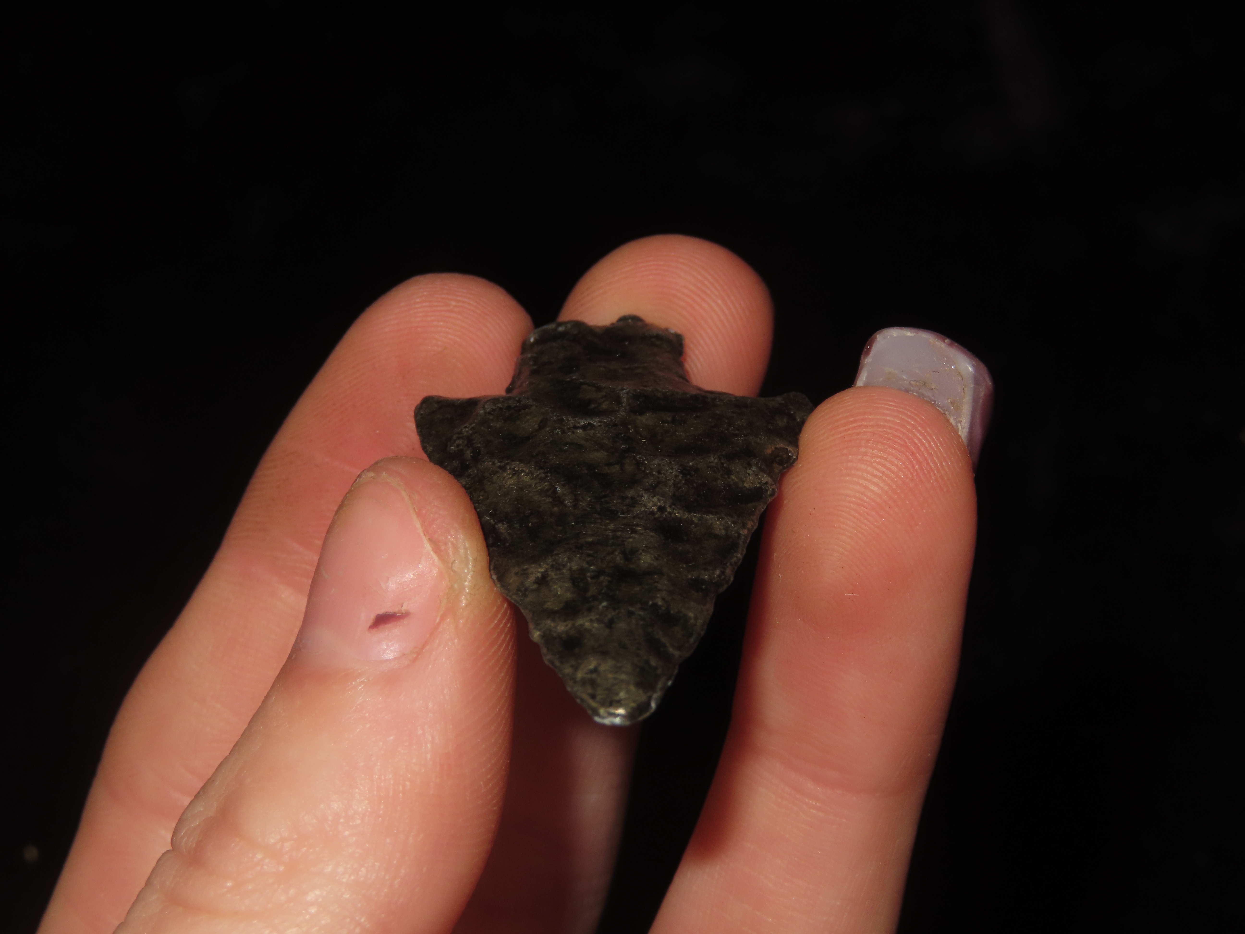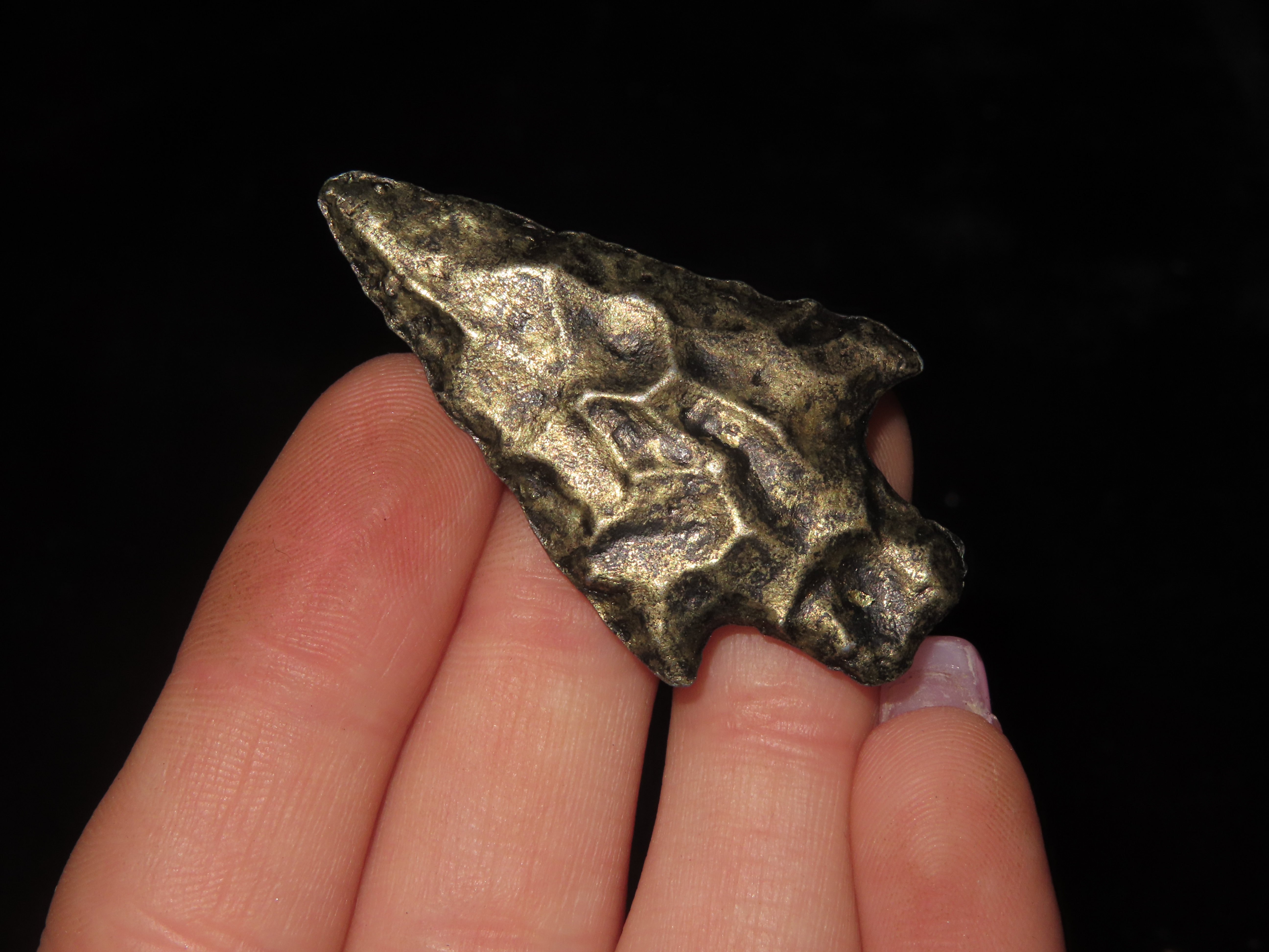 1 7/8″ Unique Metal Cast Arrowhead with Document, Langry Point