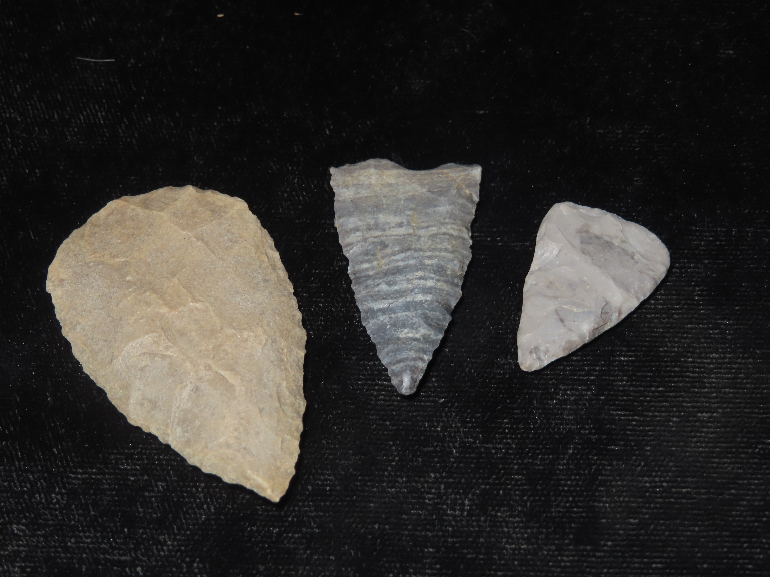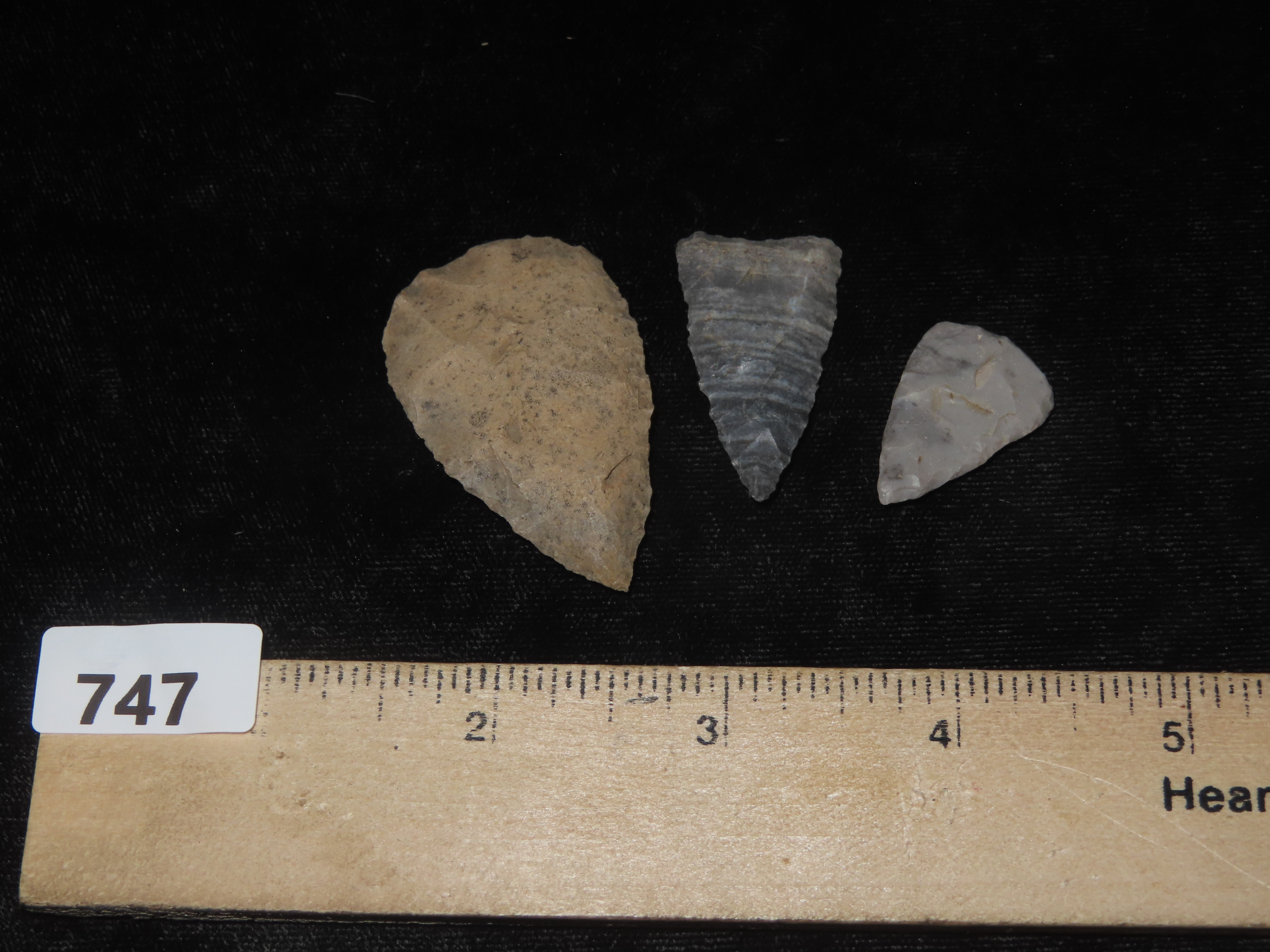 Lot of 3 Early Archaic Triangular Points, 9000-7000 B.P., Texas, Bell & Sur Co.