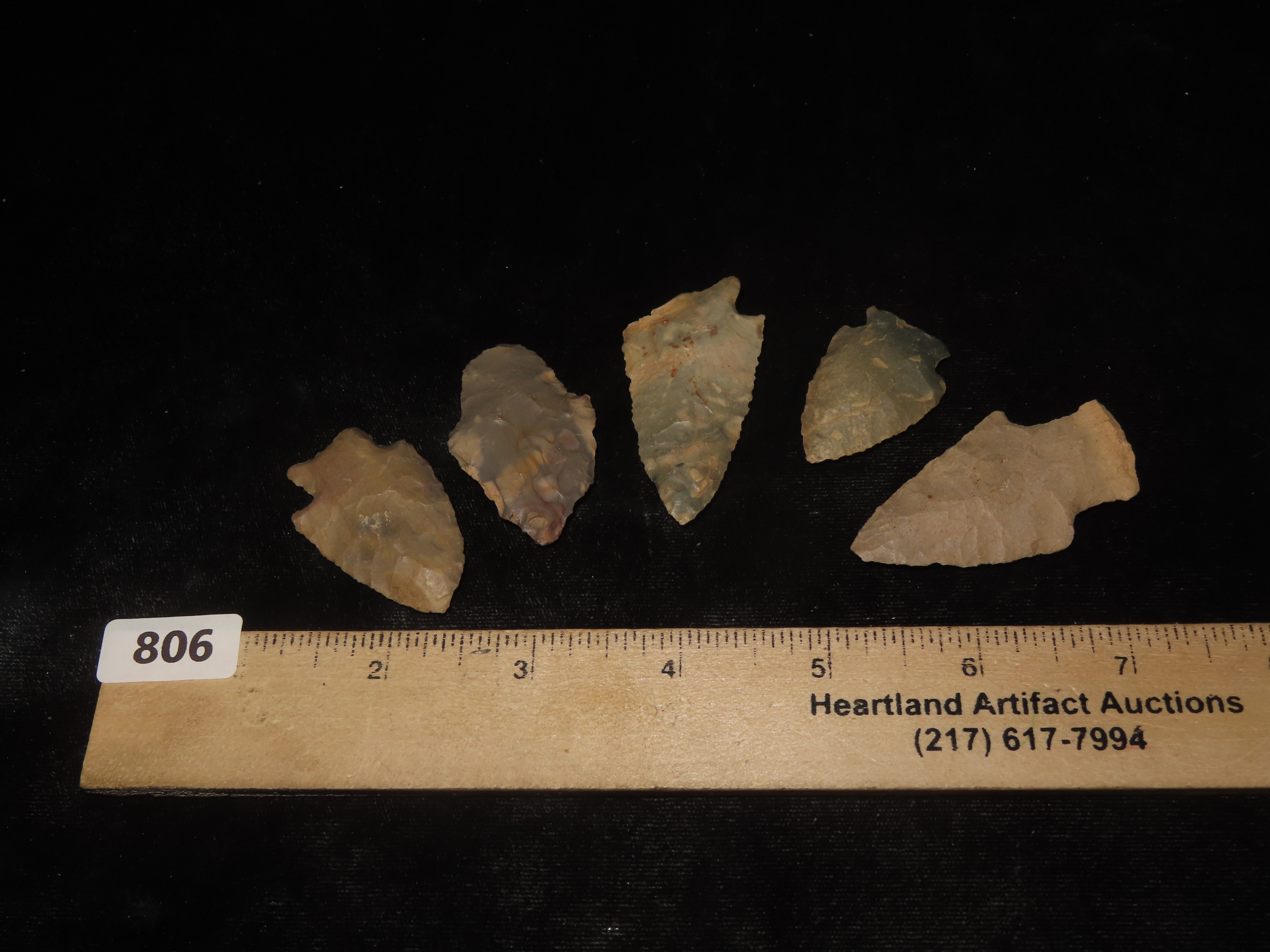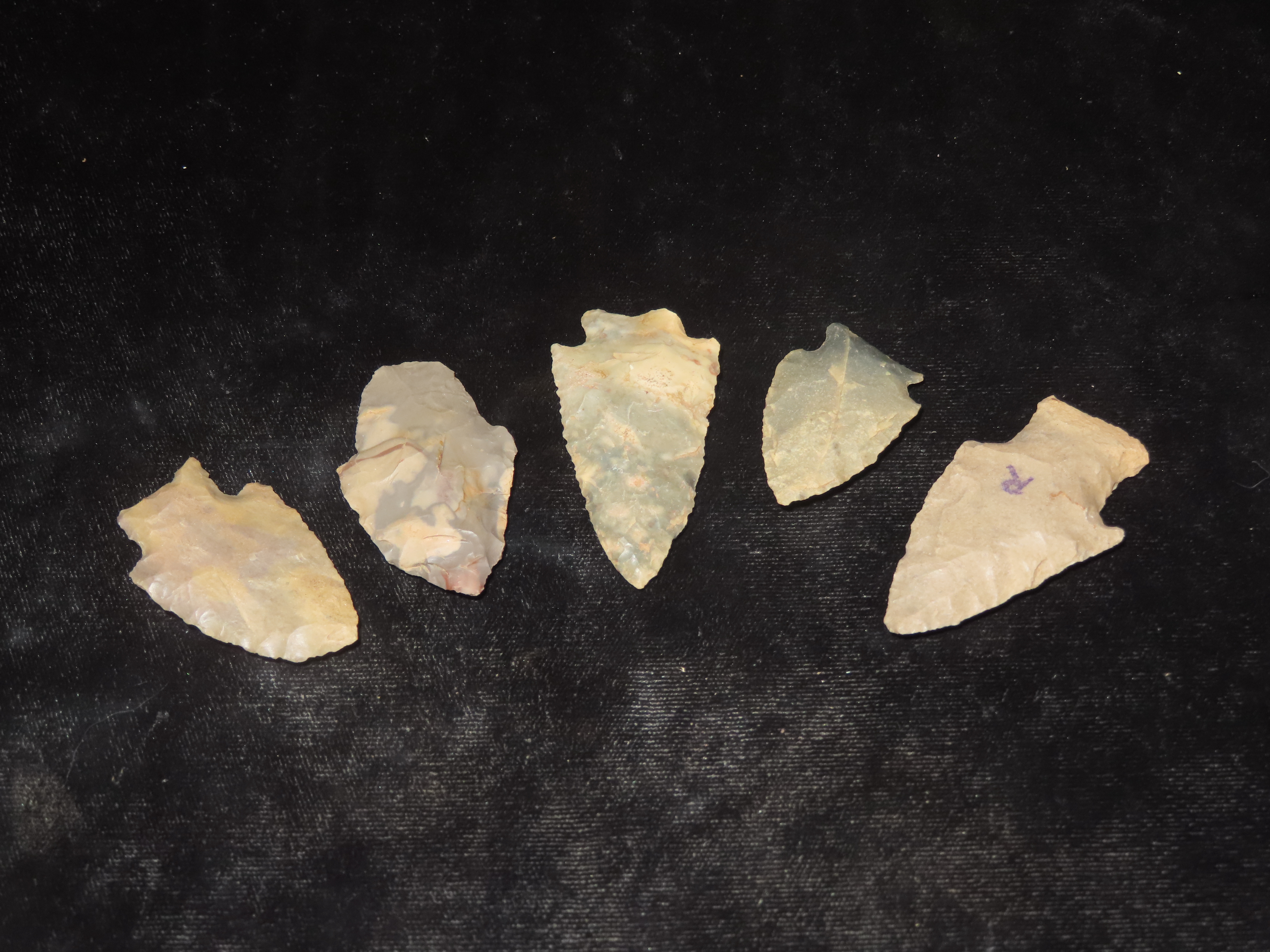 Grouping of 5 Quality Arrowheads Found in Union Co. Illinois, Nicer than Field Grade