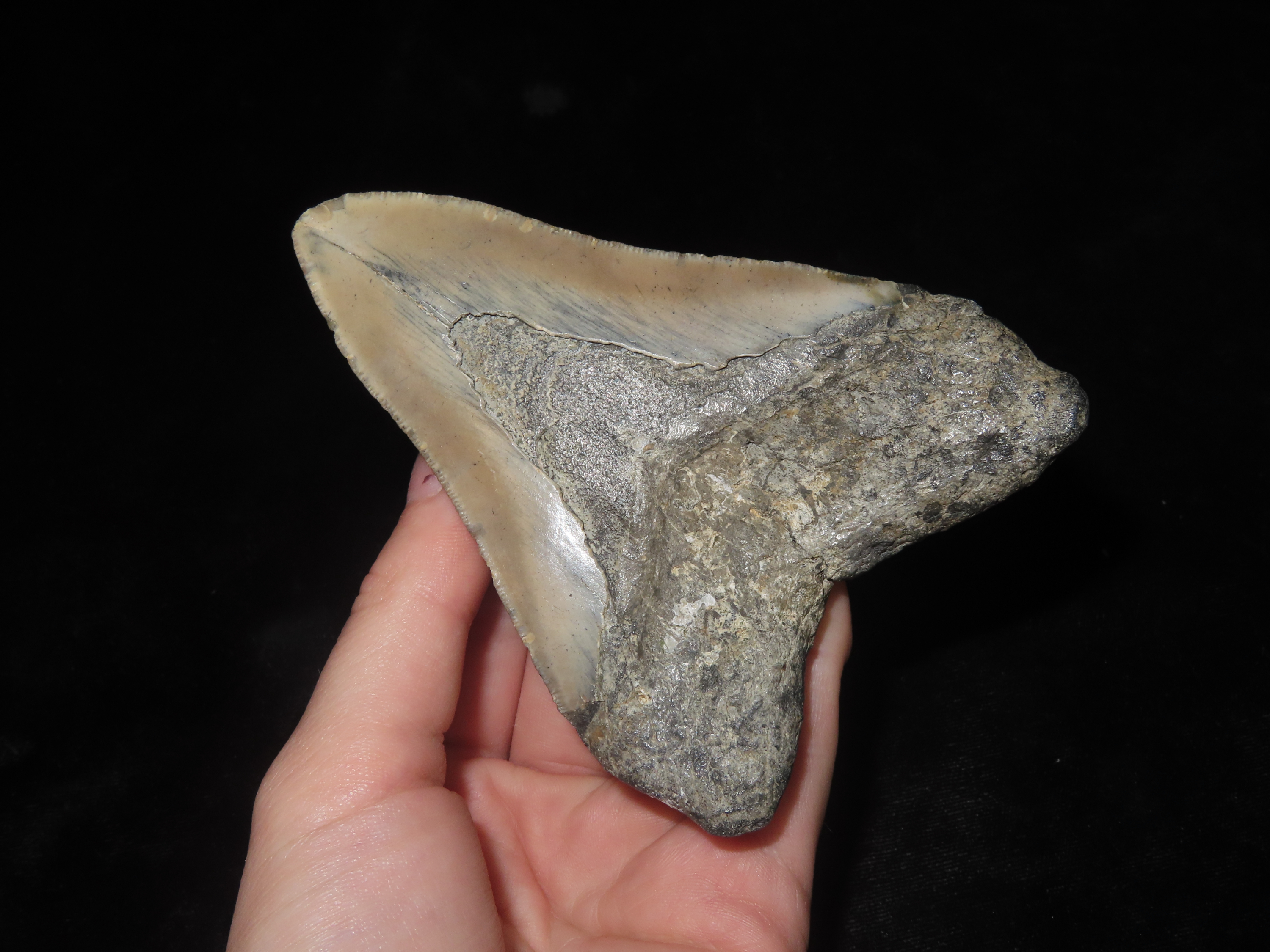 4 1/4″ Megalodon Shark Tooth, Found in North Carolina