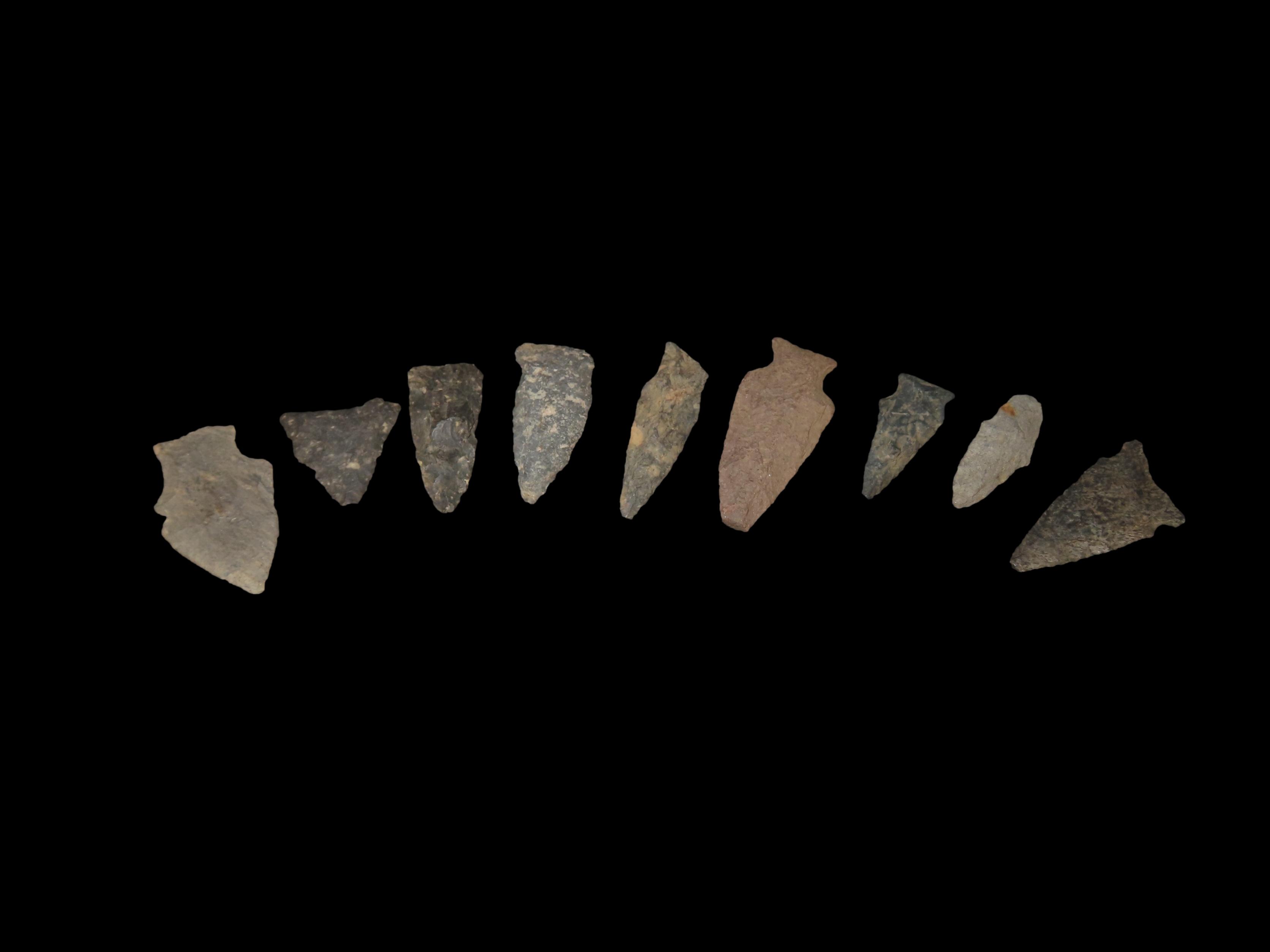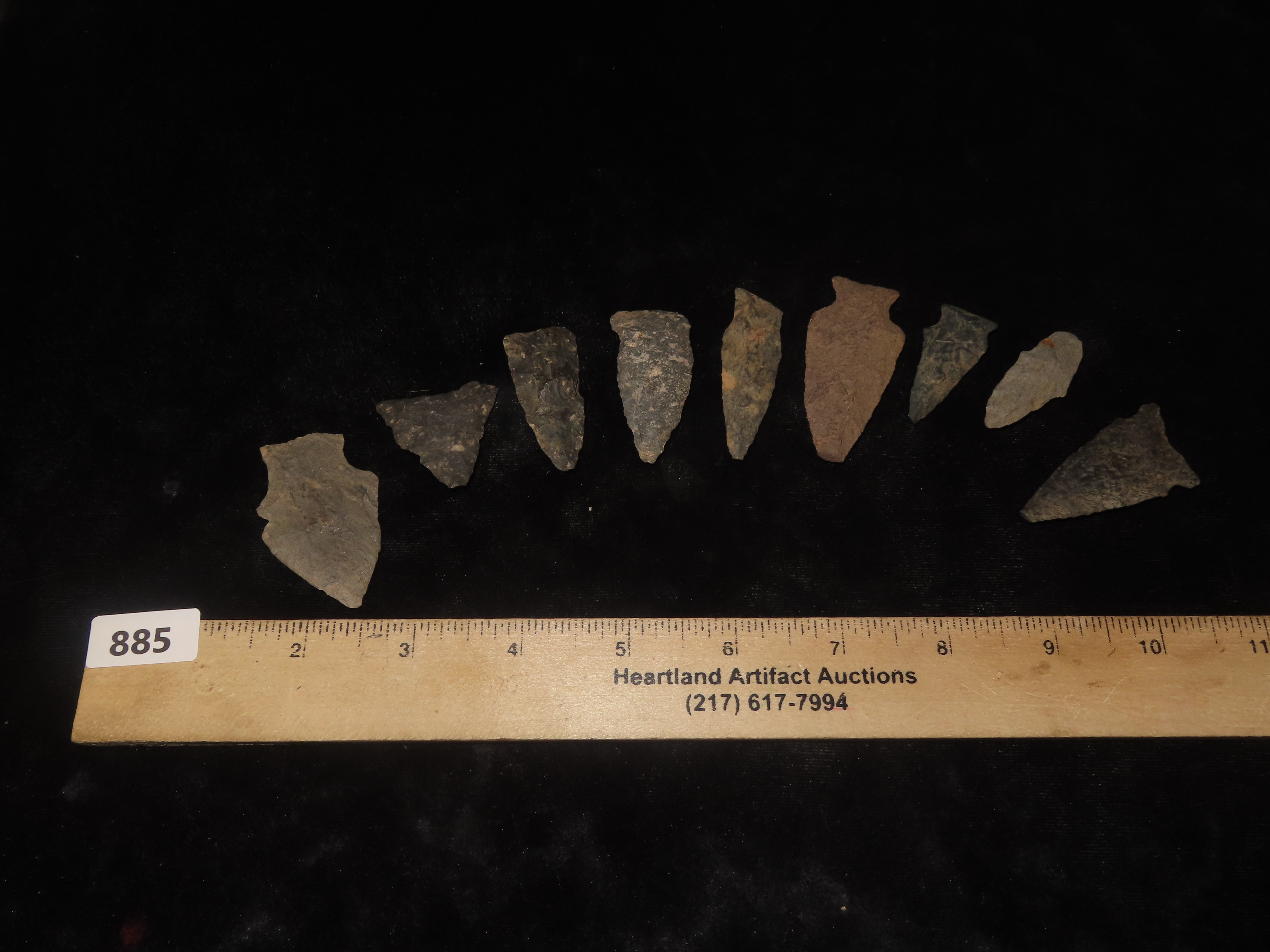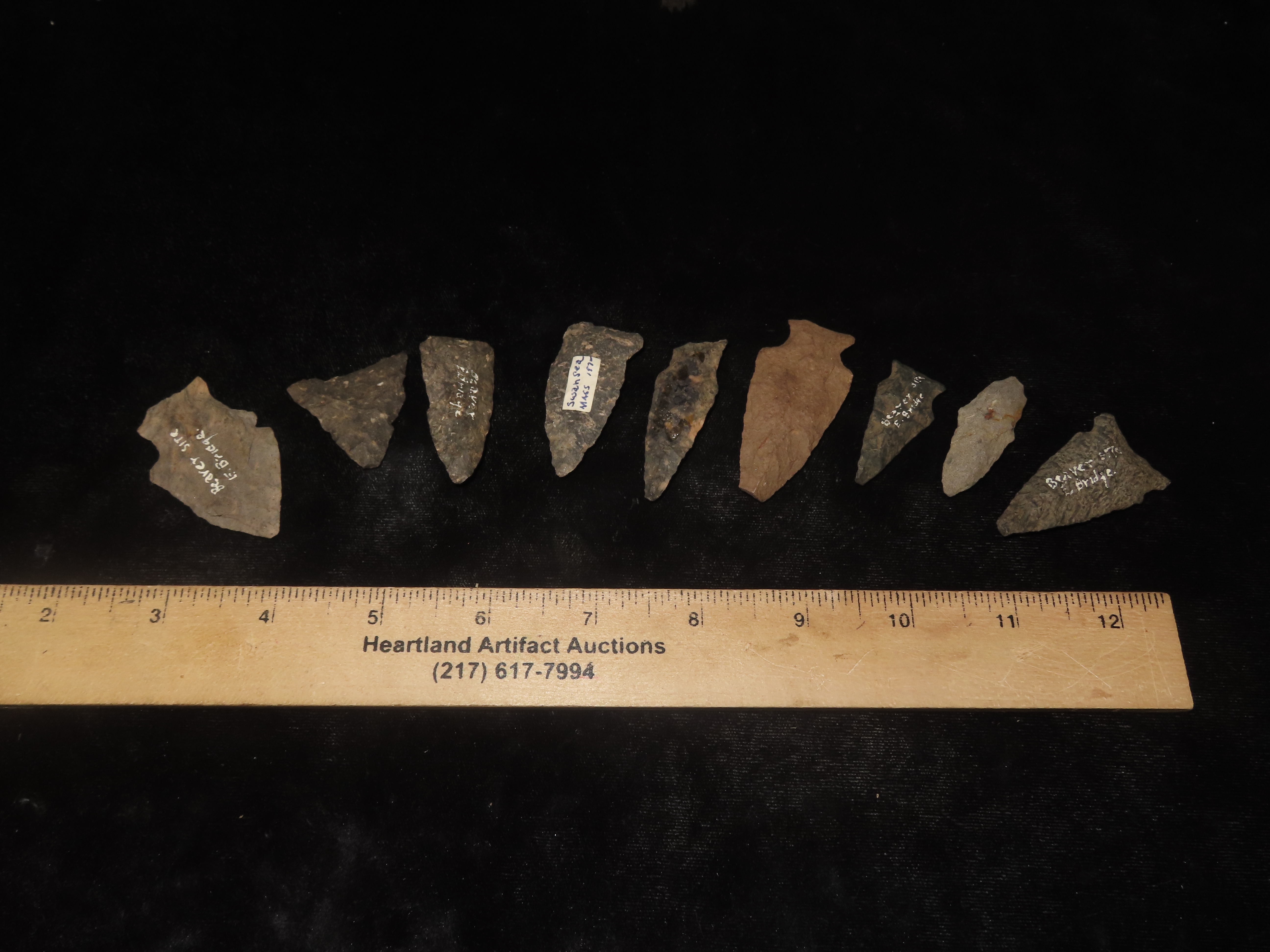 Group of 9 Points-found in Attleboro Massachusetts, at the Beaver Site on the Marvin Farm, Ex Peter Engstrom, Ex Dr. Robbins Collections