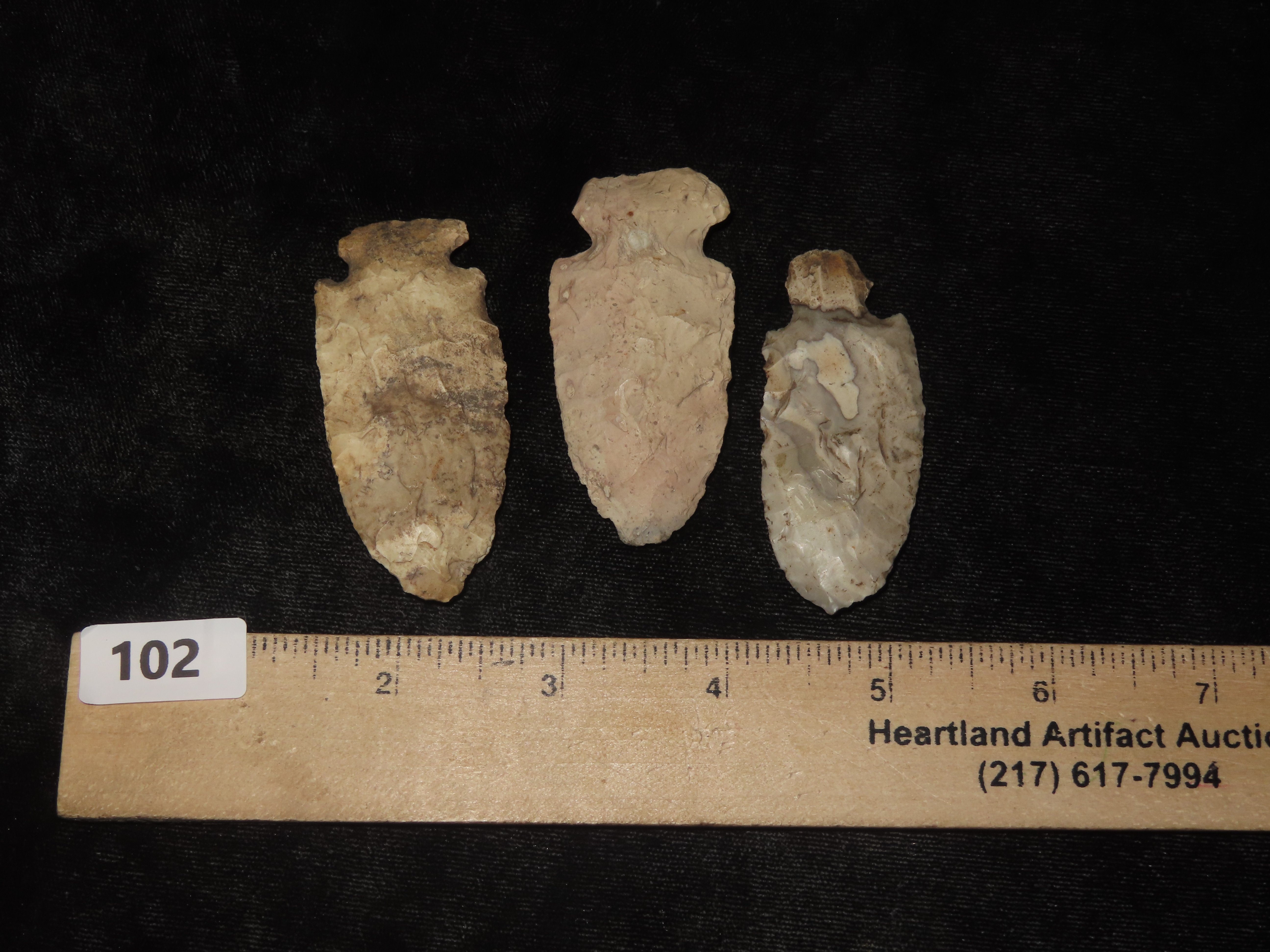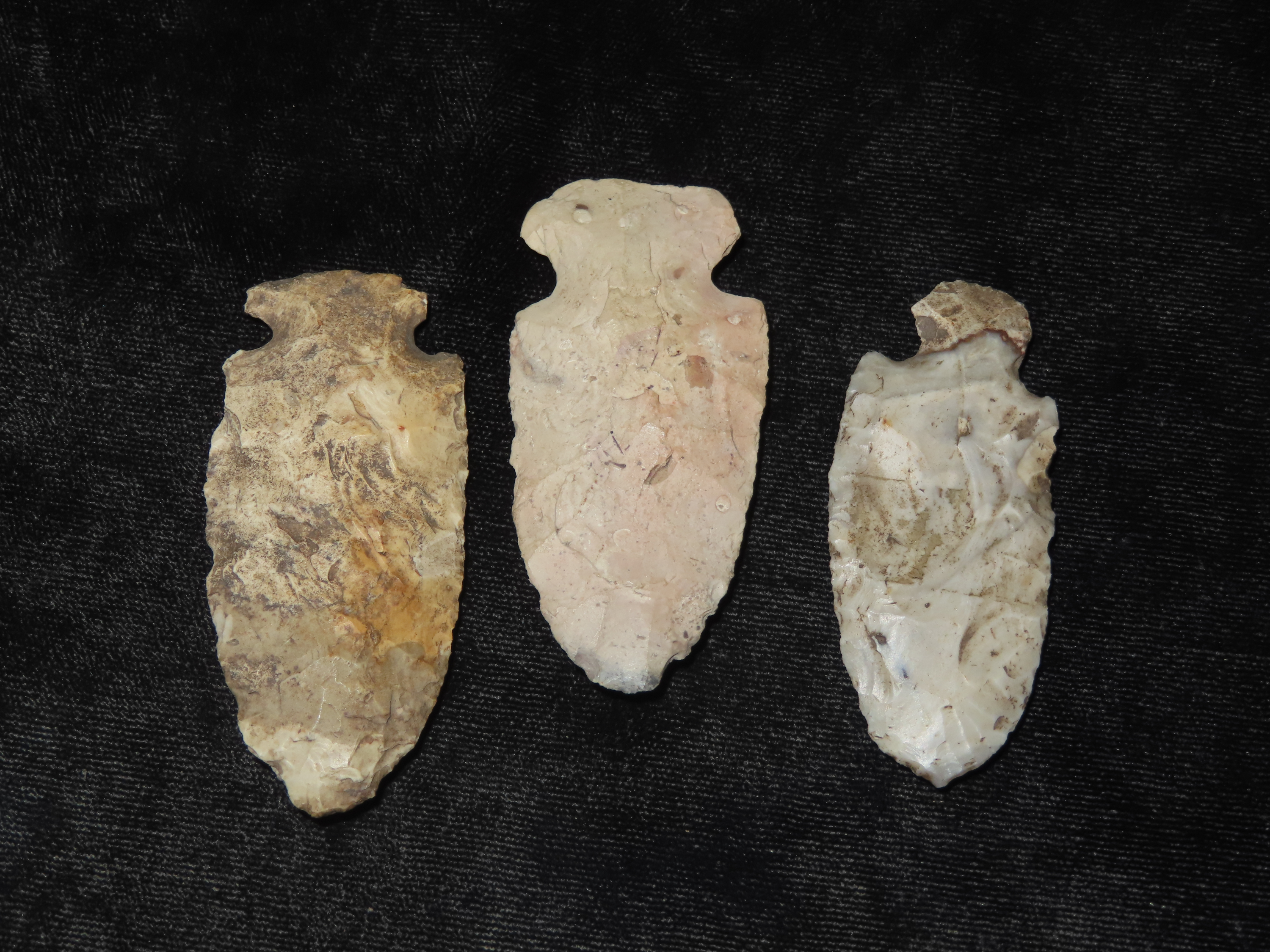 Grouping of 3 Arrowheads Found by Walter Johnson in Seneca, Illinois, Across From Skrivany Funeral Home