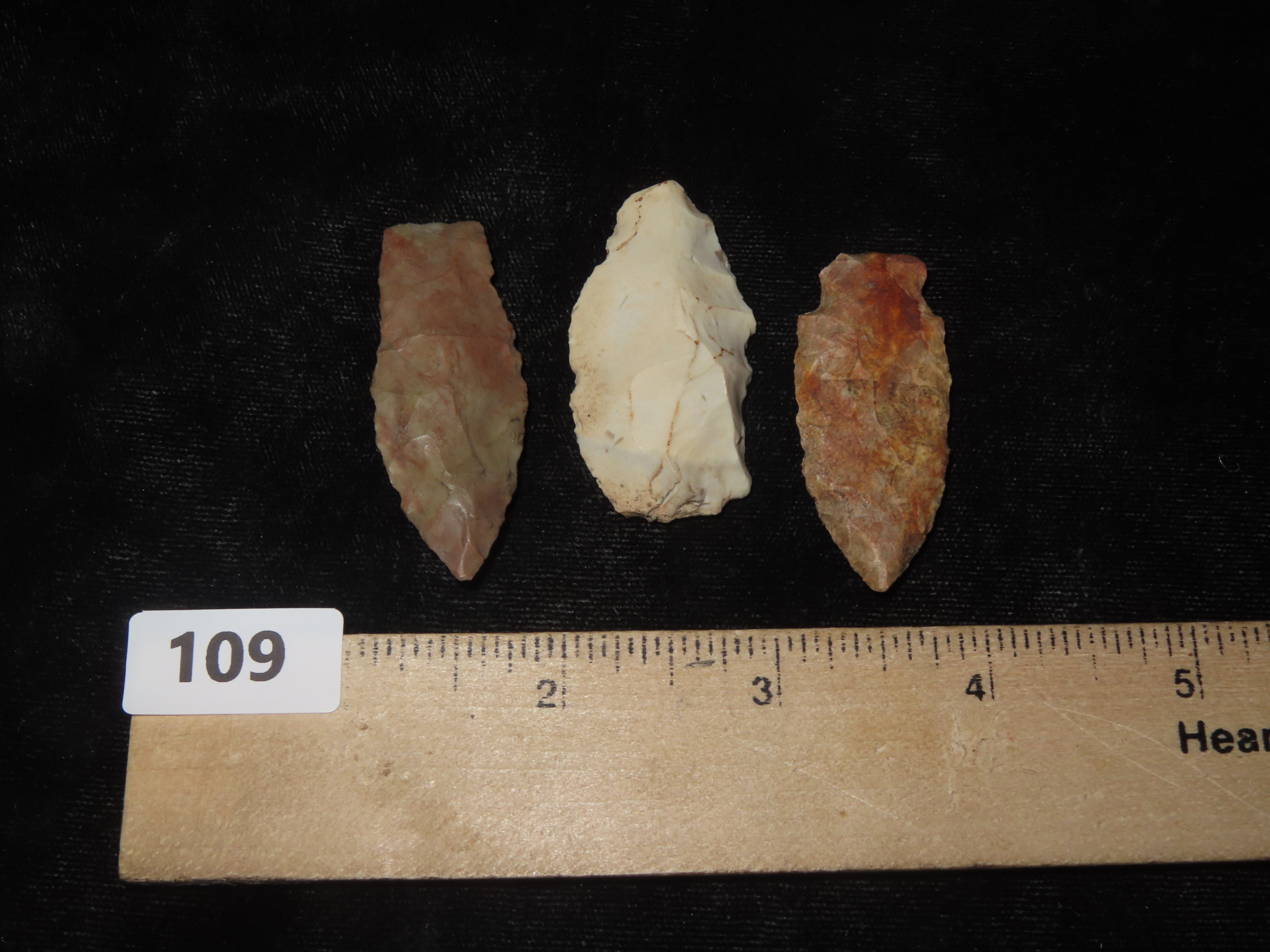 Grouping of 3 Arrowheads Found by Walter Johnson in Seneca, Illinois, Across From Skrivany Funeral Home