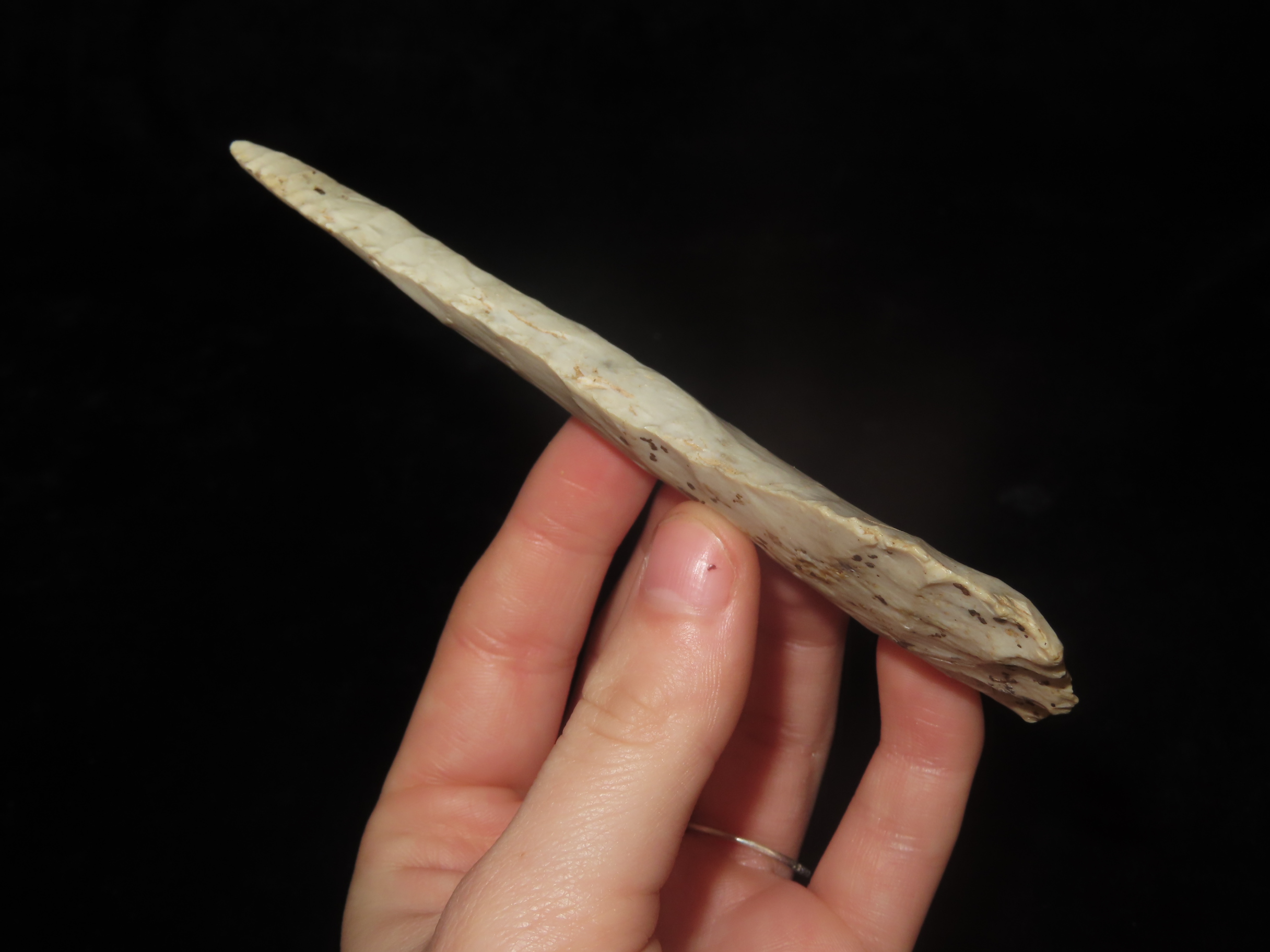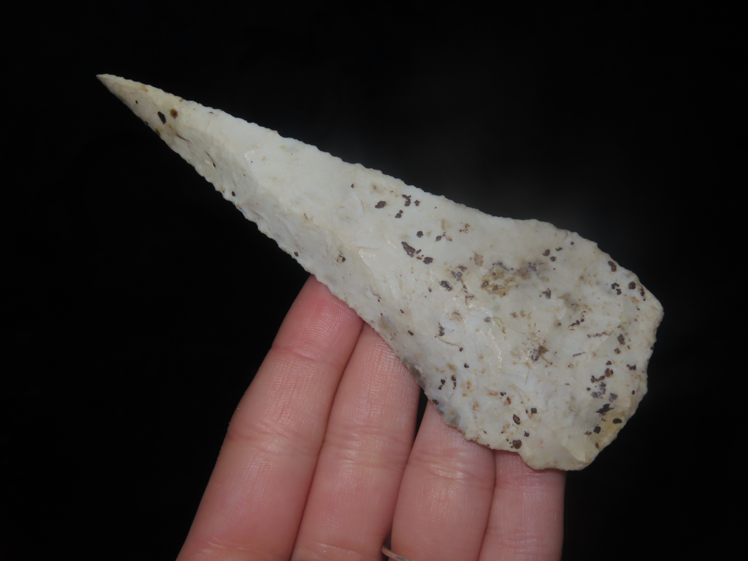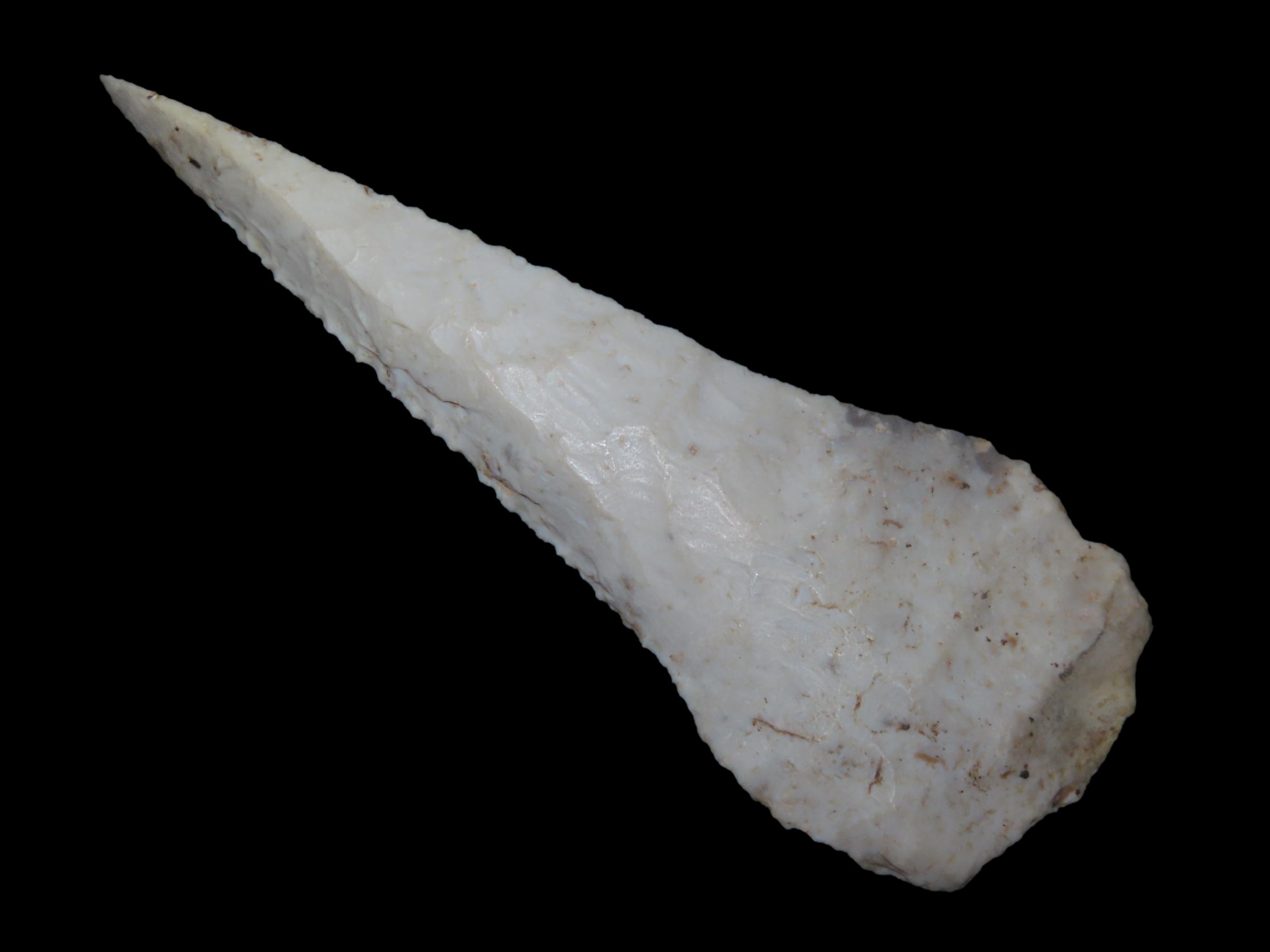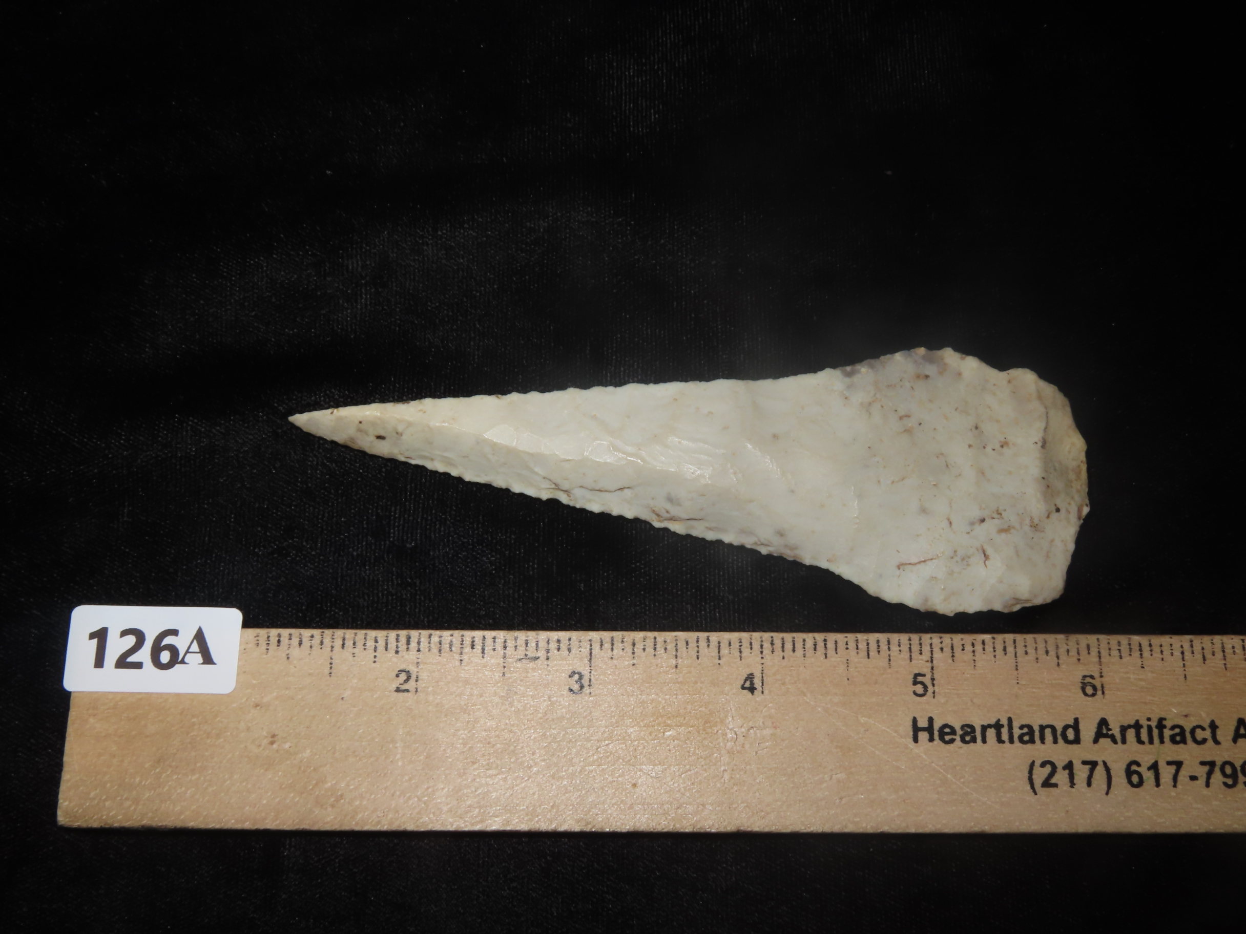 4 7/8″ Phenomenal, Heavily Beveled Cobbs Blade found in Lee County Iowa, Minor Restoration to the tip.