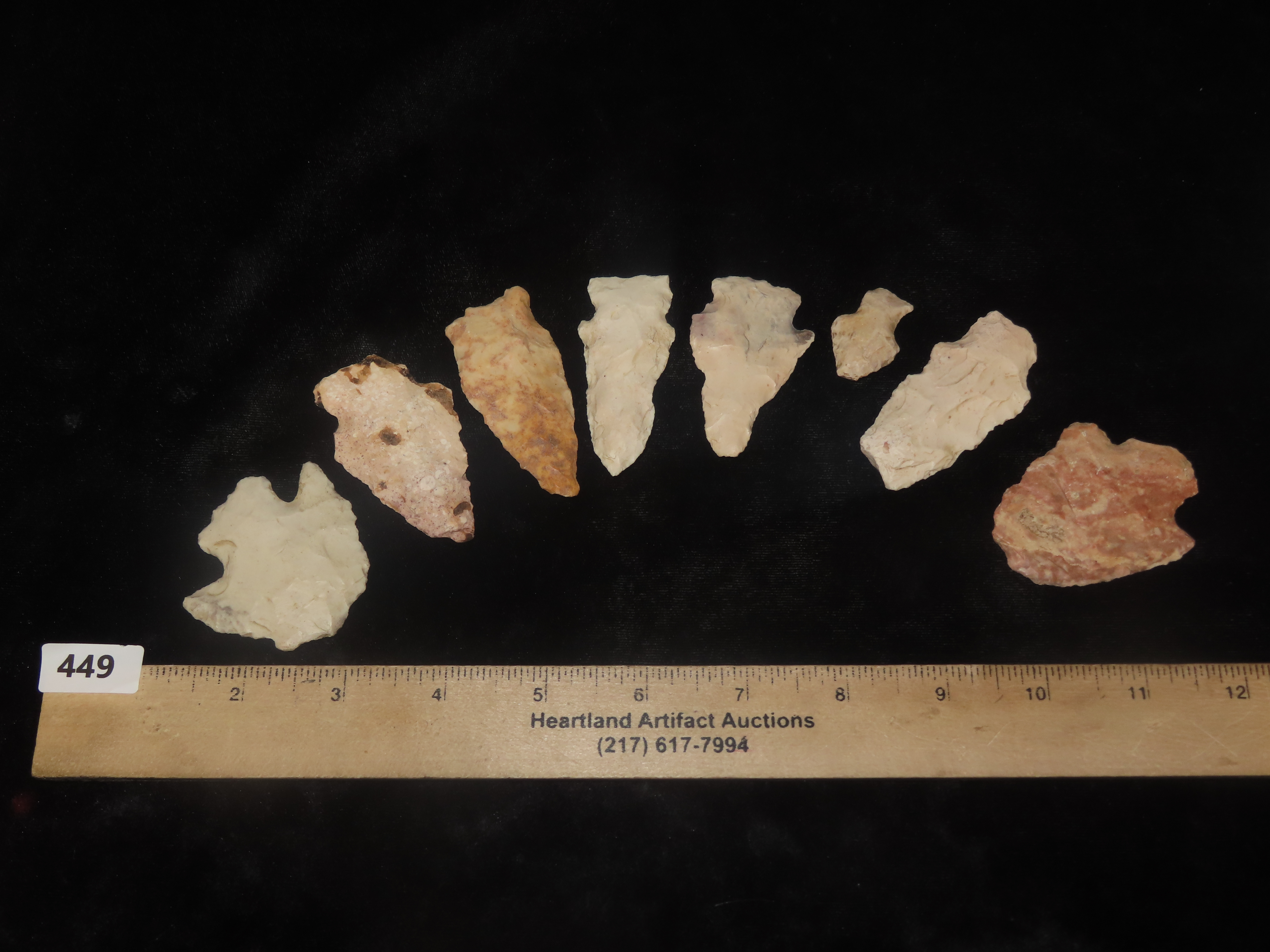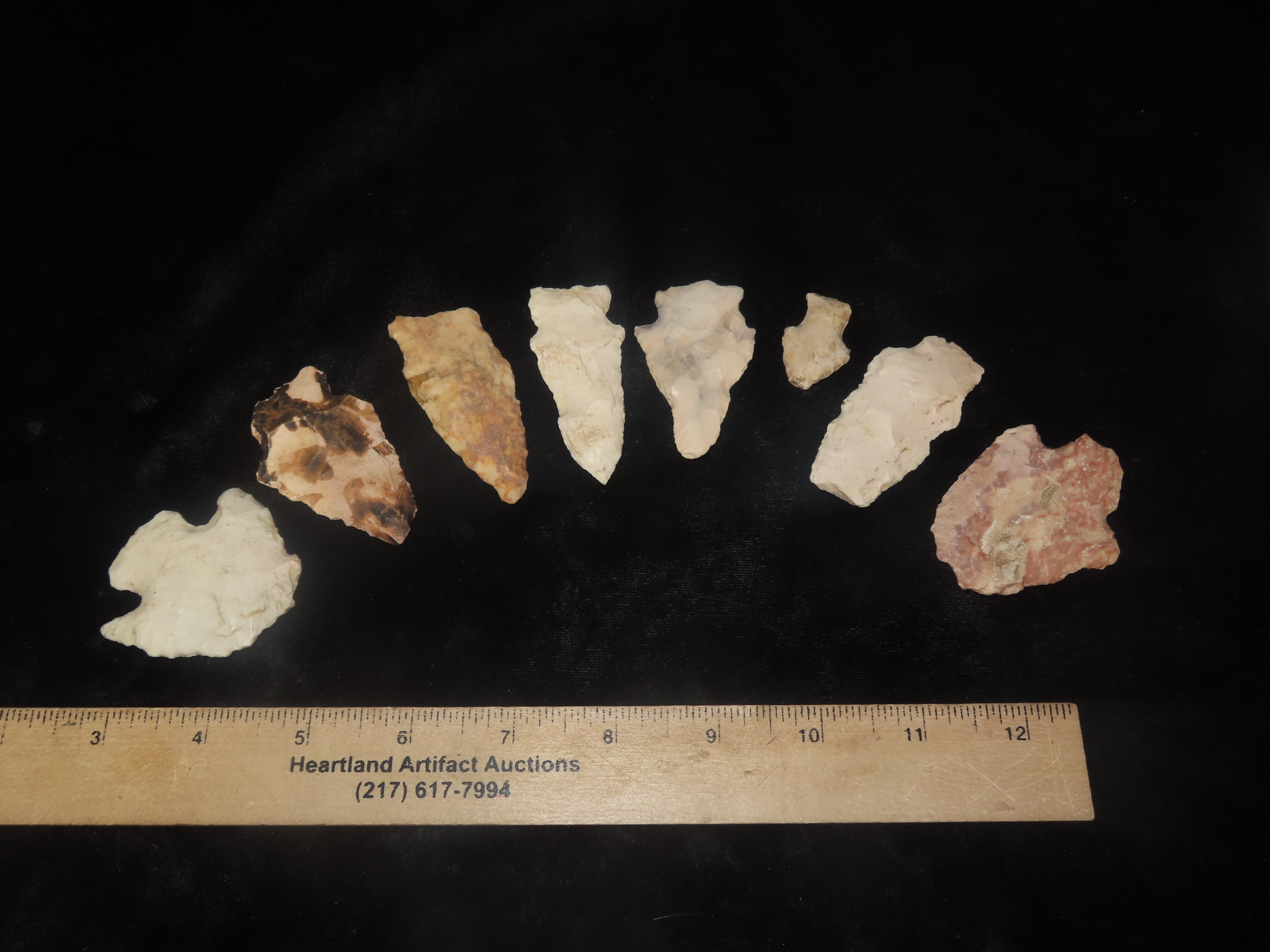 Grouping of 8 Arrowheads Found by Geoff Sandt in St. Louis Co. Missouri, Known as the Rockhunter on YouTube