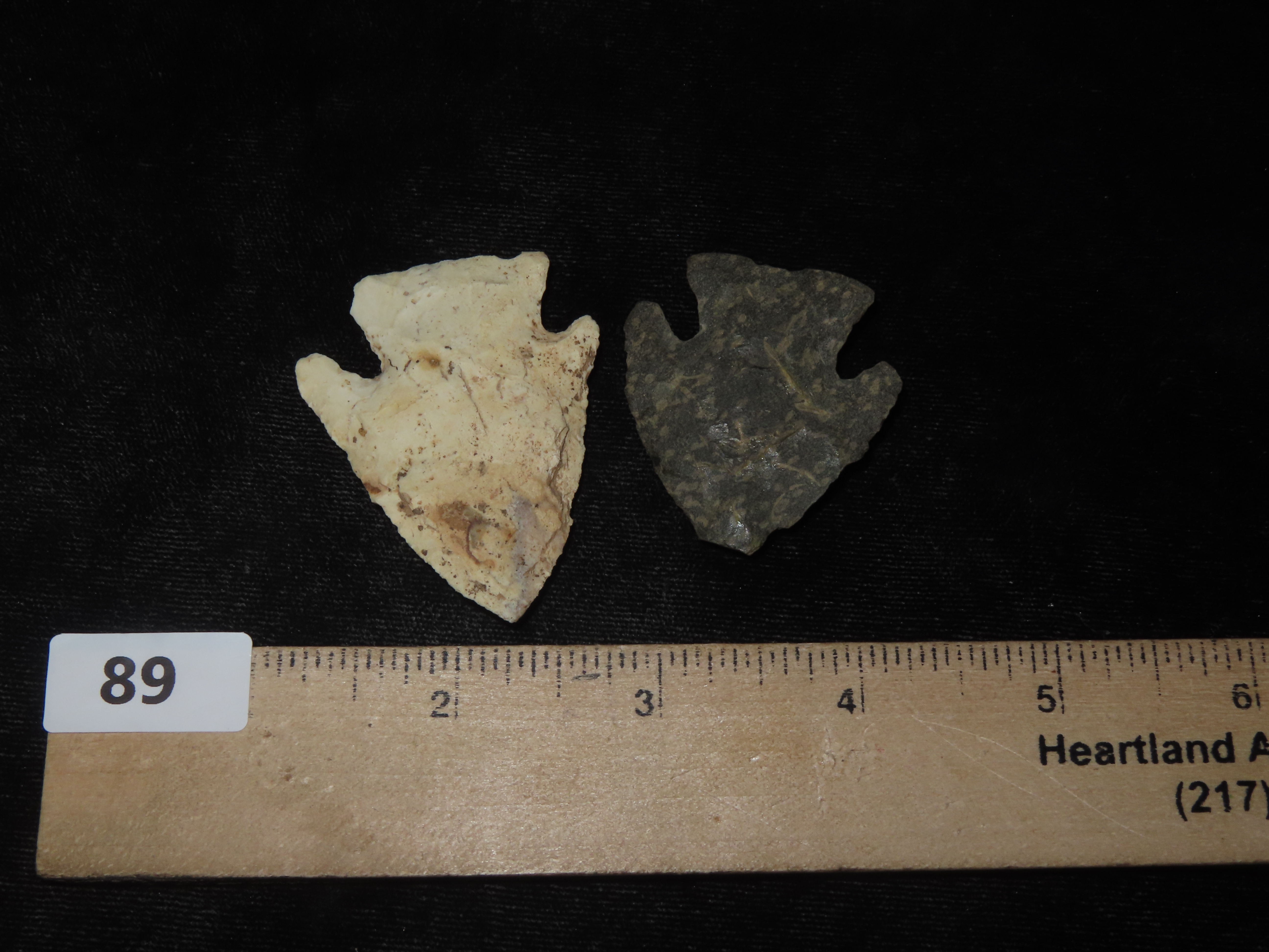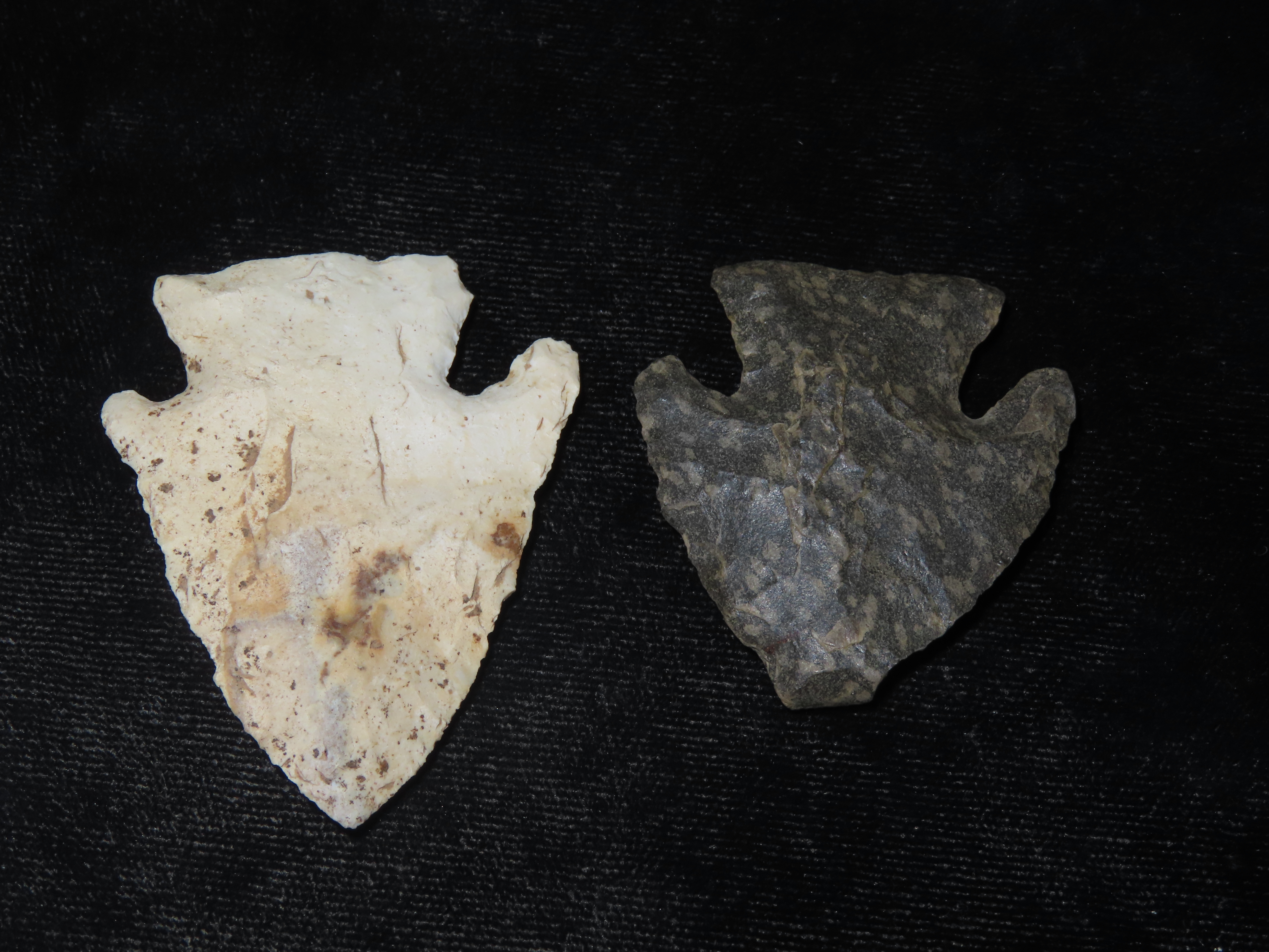 Grouping of 2 Corner Notched Arrowheads Found by Walter Johnson in Seneca, Illinois, Across From Skrivany Funeral Home