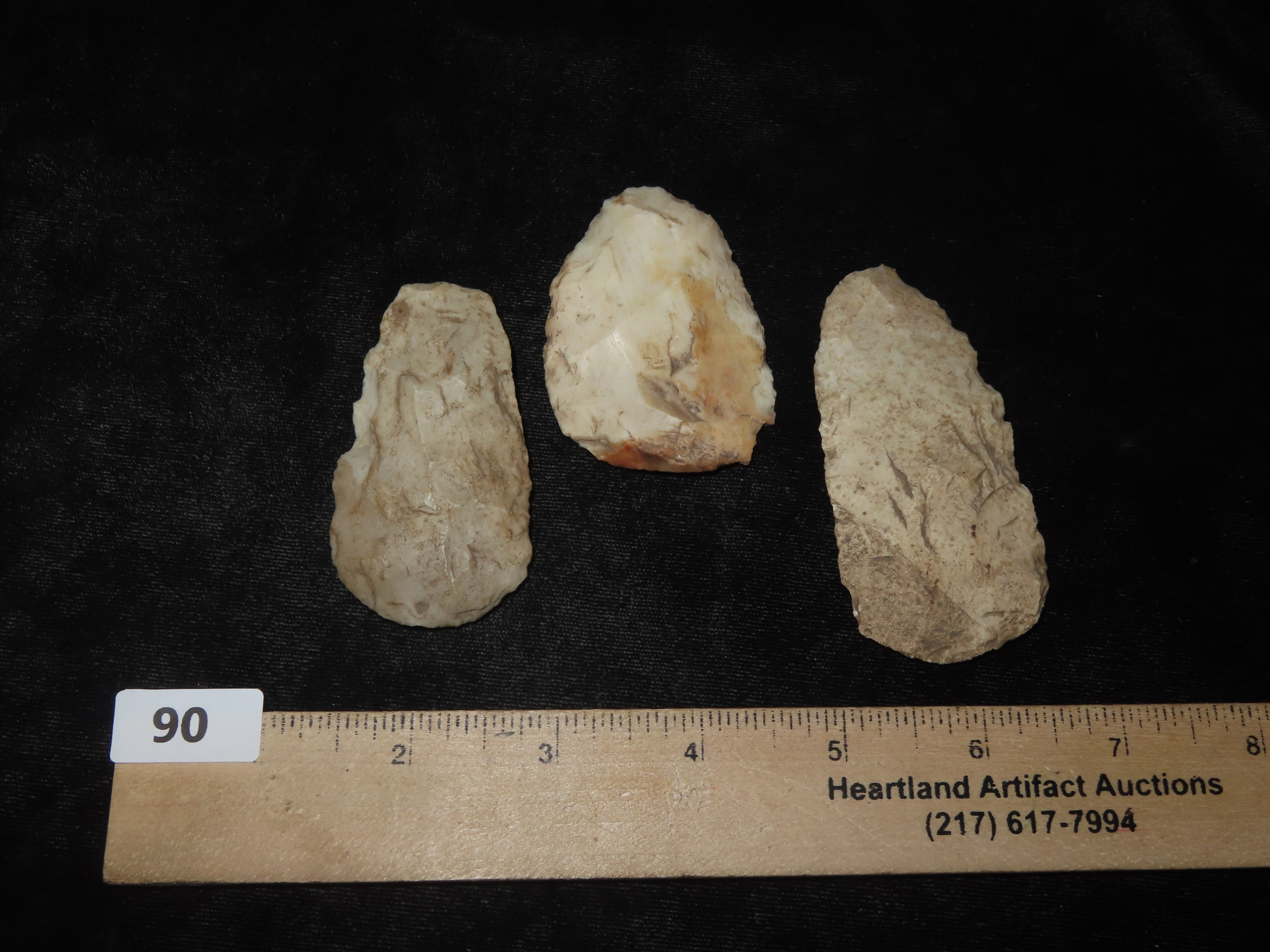 Grouping of 3 Woodland Tools Found by Walter Johnson in Seneca, Illinois, Across From Skrivany Funeral Home