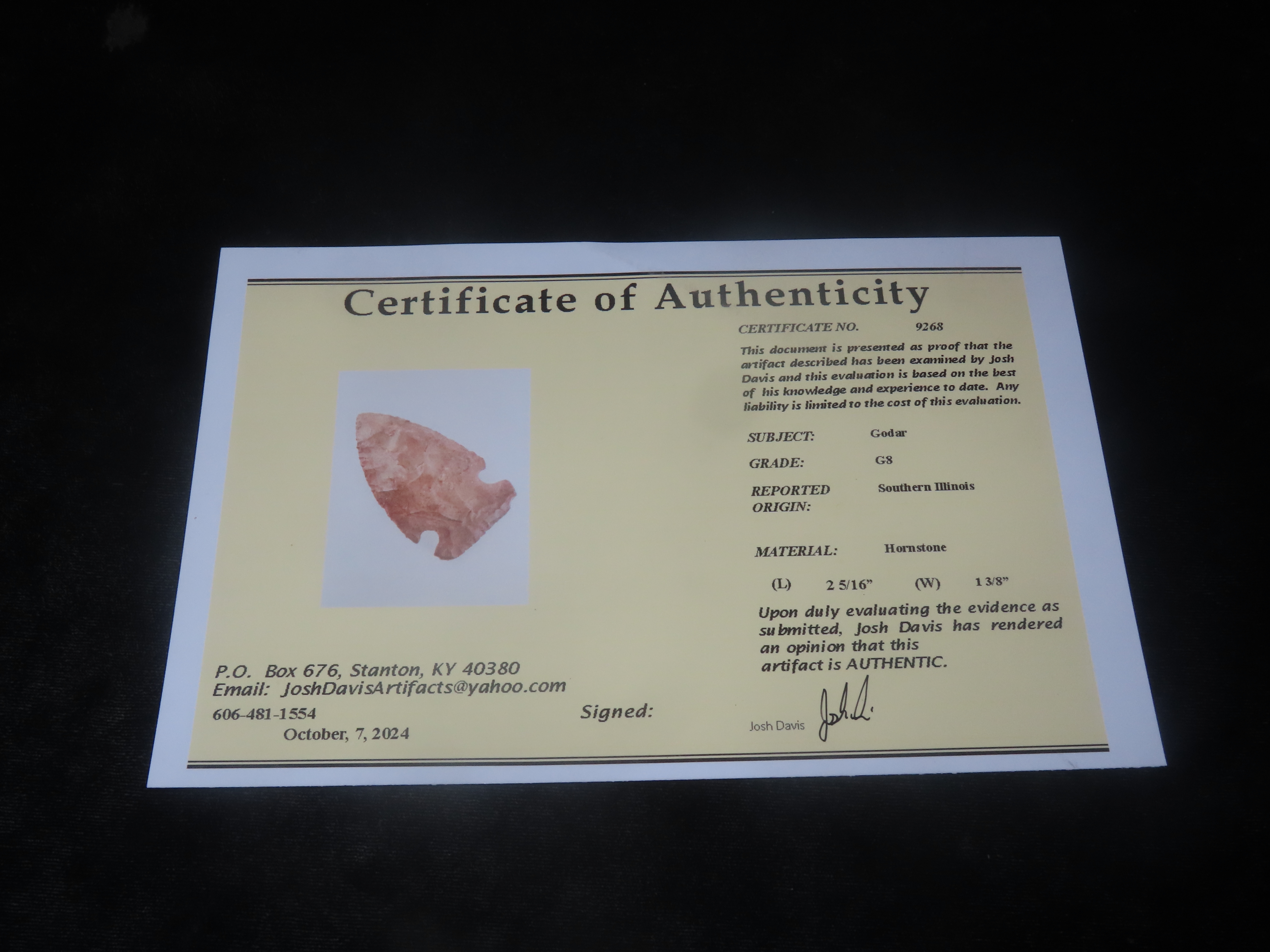 2 5/16" X 1 3/8" Godar, Davis COA, Found in Southern Illinois