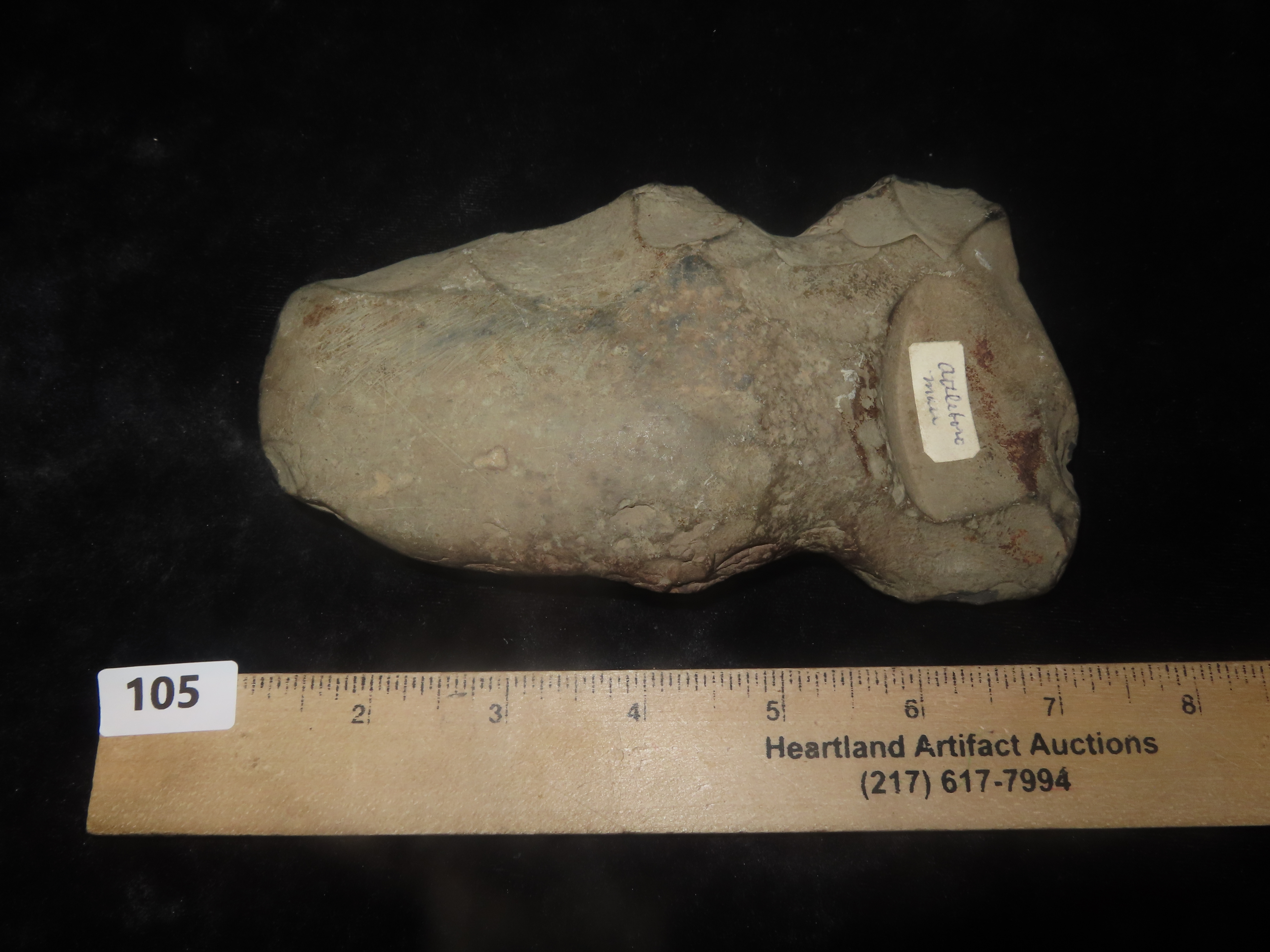 6 5/8" X 3 5/8" Full Groove Slate Axe, Found in Attleboro Mass. Marvin Farm/ Beaver Site, Ex Peter Engstrom/ Dr. Robbins