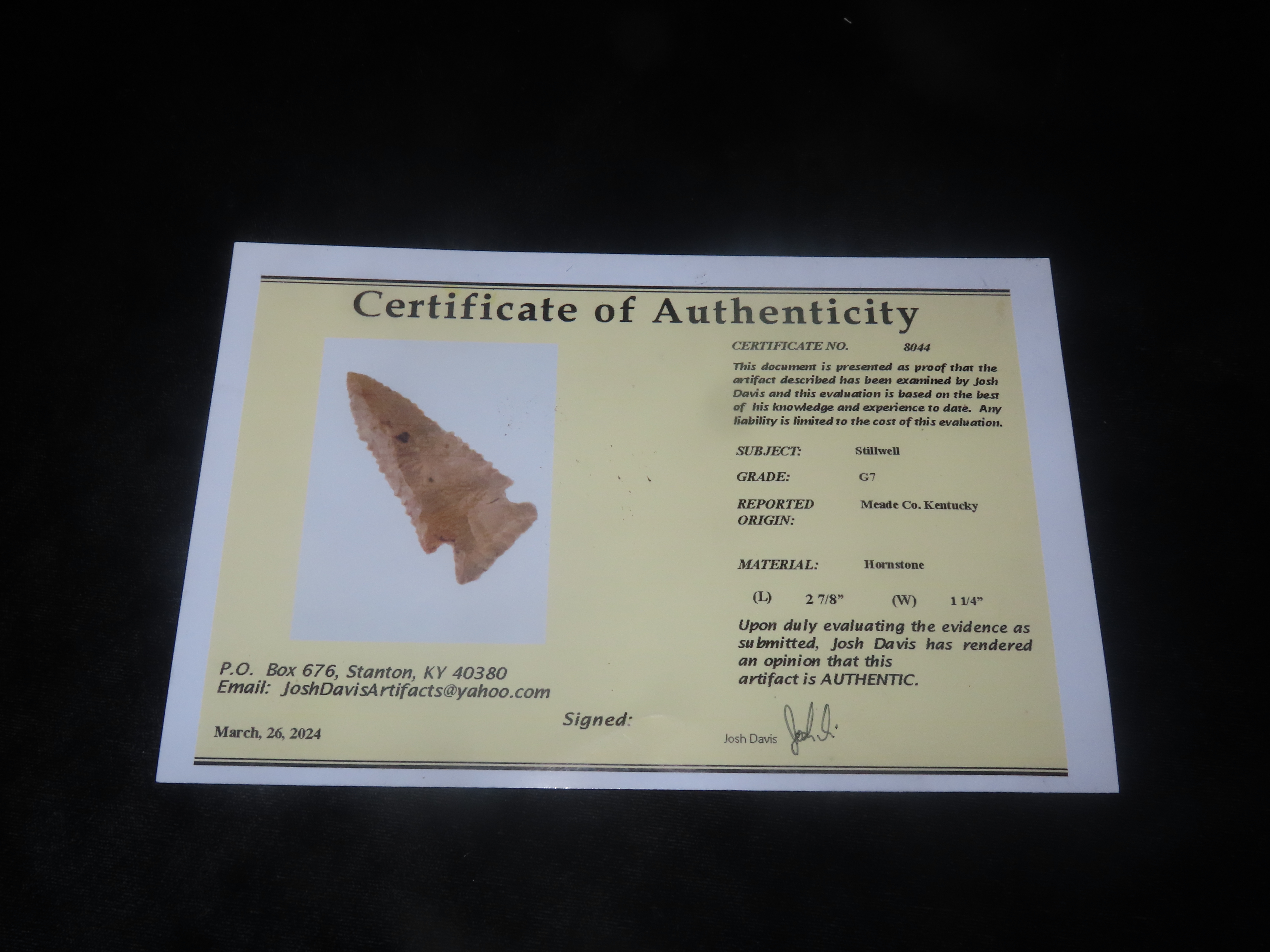 2 7/8″ X 1 1/4″ Stillwell, Davis COA, Found in Meade Co. Kentucky