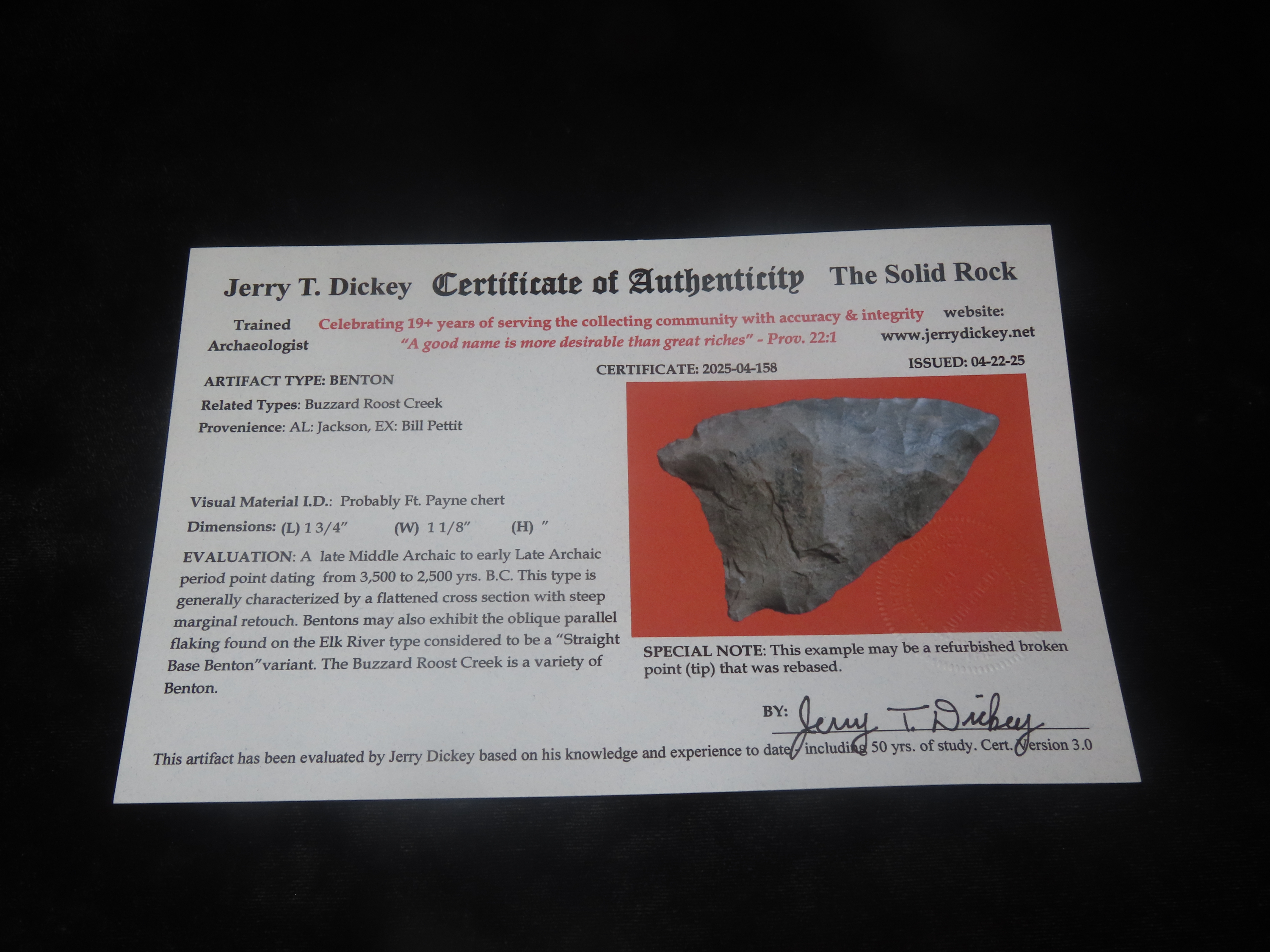 1 3/4″ X 1 1/8″ Buzzard Roost Creek, Dickey COA, Found in Jackson Co. AL, Ex Bill Pettit