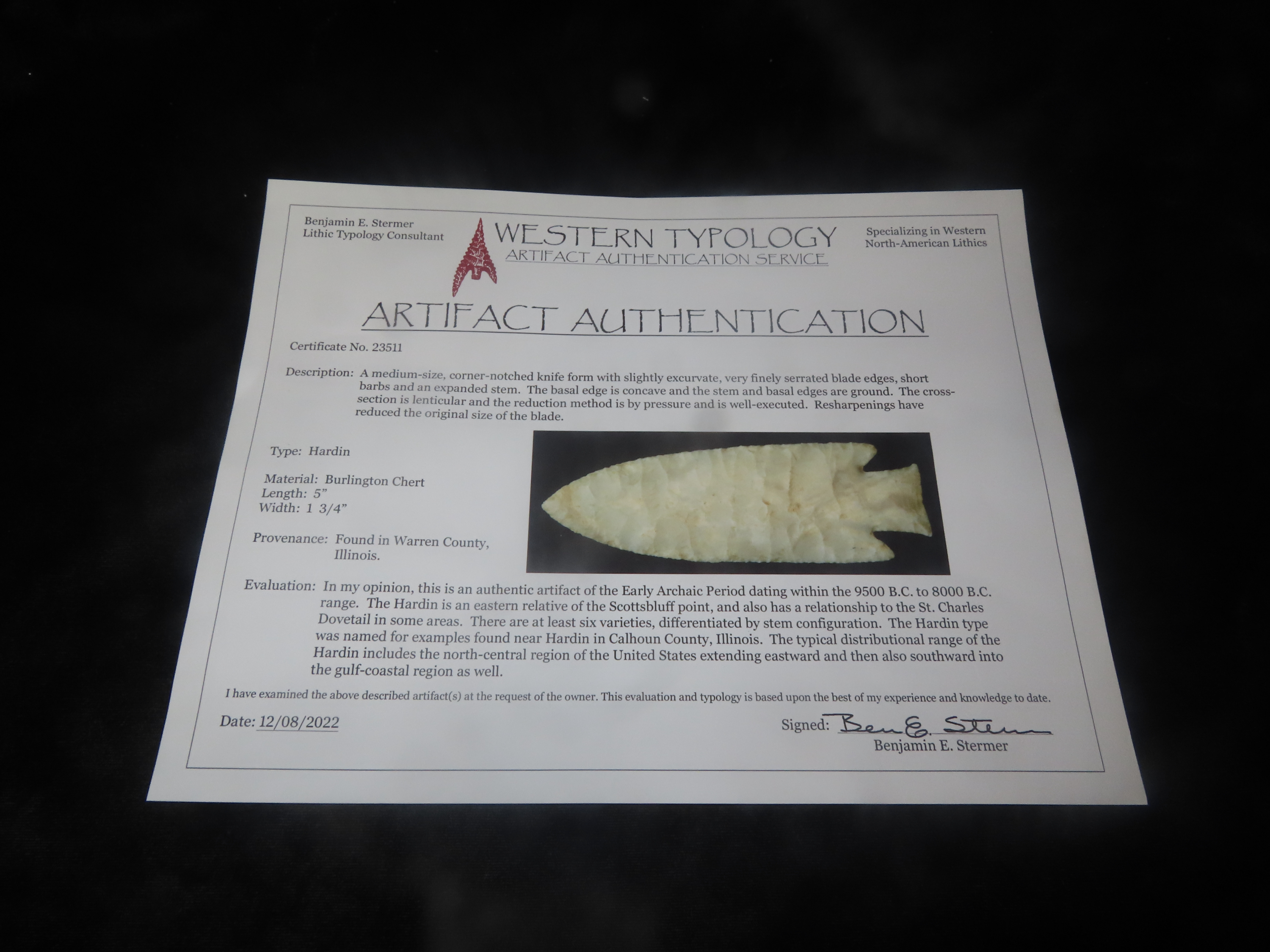 5" x 1 3/4" Hardin, Stermer COA, found in Warren Co., Illinois