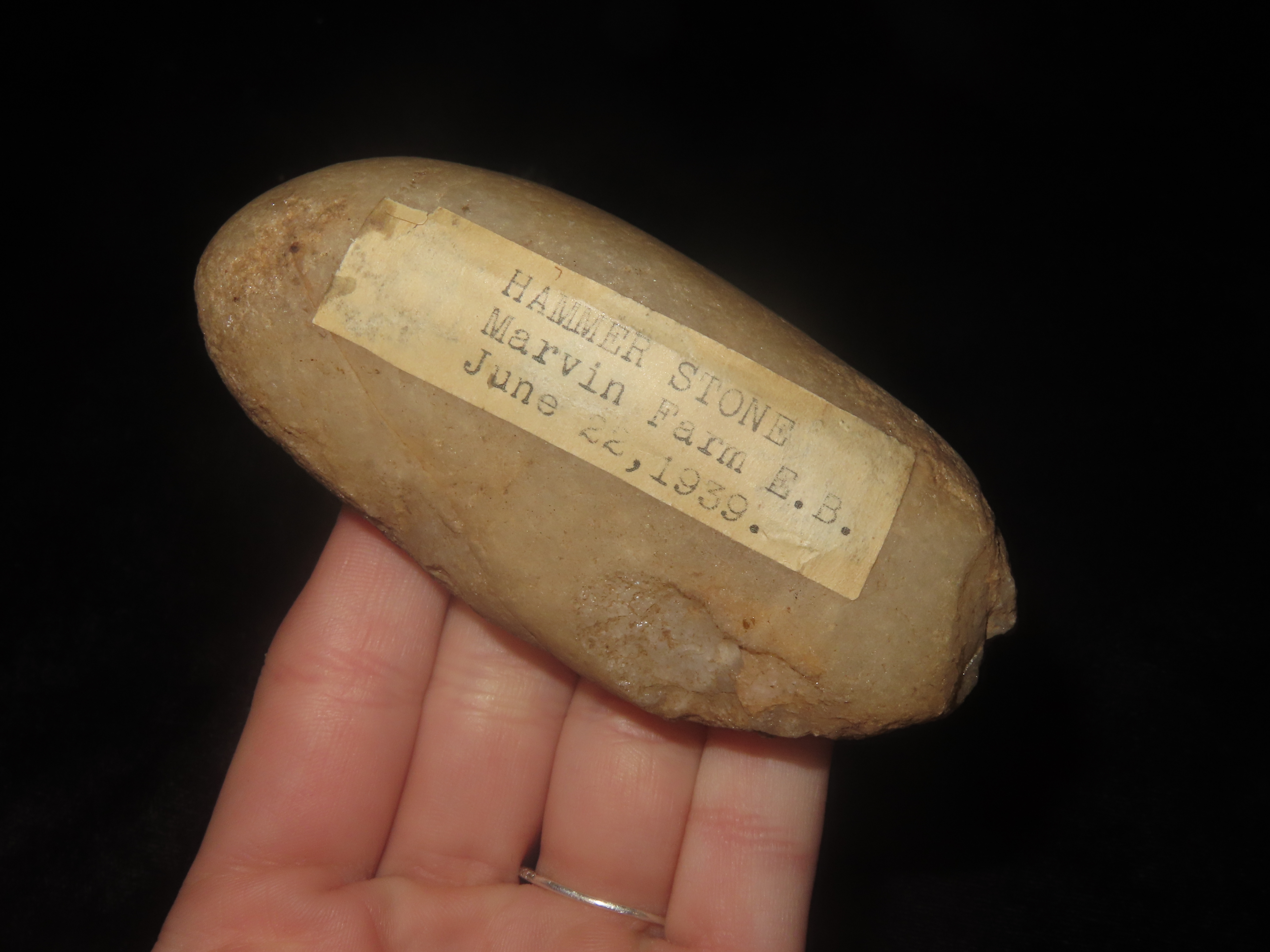 3 3/8″ x 1 3/4″ Native American Quartz Pestle, found in Attleboro, Massachusetts at The Beaver Site on the Marvin Farm, Ex Peter Engstrom, Ex Dr.Robbins Collections