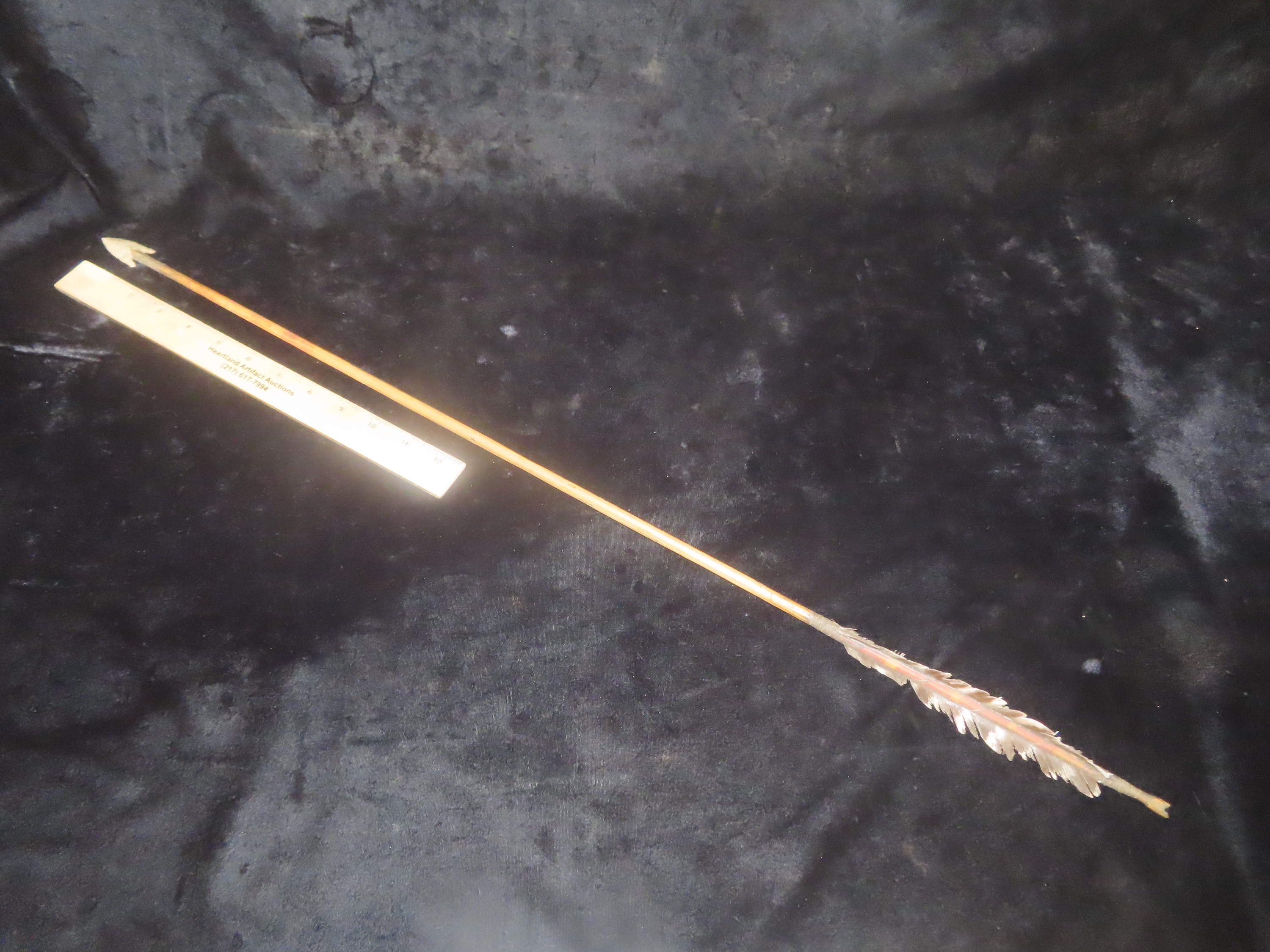 Plains Arrow with Flint Arrowhead and Intact Fletching