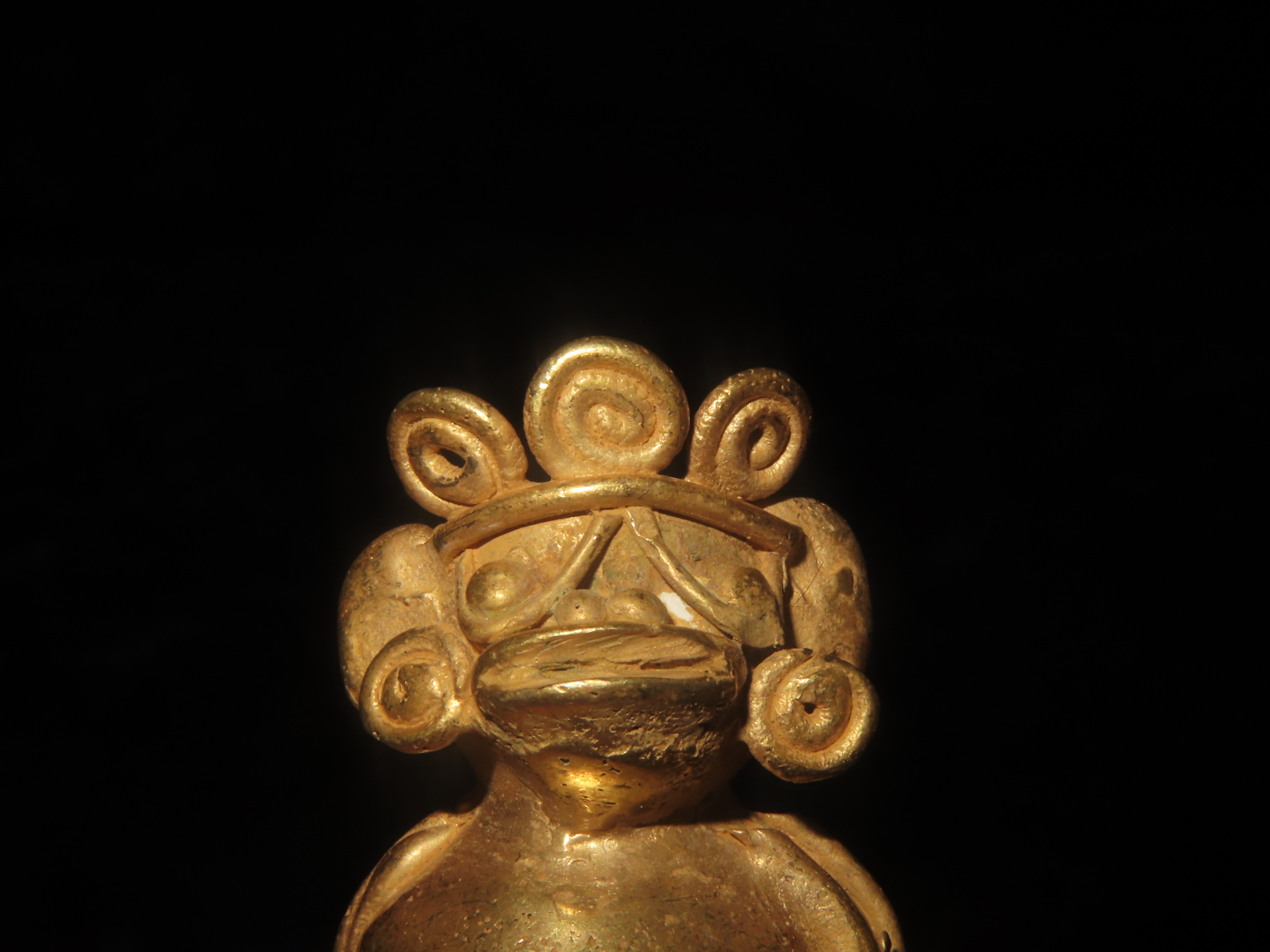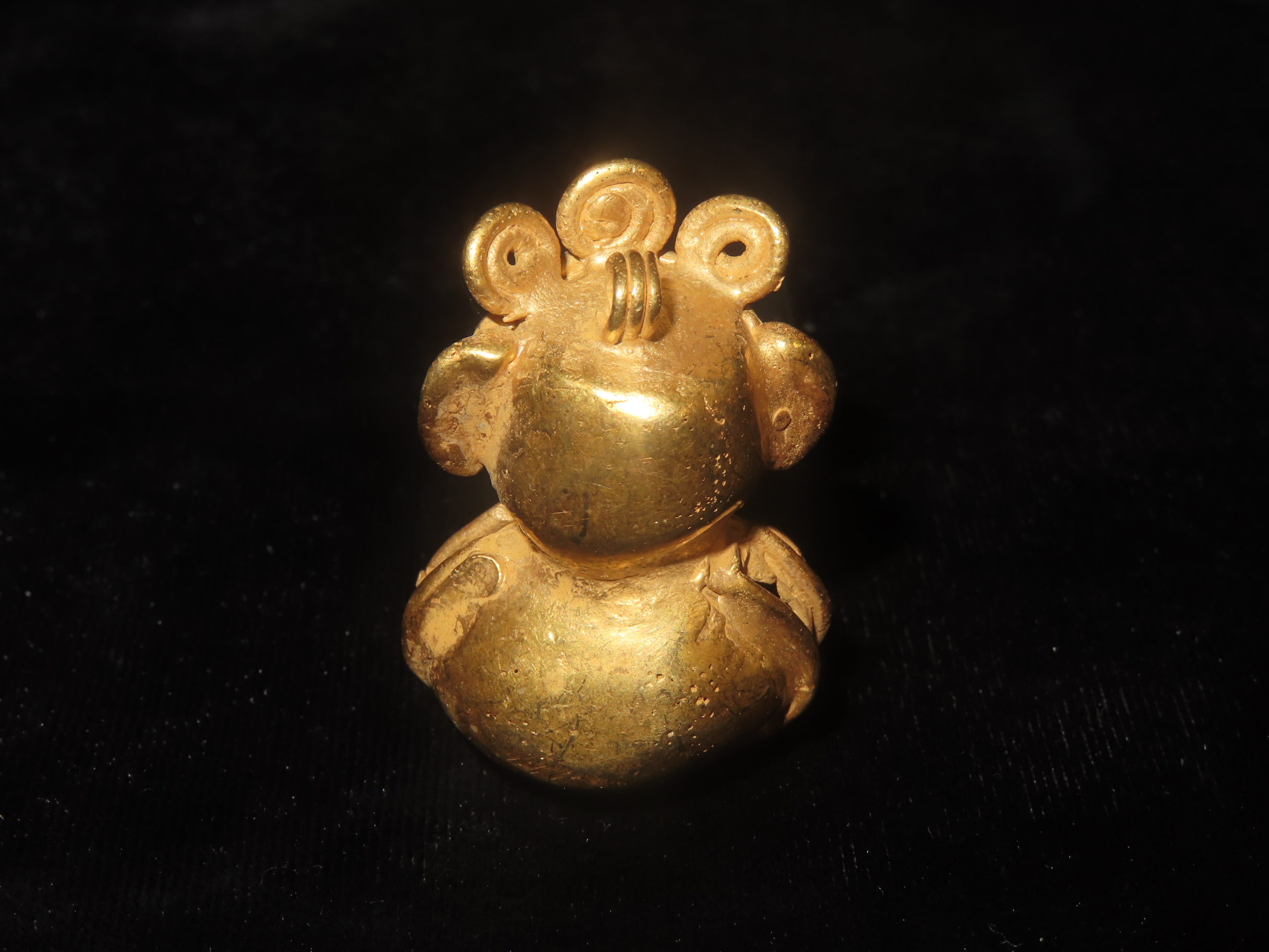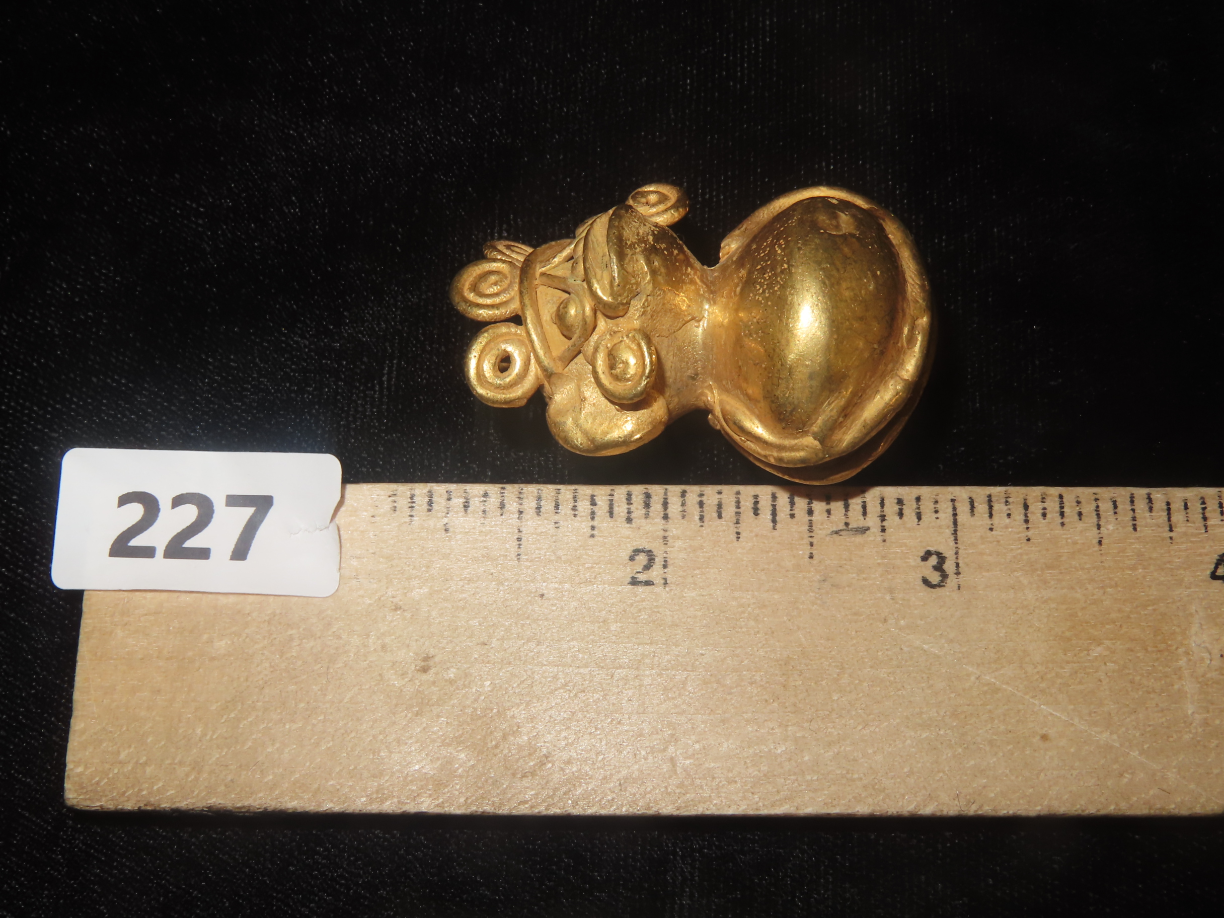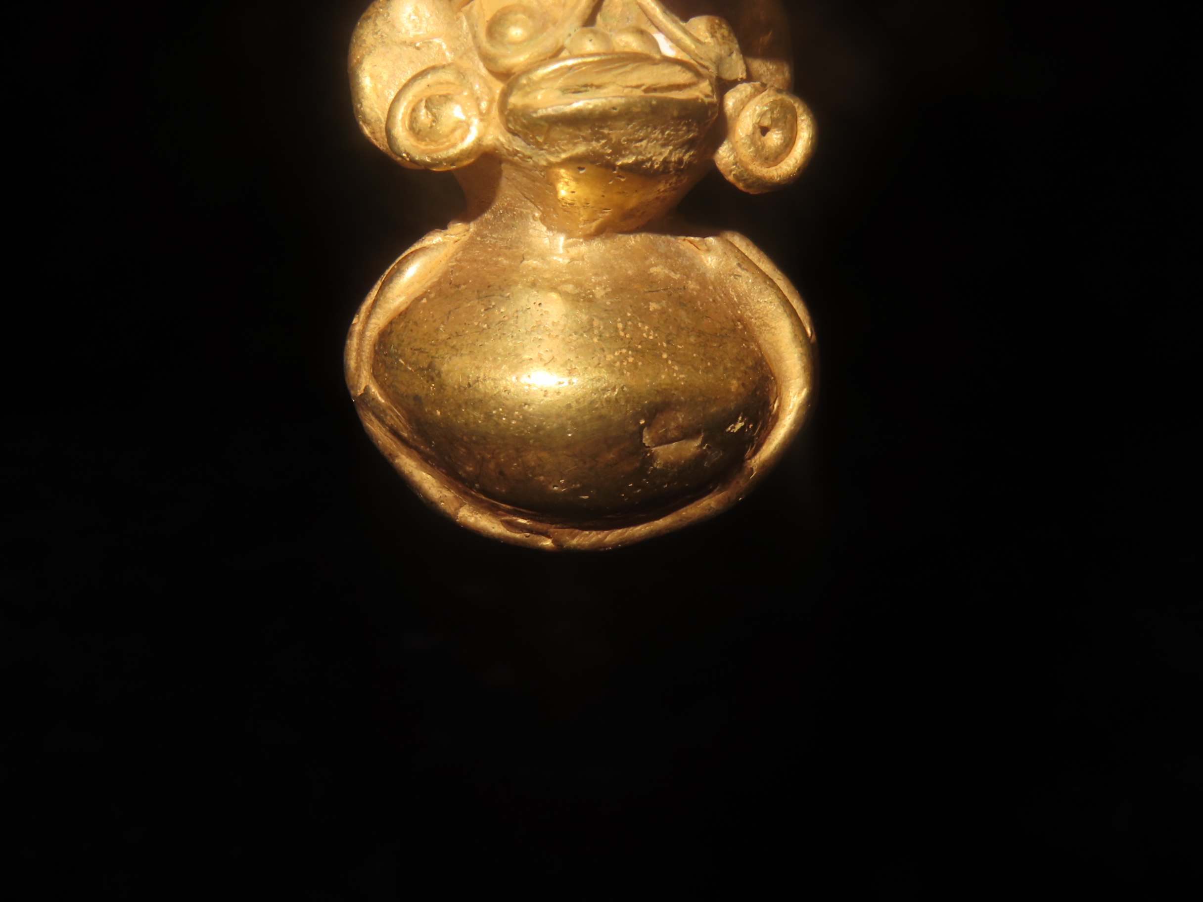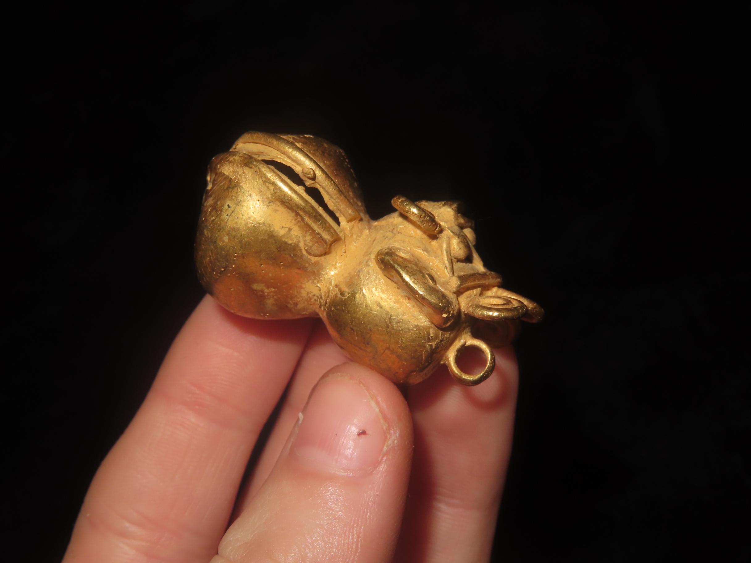 1 5/8″ x 7/8″ Pre Columbian Tairona Tumbaga Human Effigy Bell Figurine Pendant Made From Gold/Copper Alloy