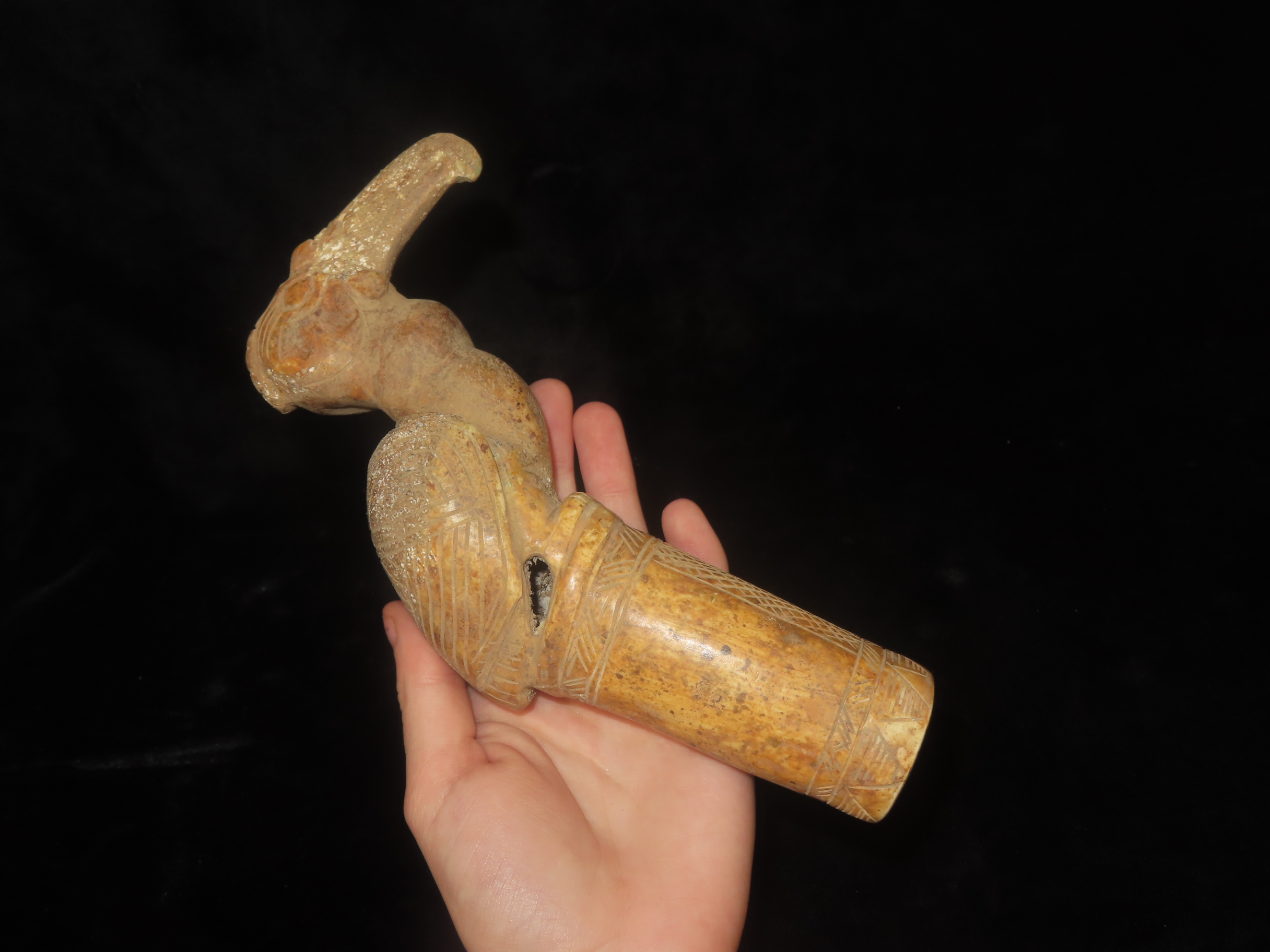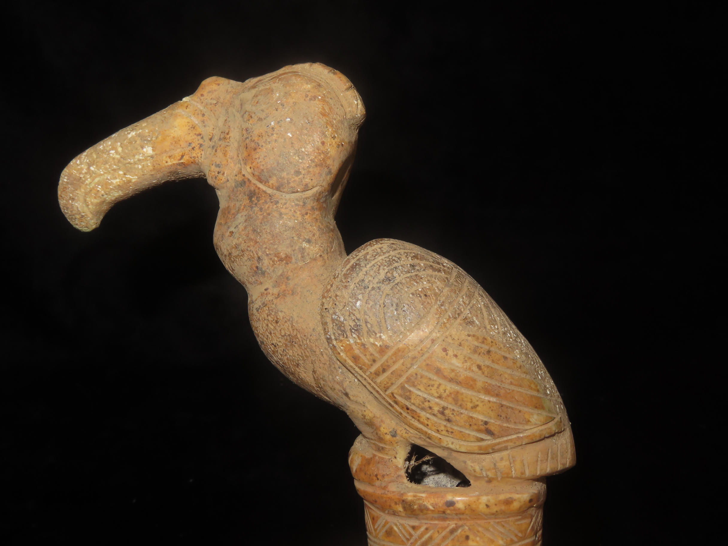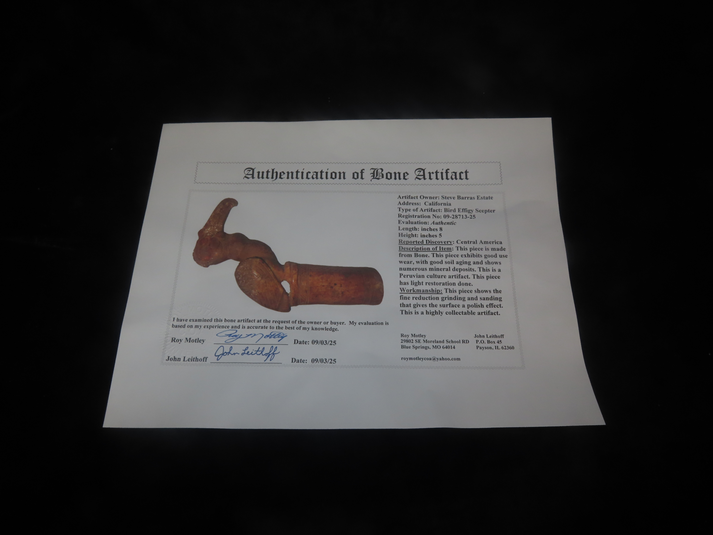 8″ x 5″ Bird Effigy Bone Scepter Finial, Motley COA, **LIGHT RESTORATION**, found in Central America, Ex Steve Barras Estate Collection