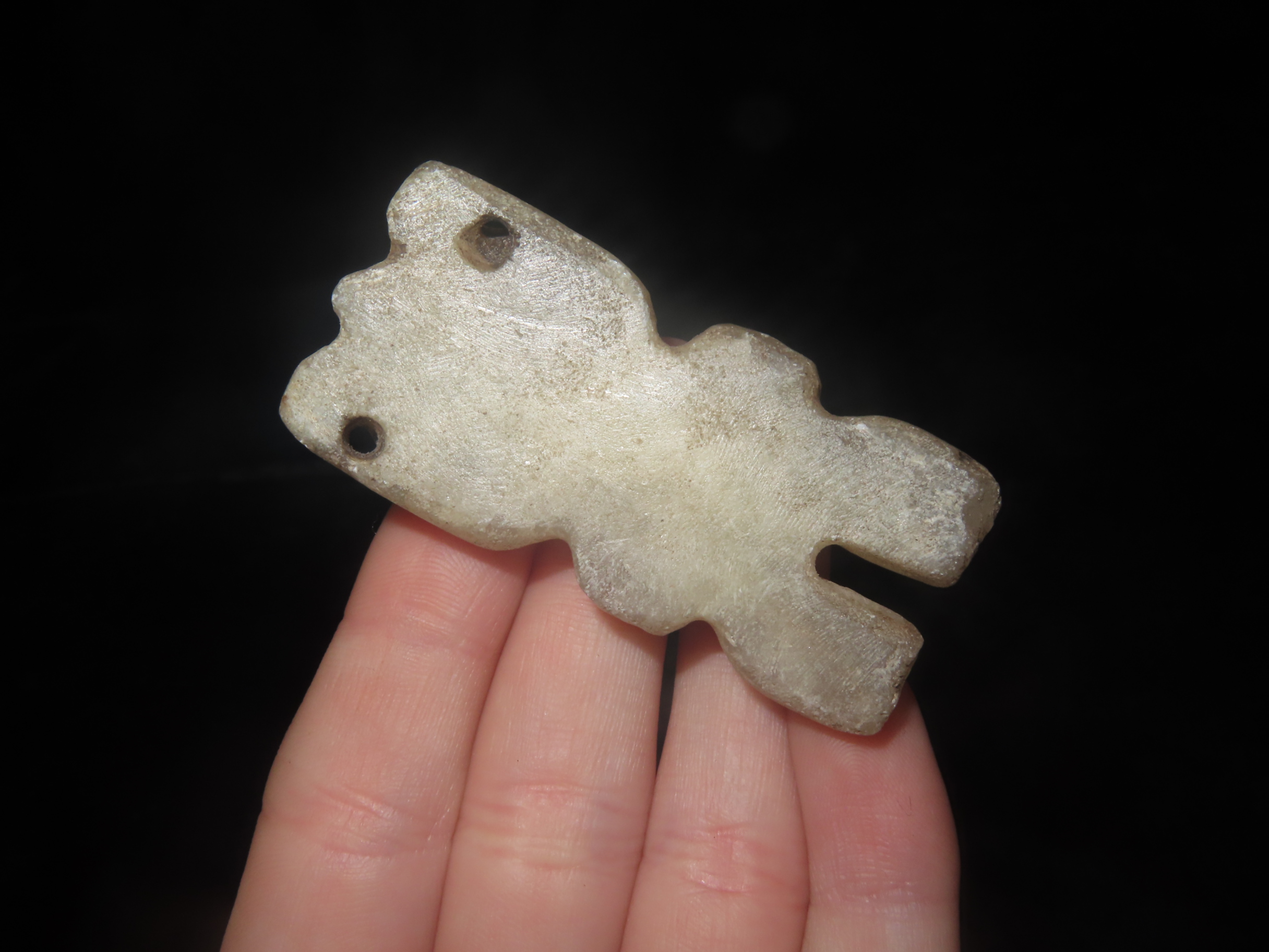 2 1/4" X 1 1/16" Pre-Columbian Human Effigy Pendant, Motley COA, found in South America, Ex Steve Barras Estate Collection