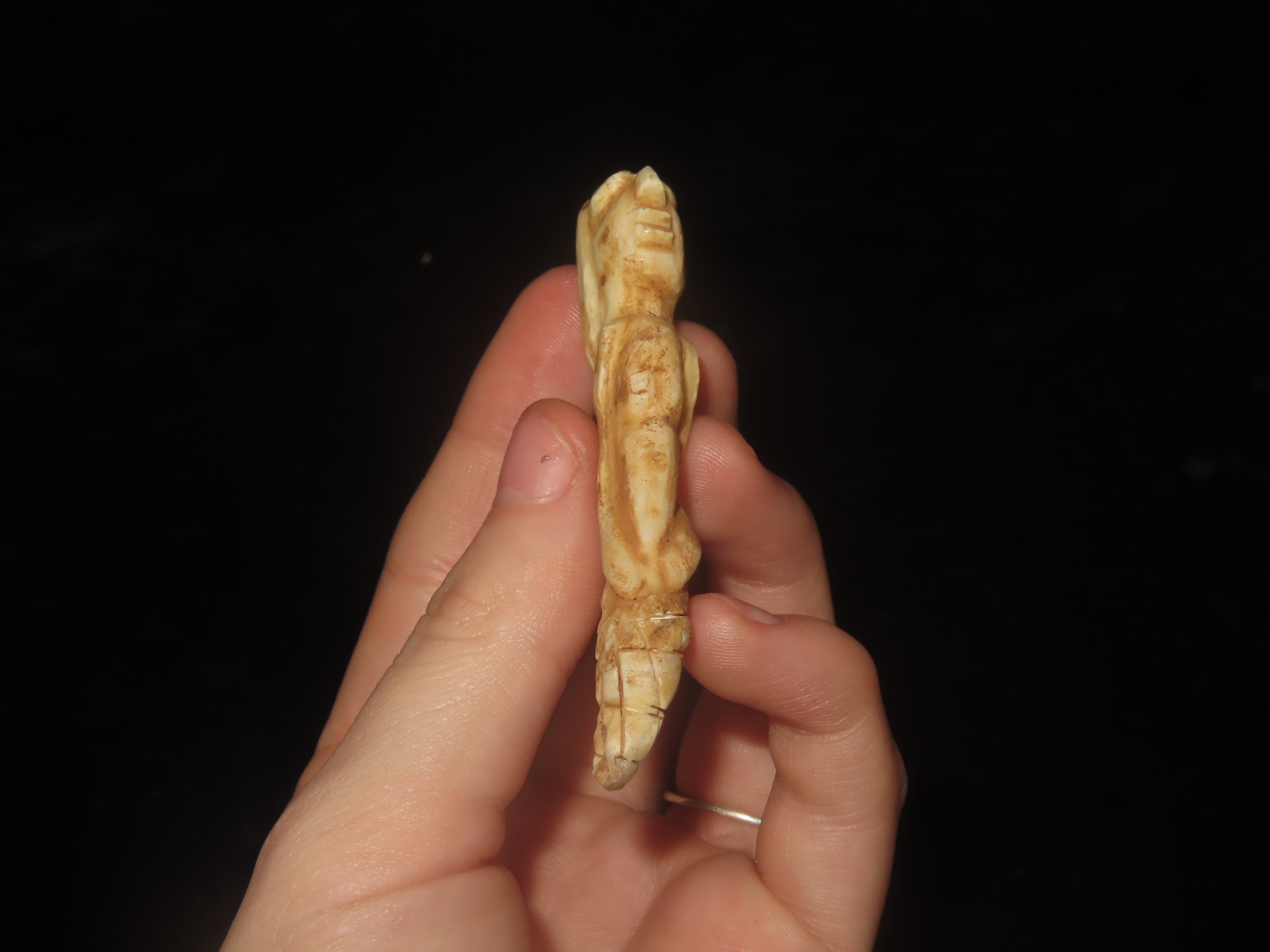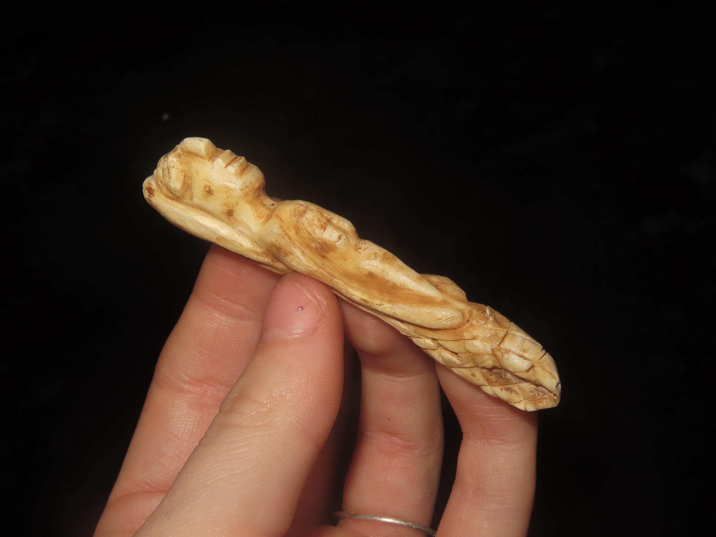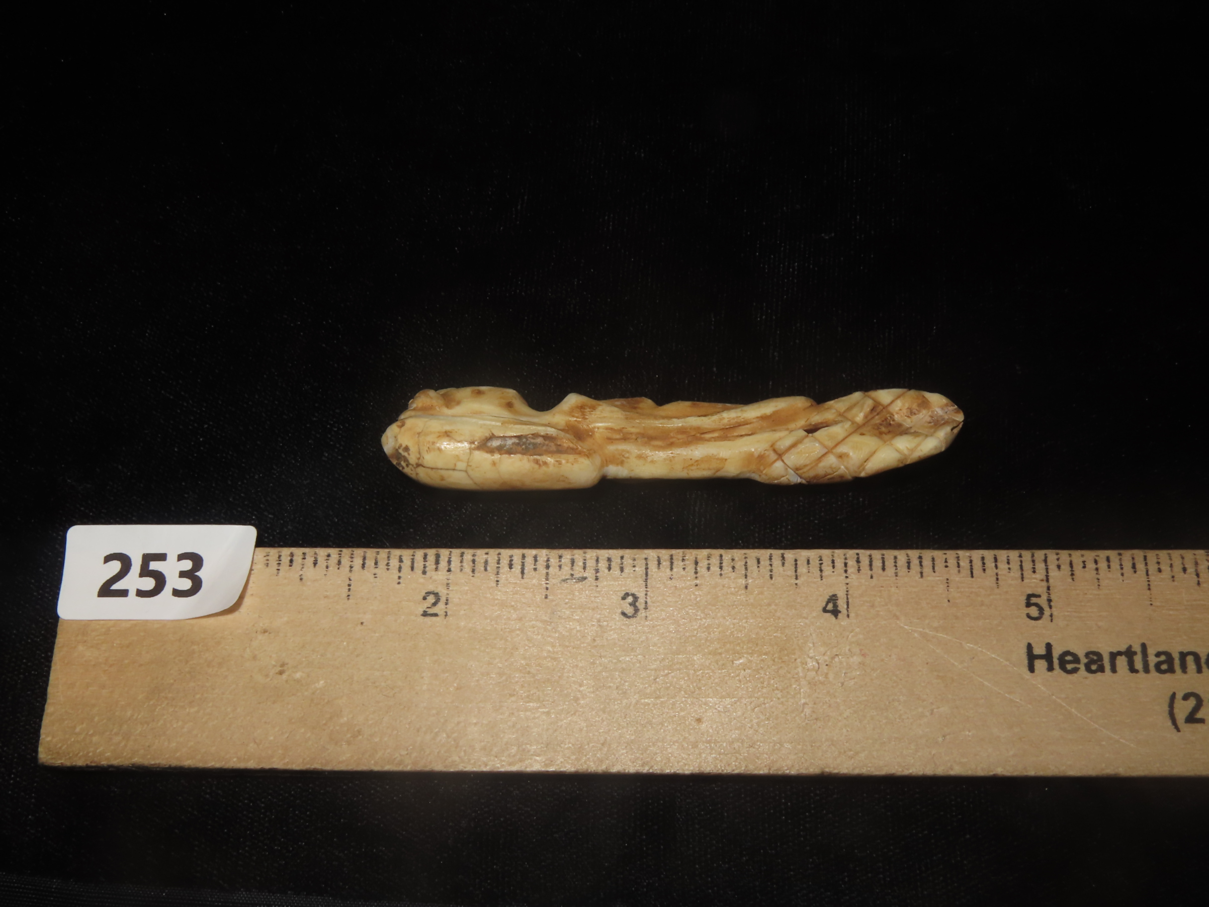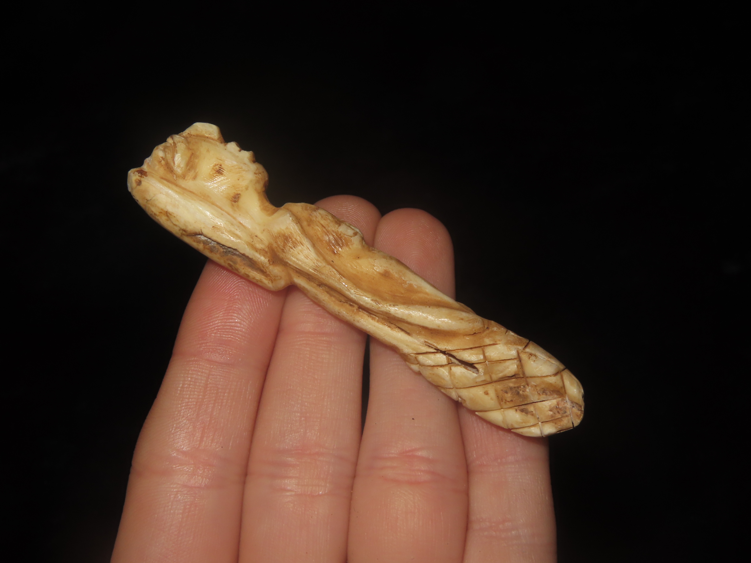 3″ x 7/8″ Pre-Columbian Bone Zoomorphic Human Effigy Pendant, Motley COA, found in Central America