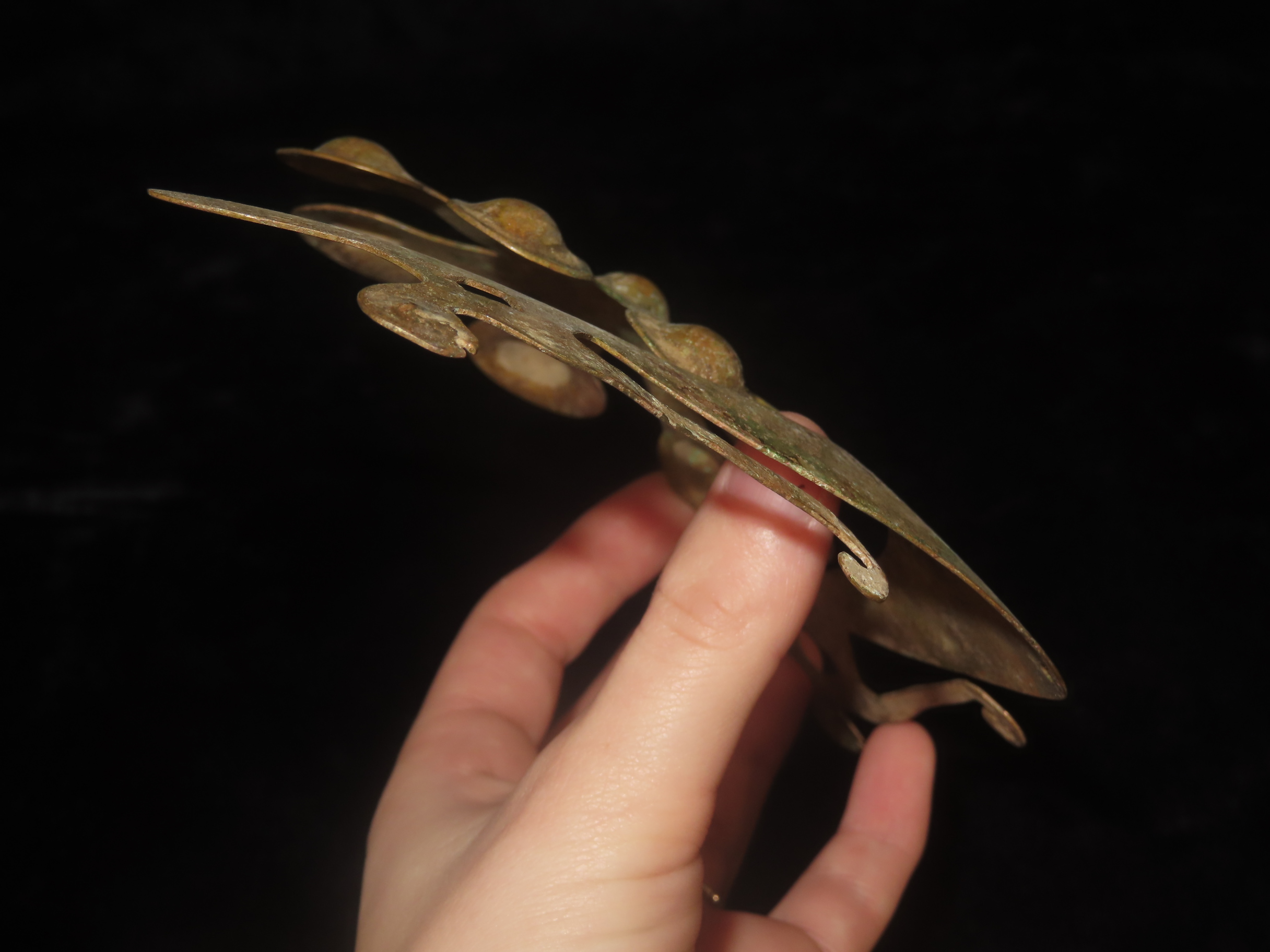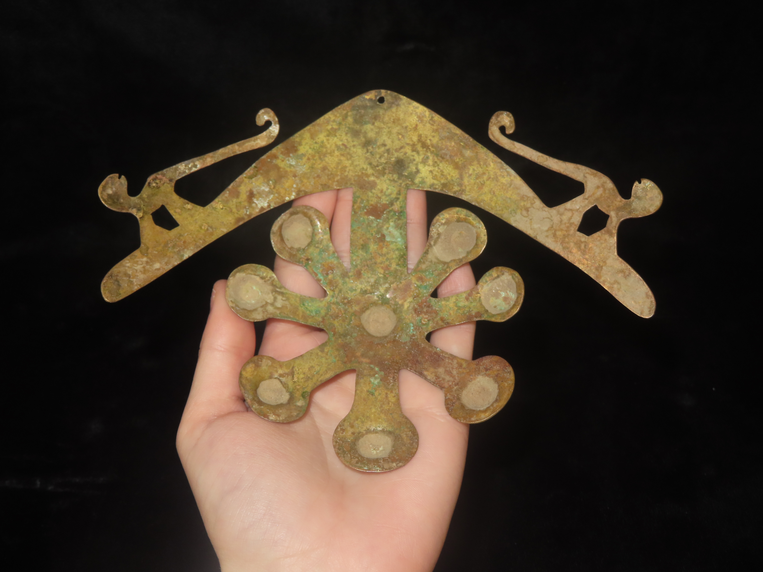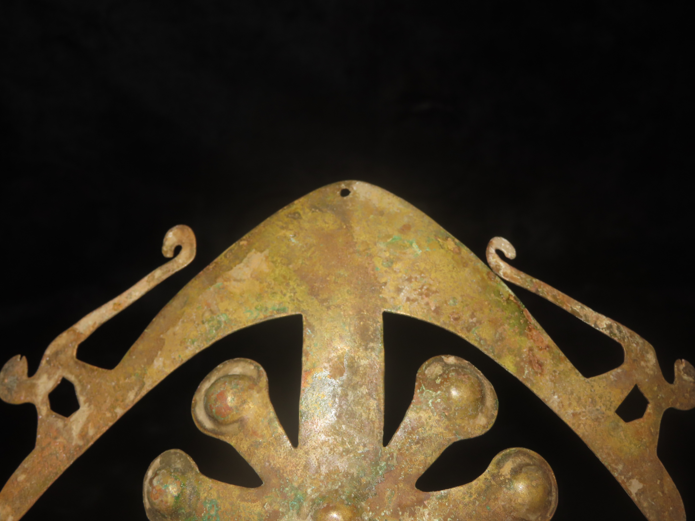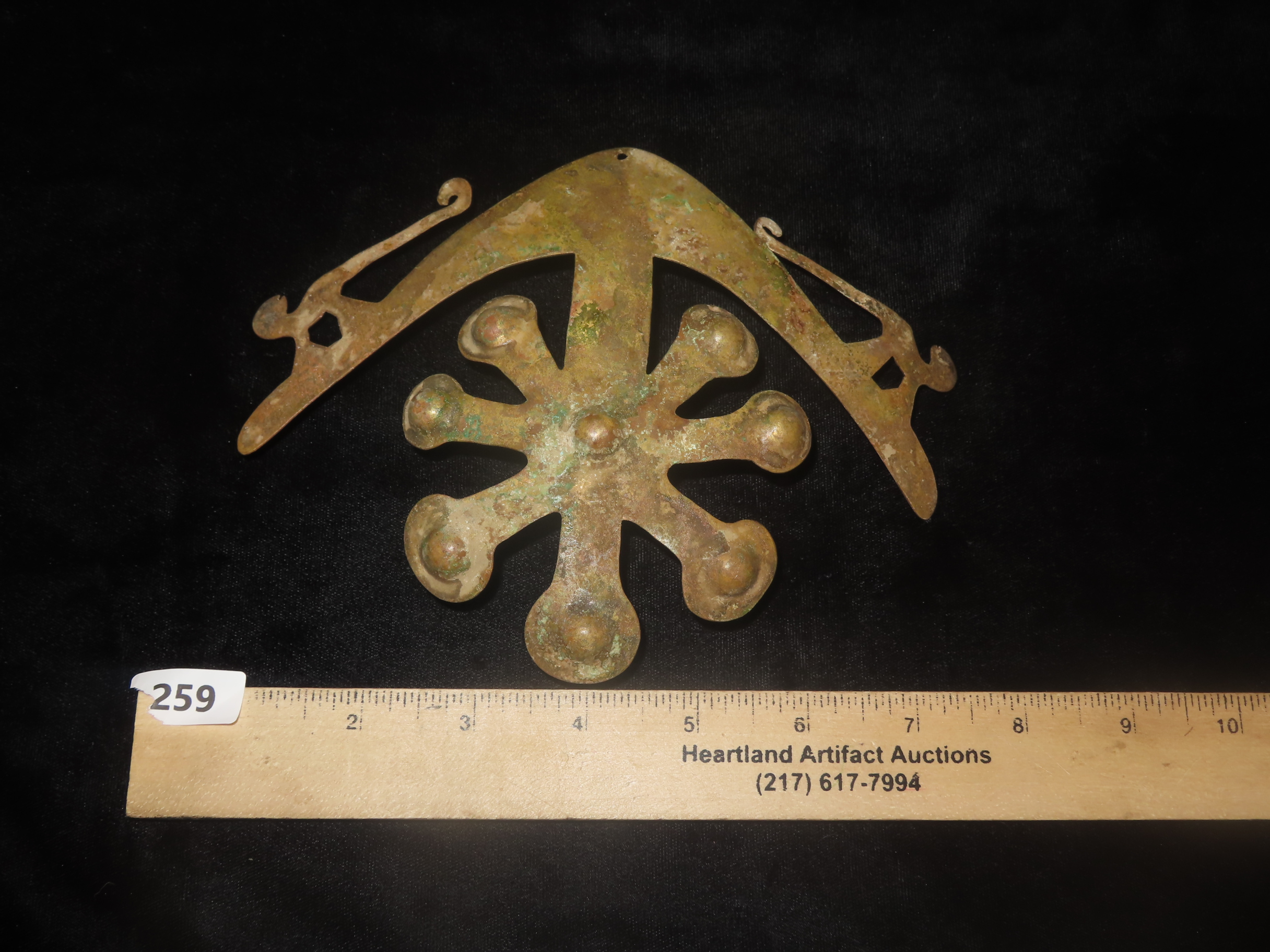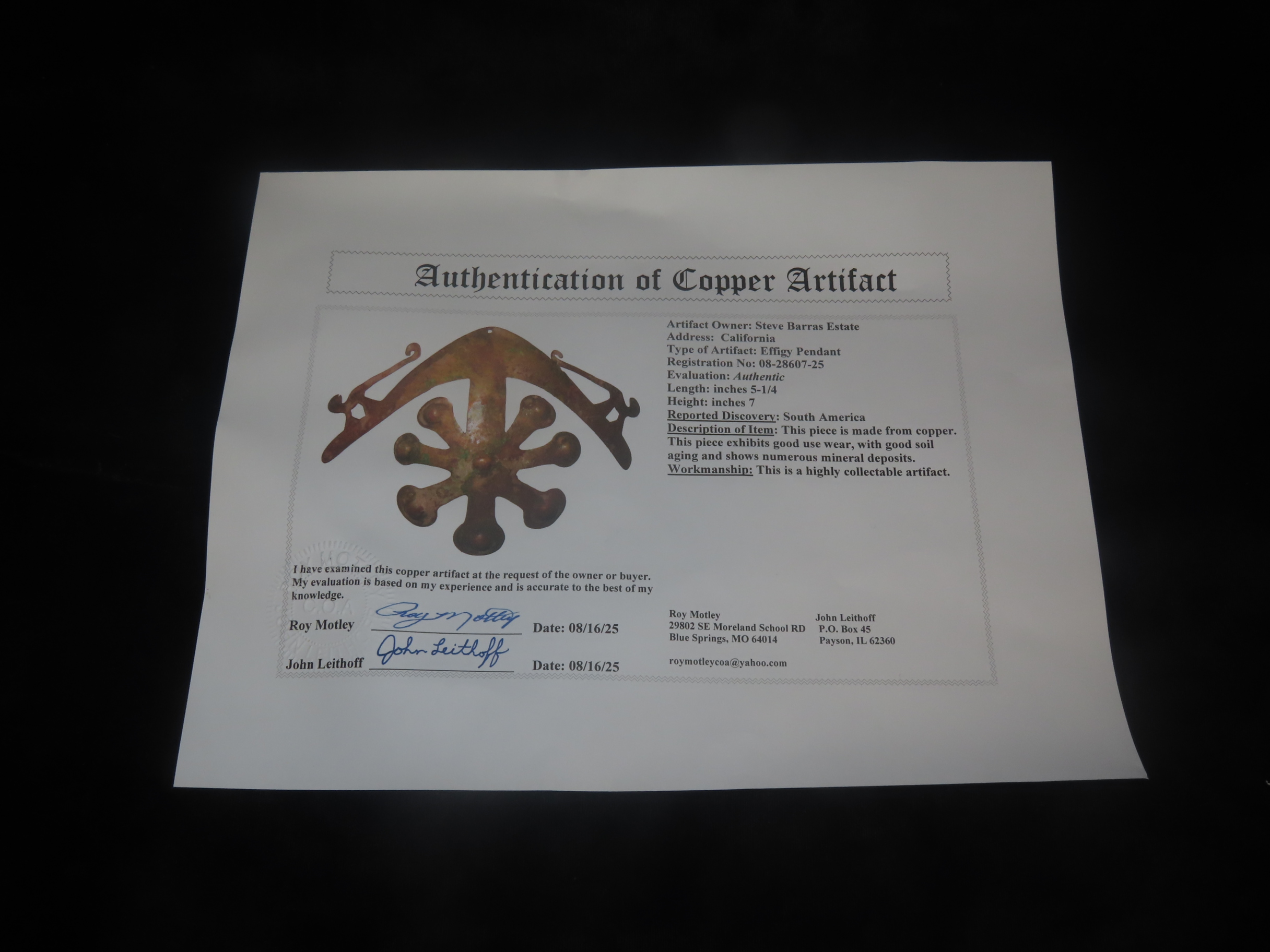 5 1/4″ x 7″ Copper Effigy Pendant, Motley COA, found in South America, Ex Steve Barras Estate Collection