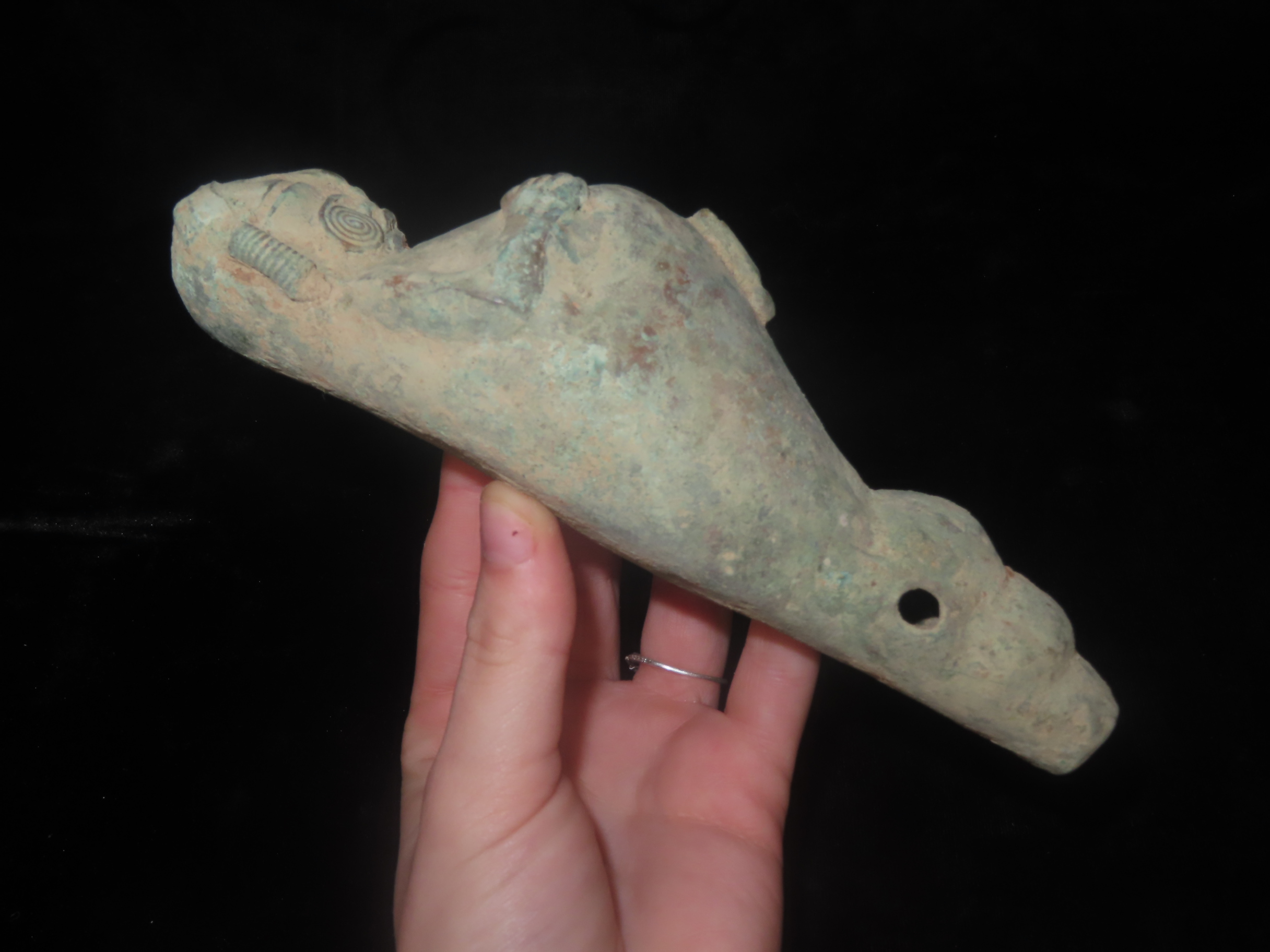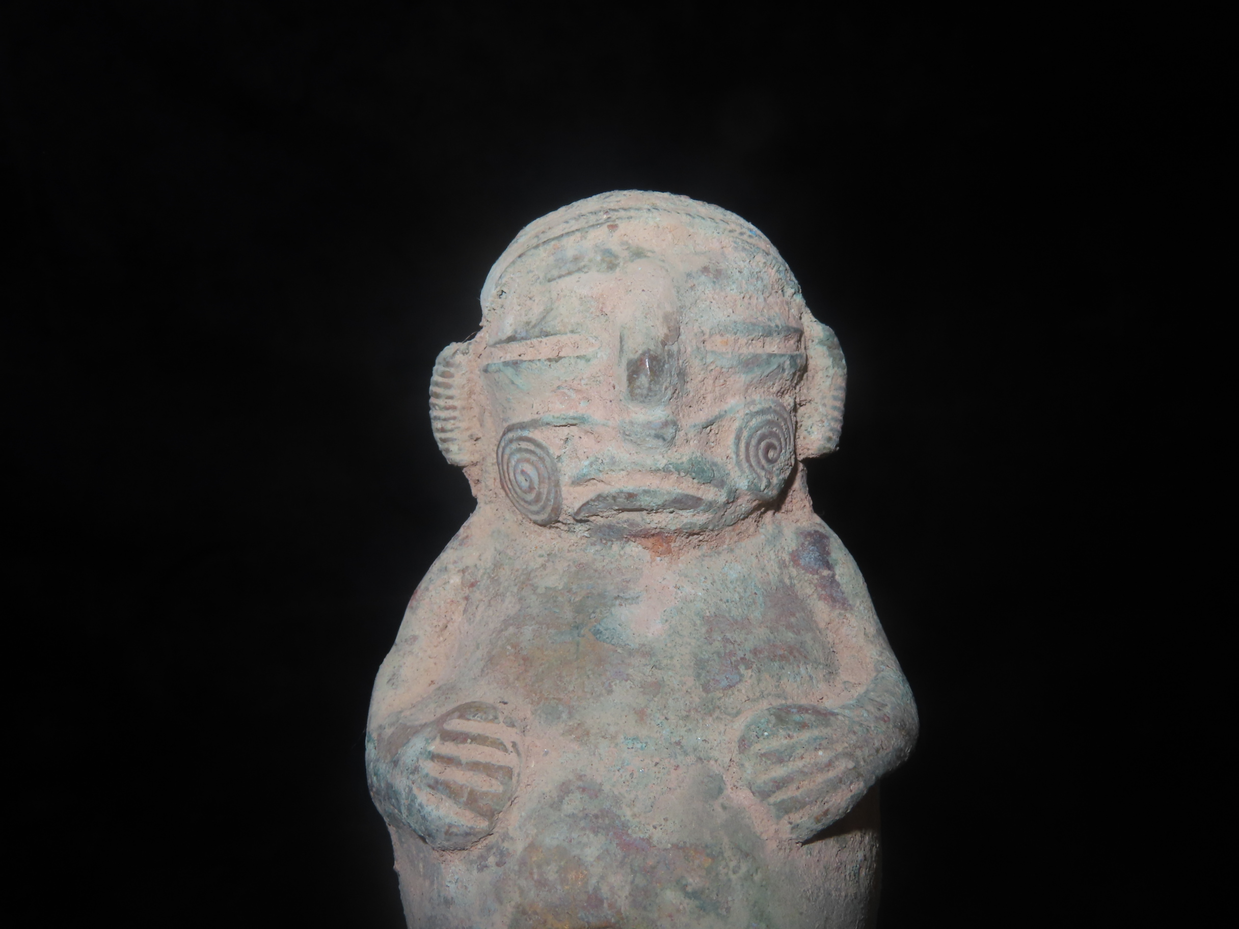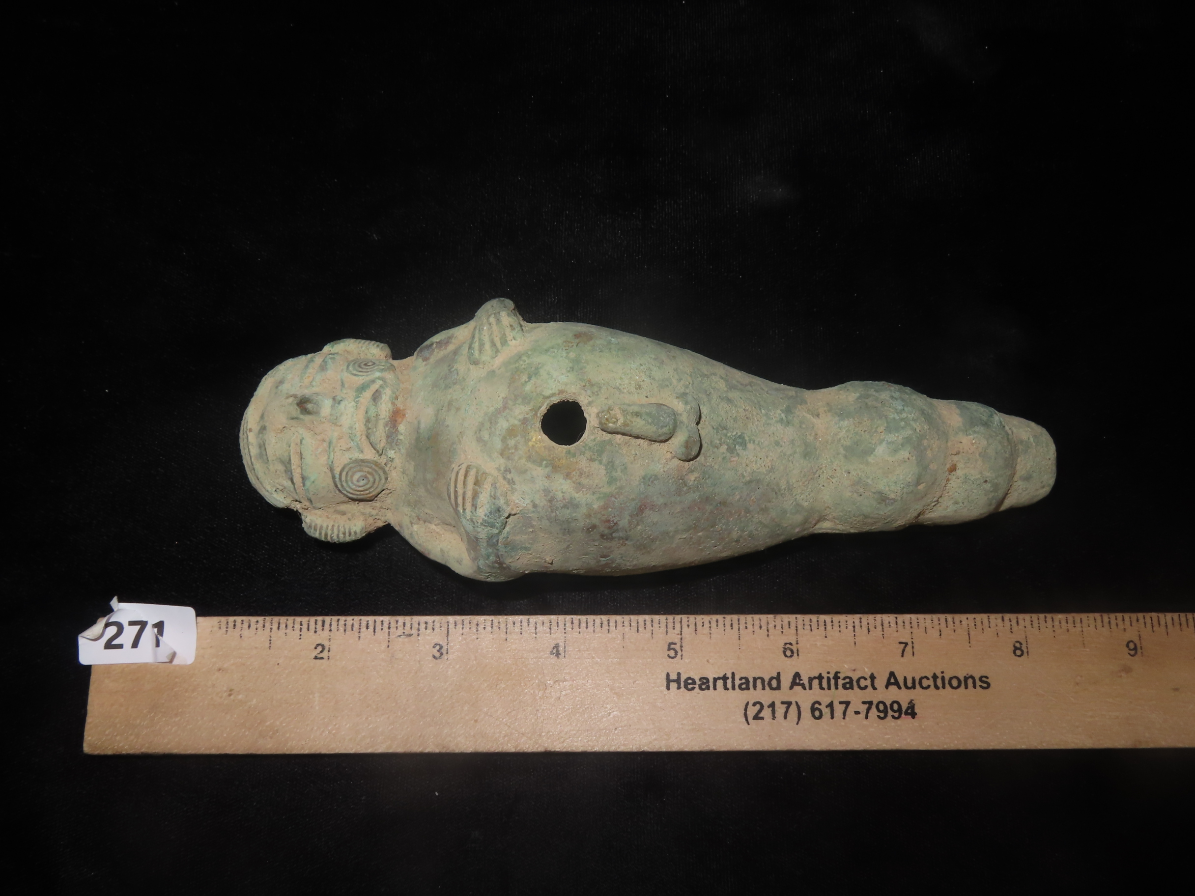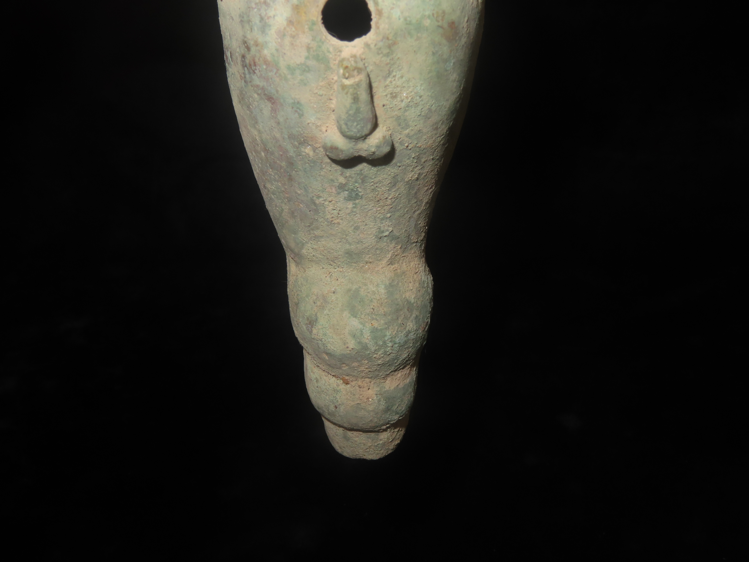 7″ x 2 1/4″ Pre Columbian Moche Copper Vessel Idol Effigy Of A Chubby Man, With Penis Possible Whistle
