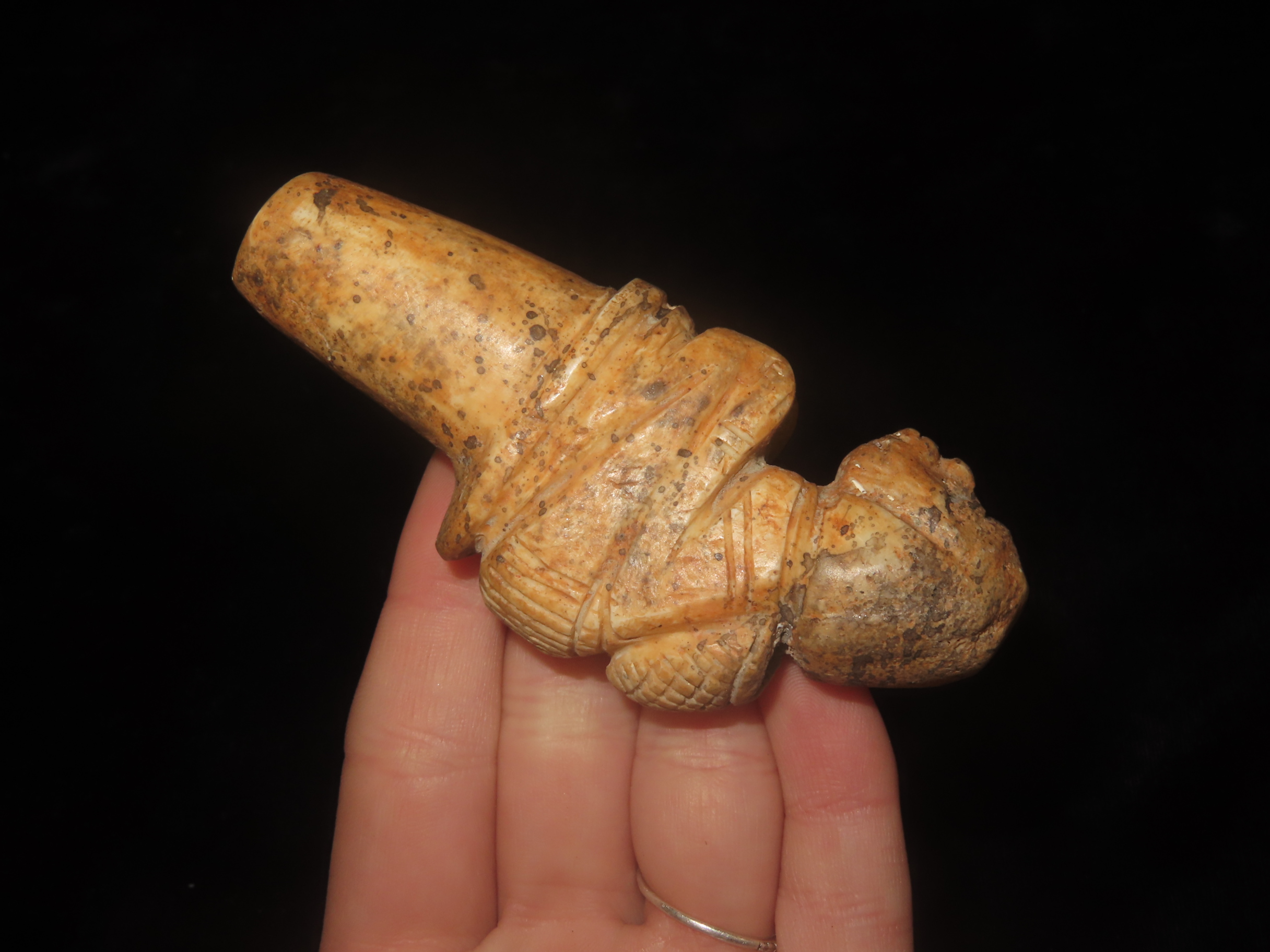 3 1/2″ x ! 1/2″ Bone Human Effigy Pre Columbian Found In Peru South America