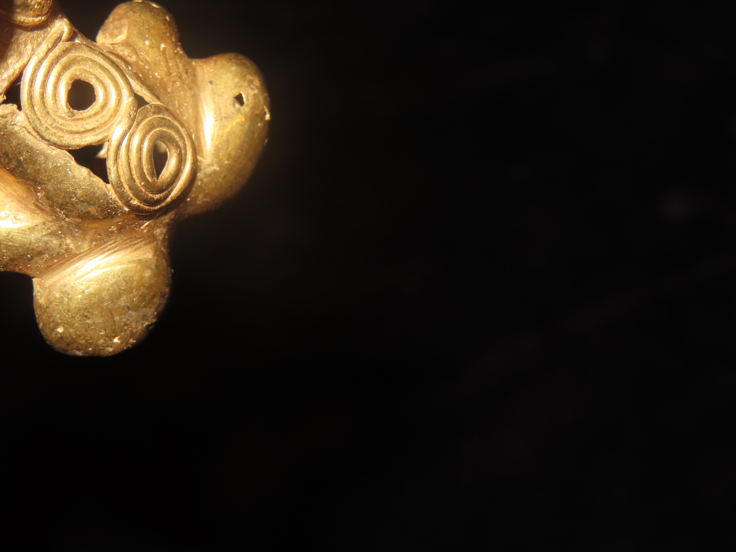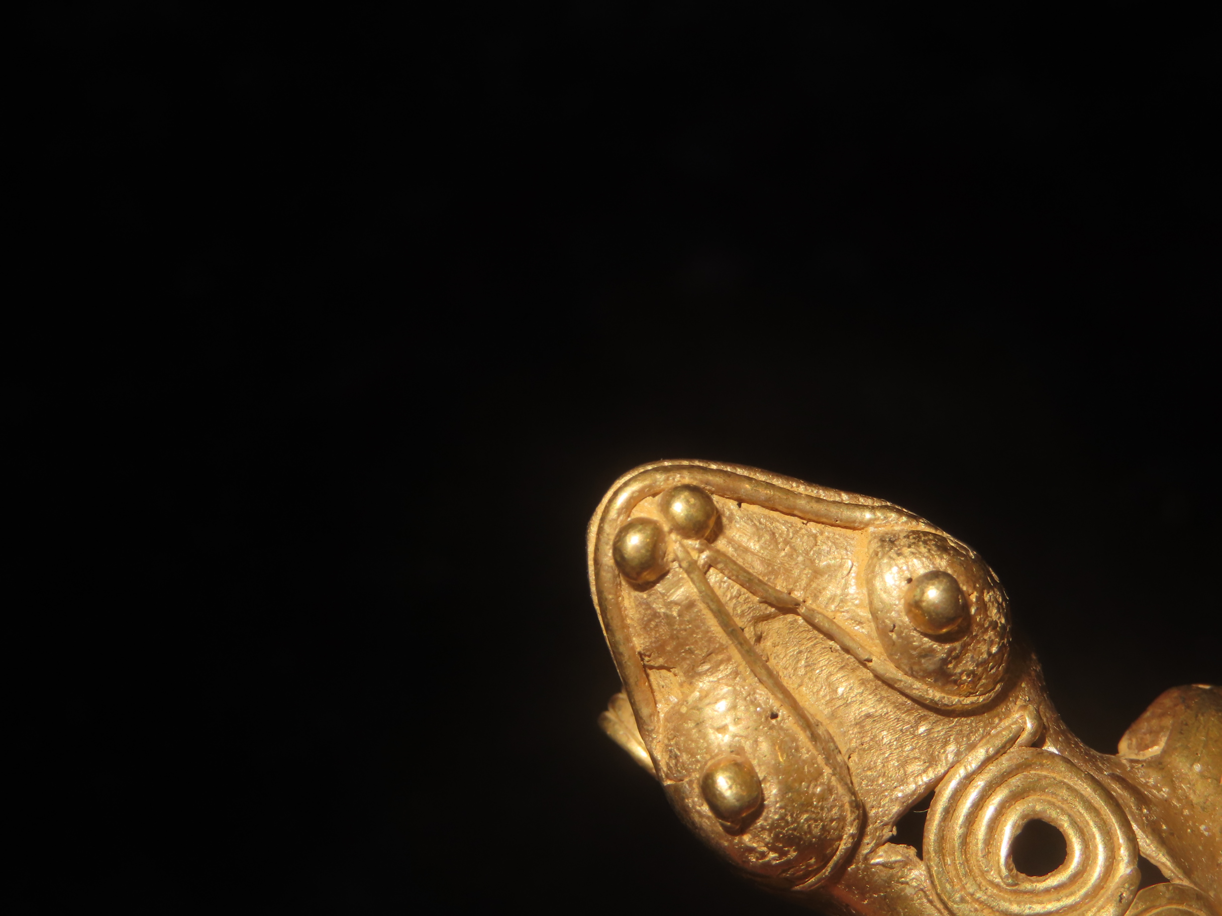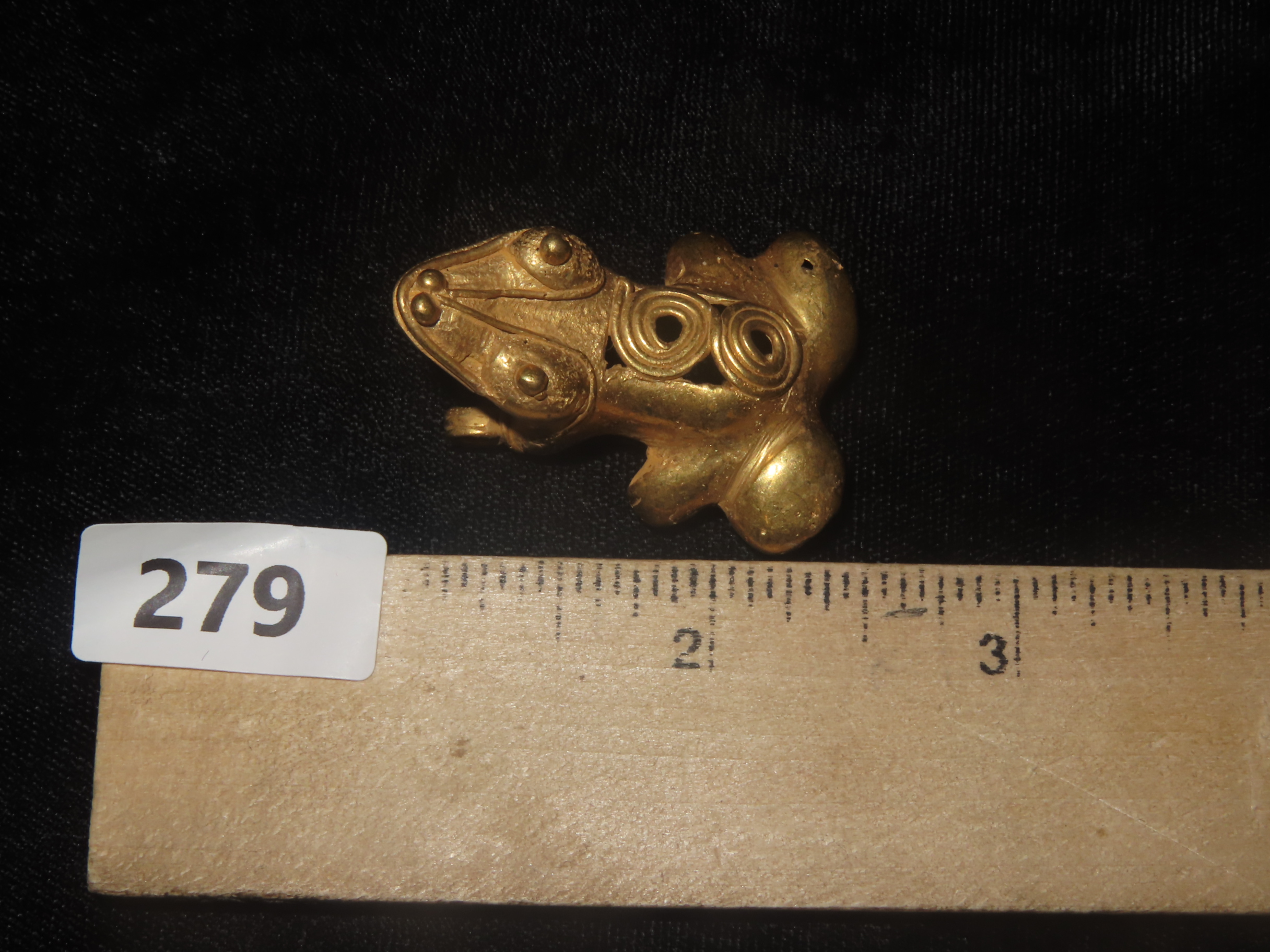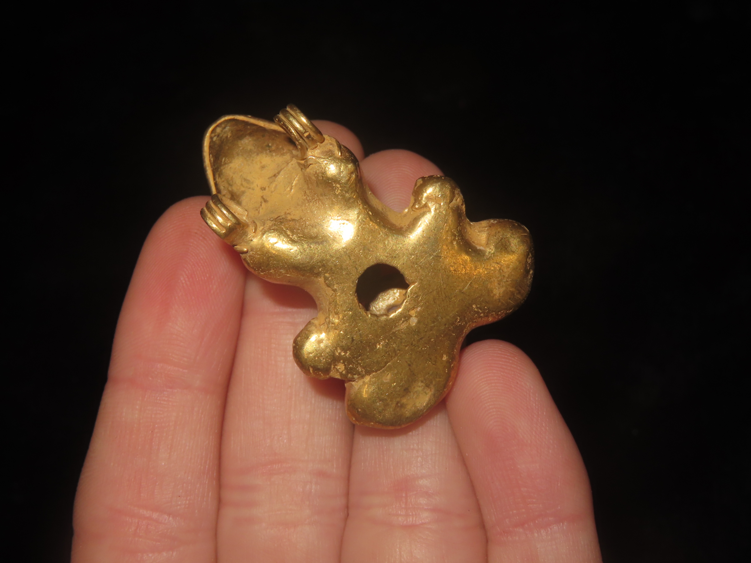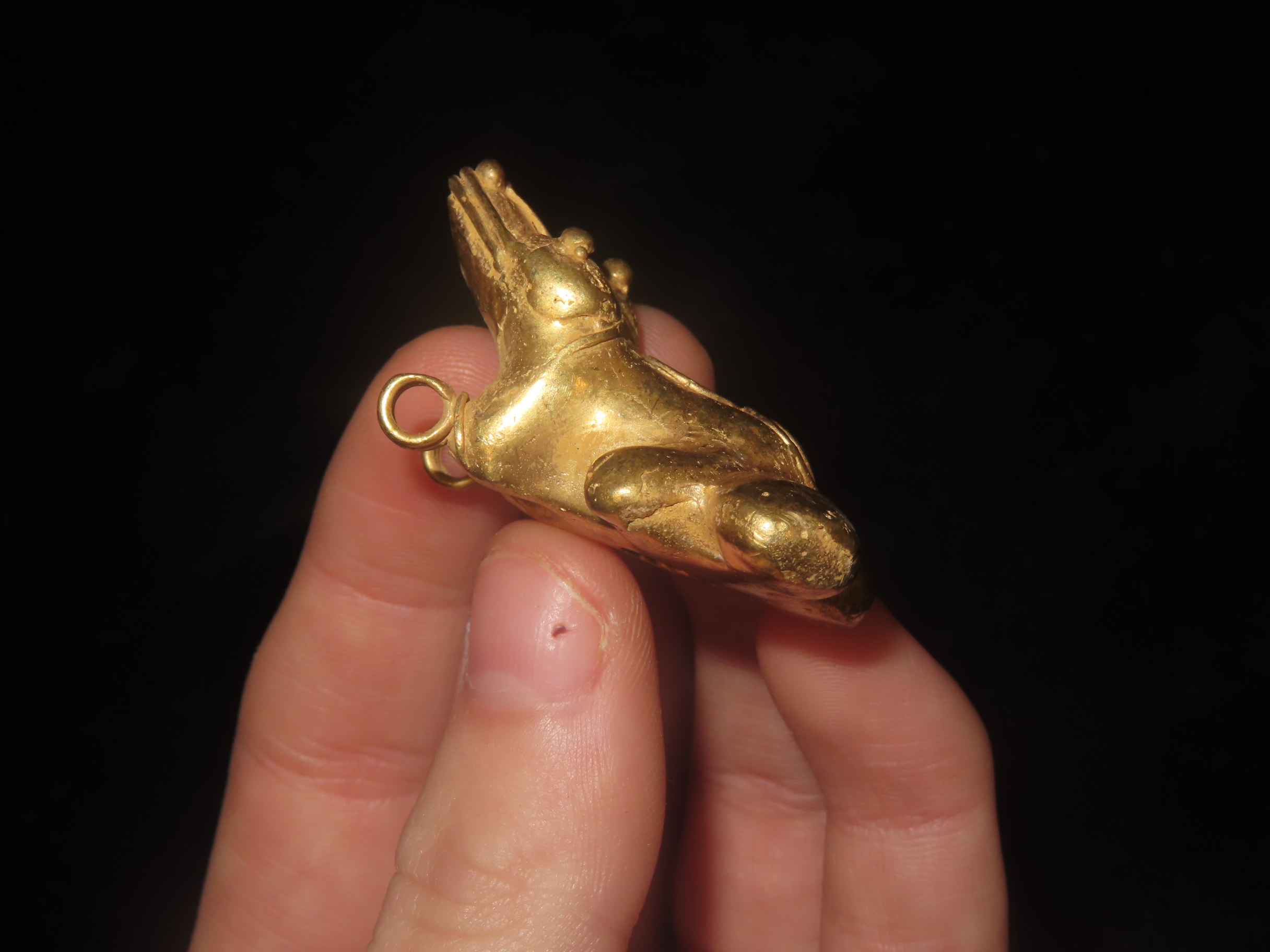 1 1/2″ x 7/8″ Pre Columbian Tairona Tumbaga Sitting Frog Figurine Pendant Made From Gold/Copper Alloy