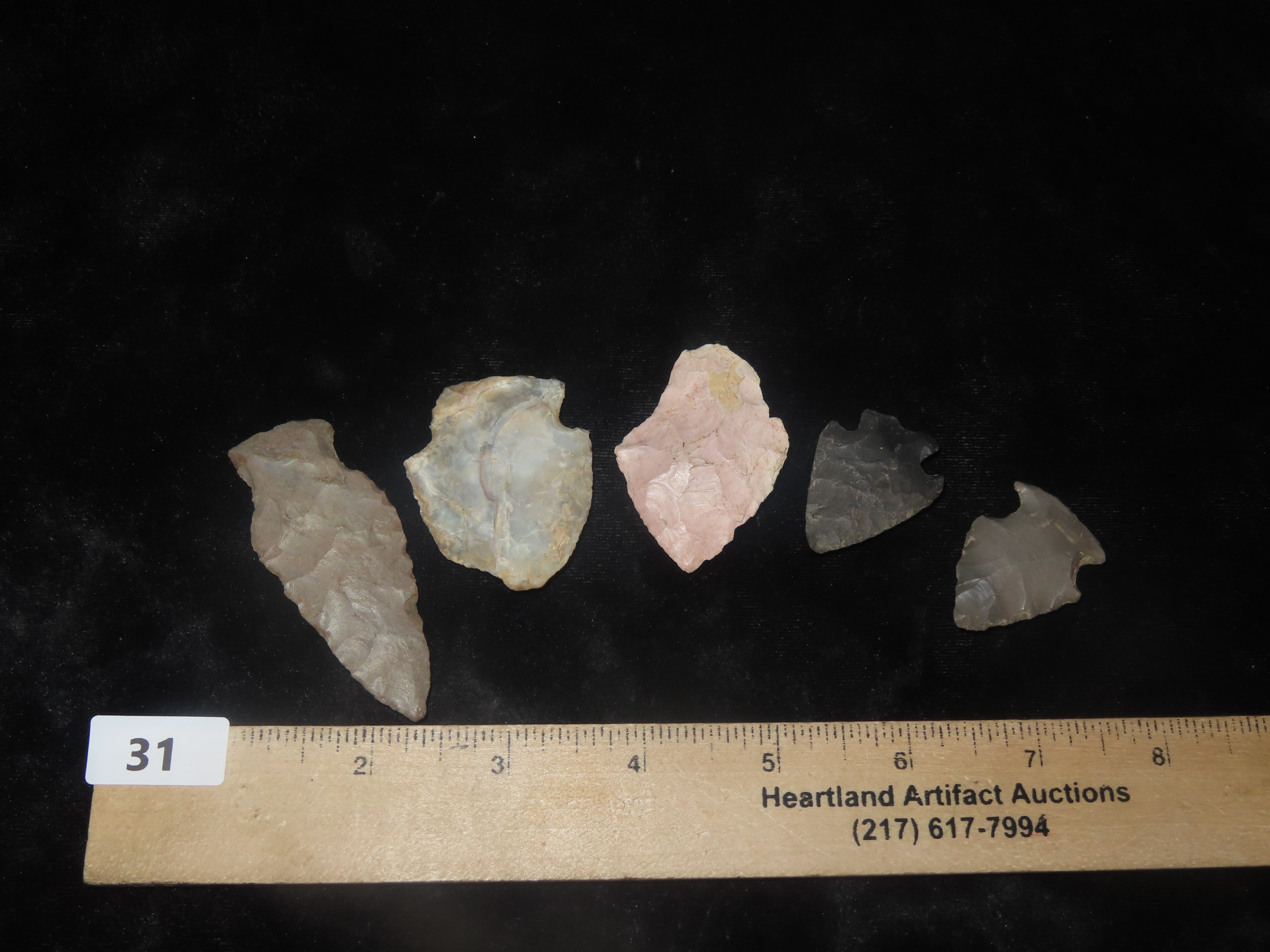 5 Quality Arrowheads, EX: Schoon Woodford Co IL.