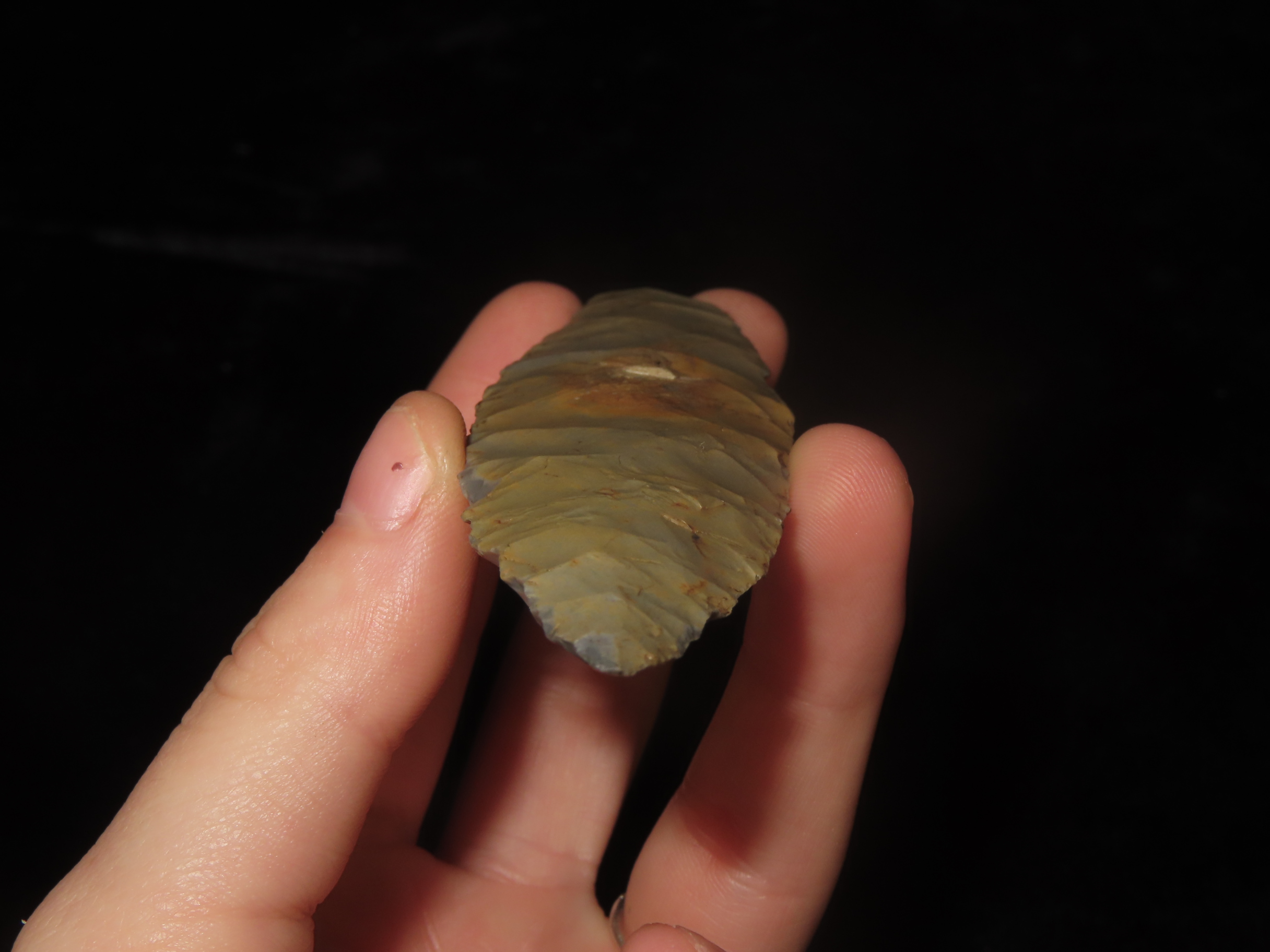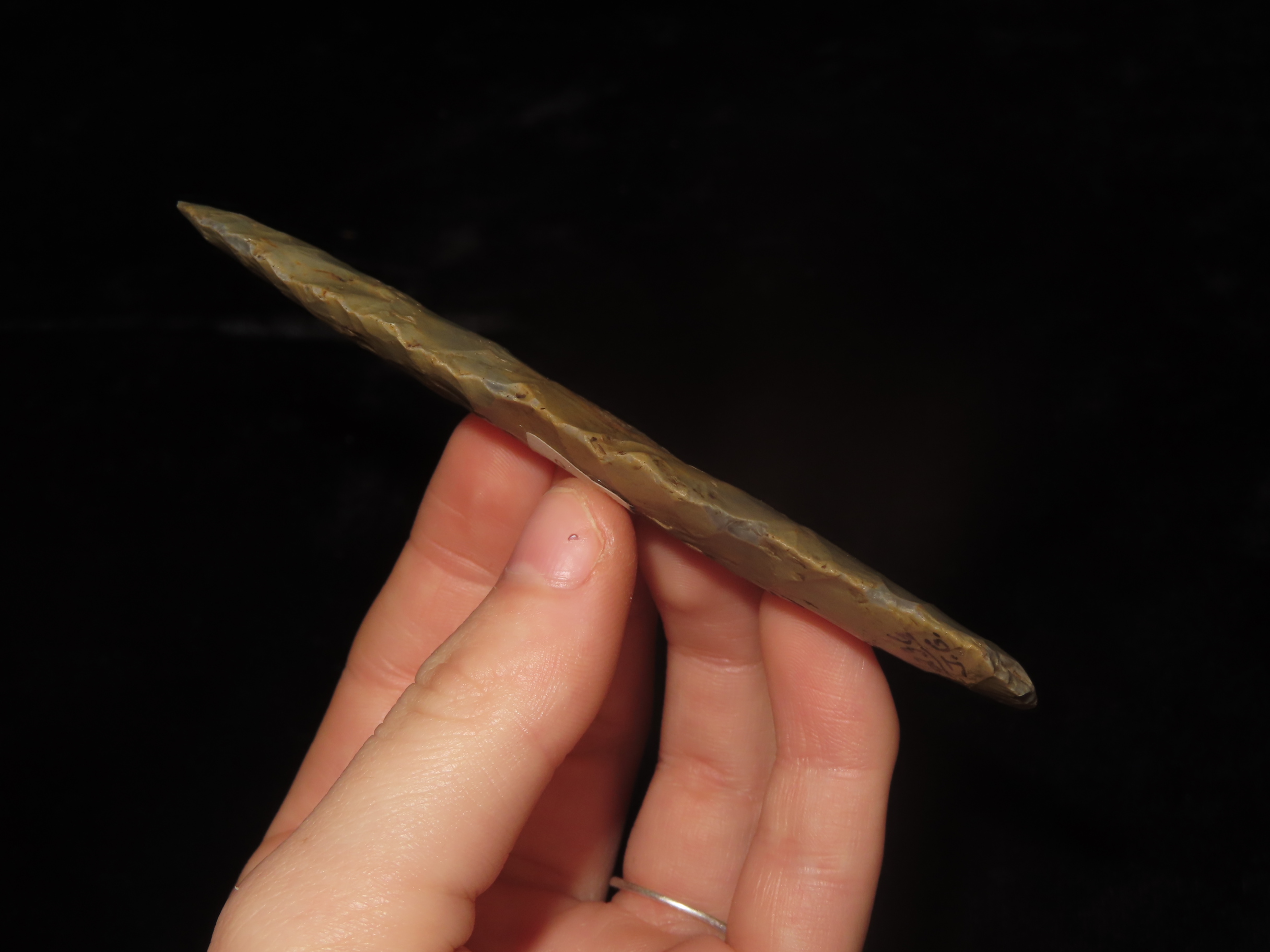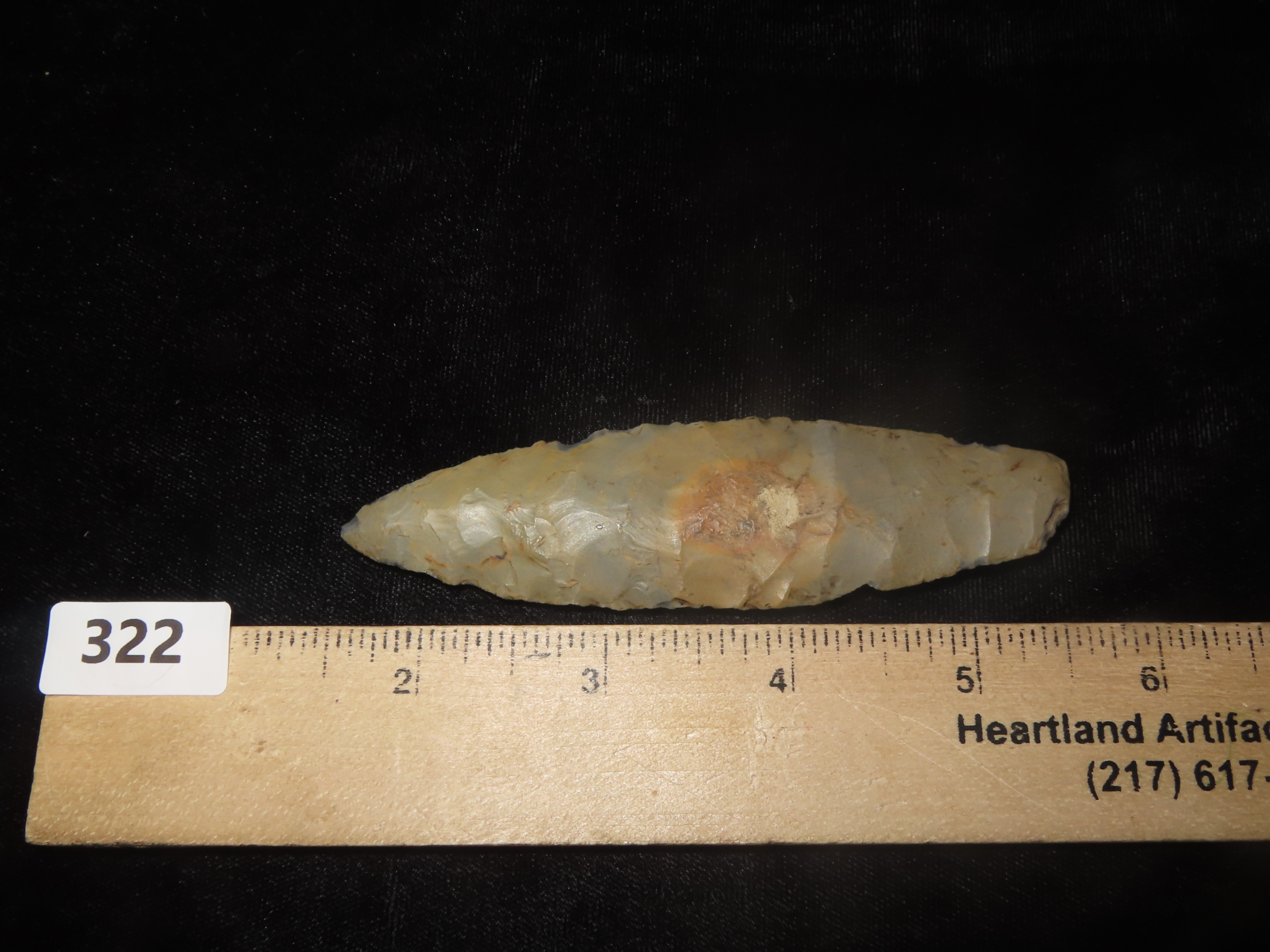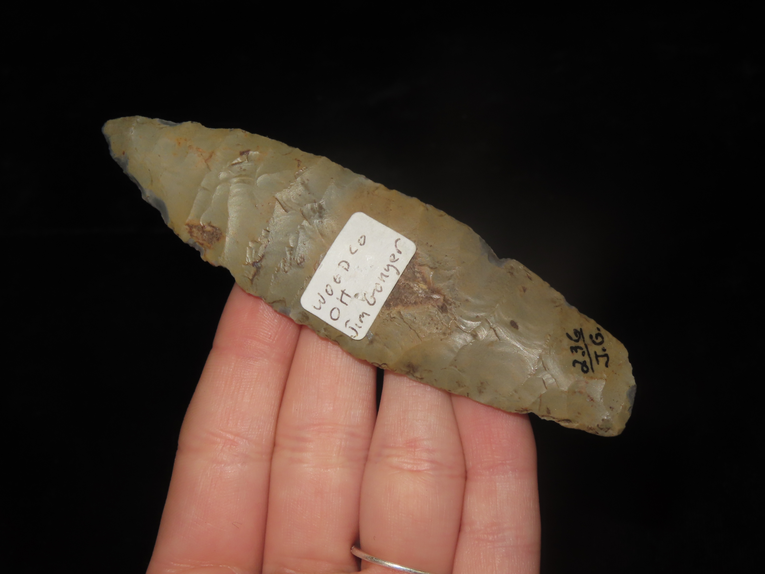 4 1/8″ x 1 1/8″ Agate Basin Paleo Lance Woodford Co Ohio Jim Gonyer Modern Tip Retouching