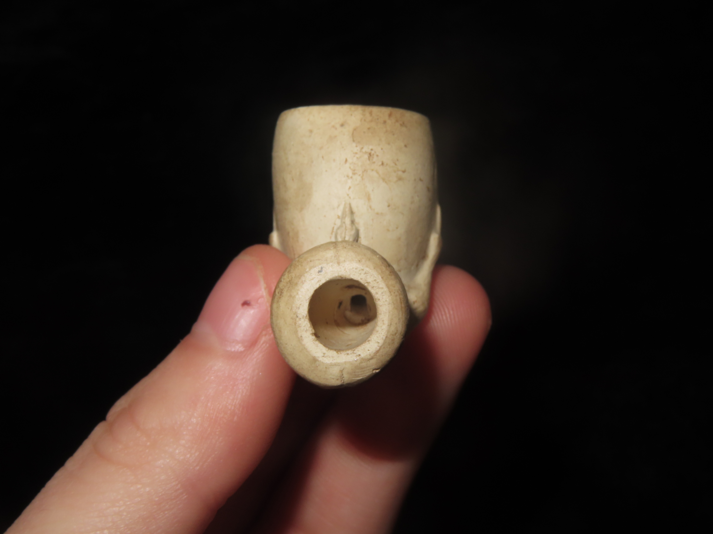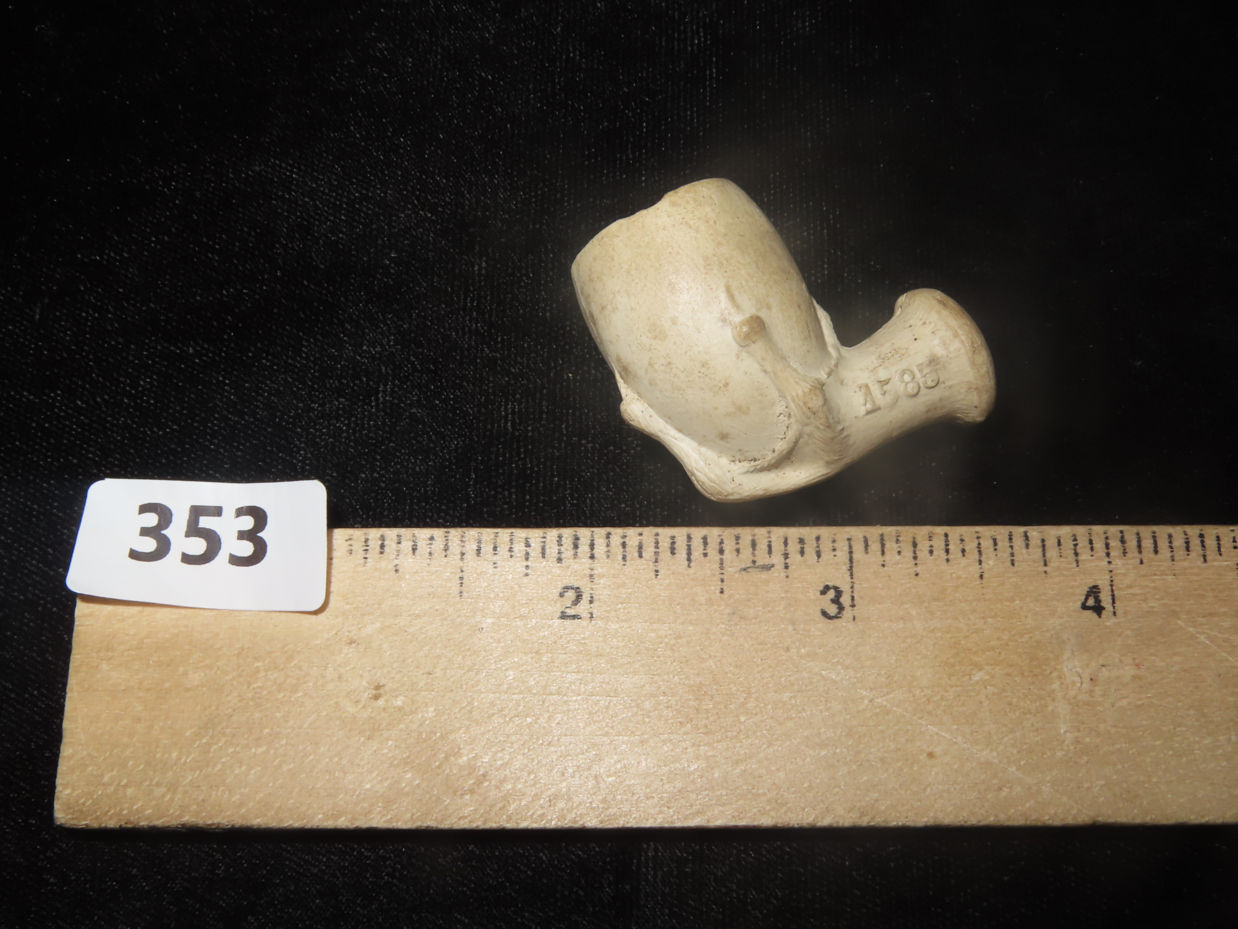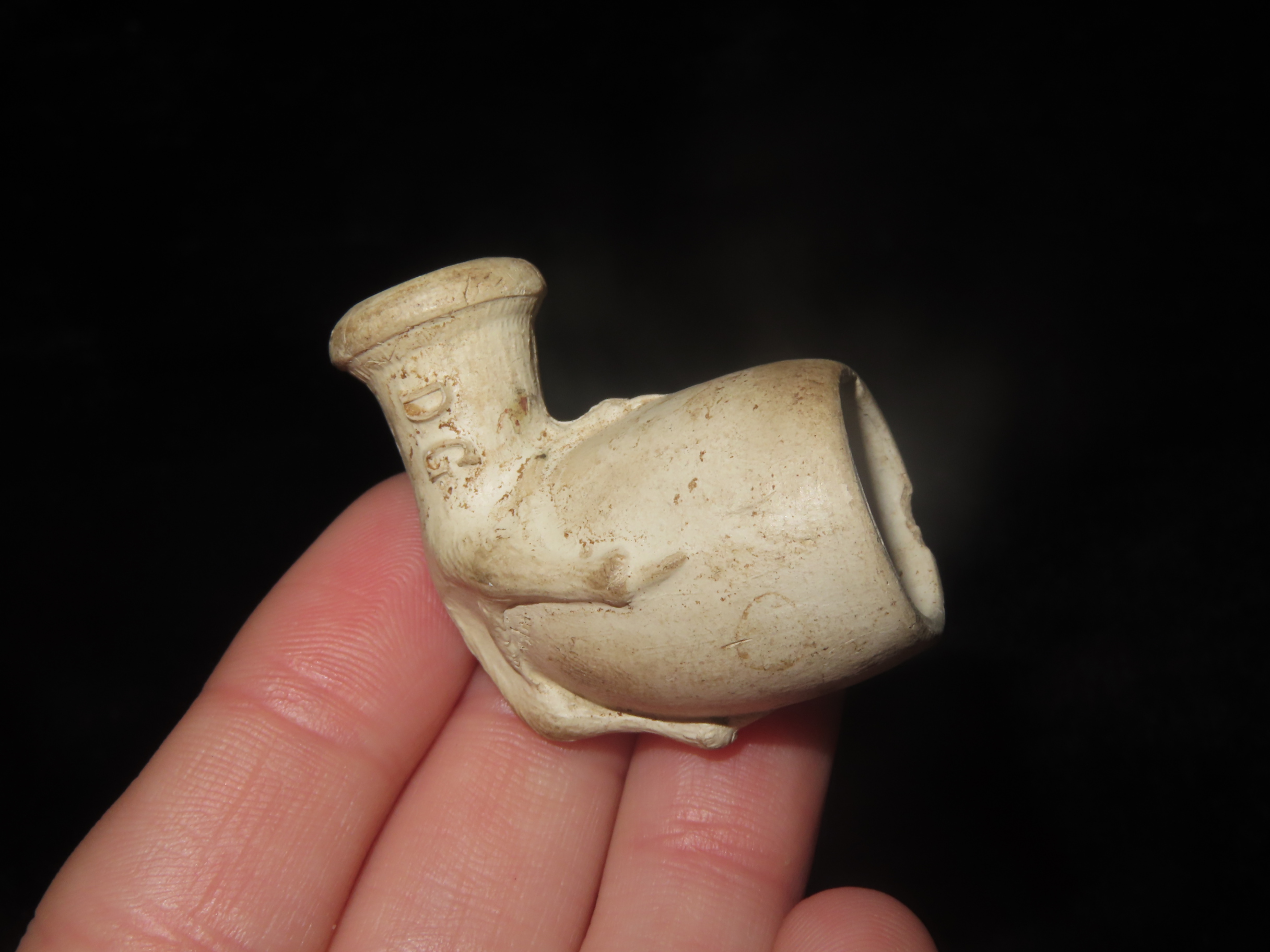 1 1/8″ x 3/4″ Early Kaolin Trade Pipe Eagle Claw Style Stamped 1585 DC