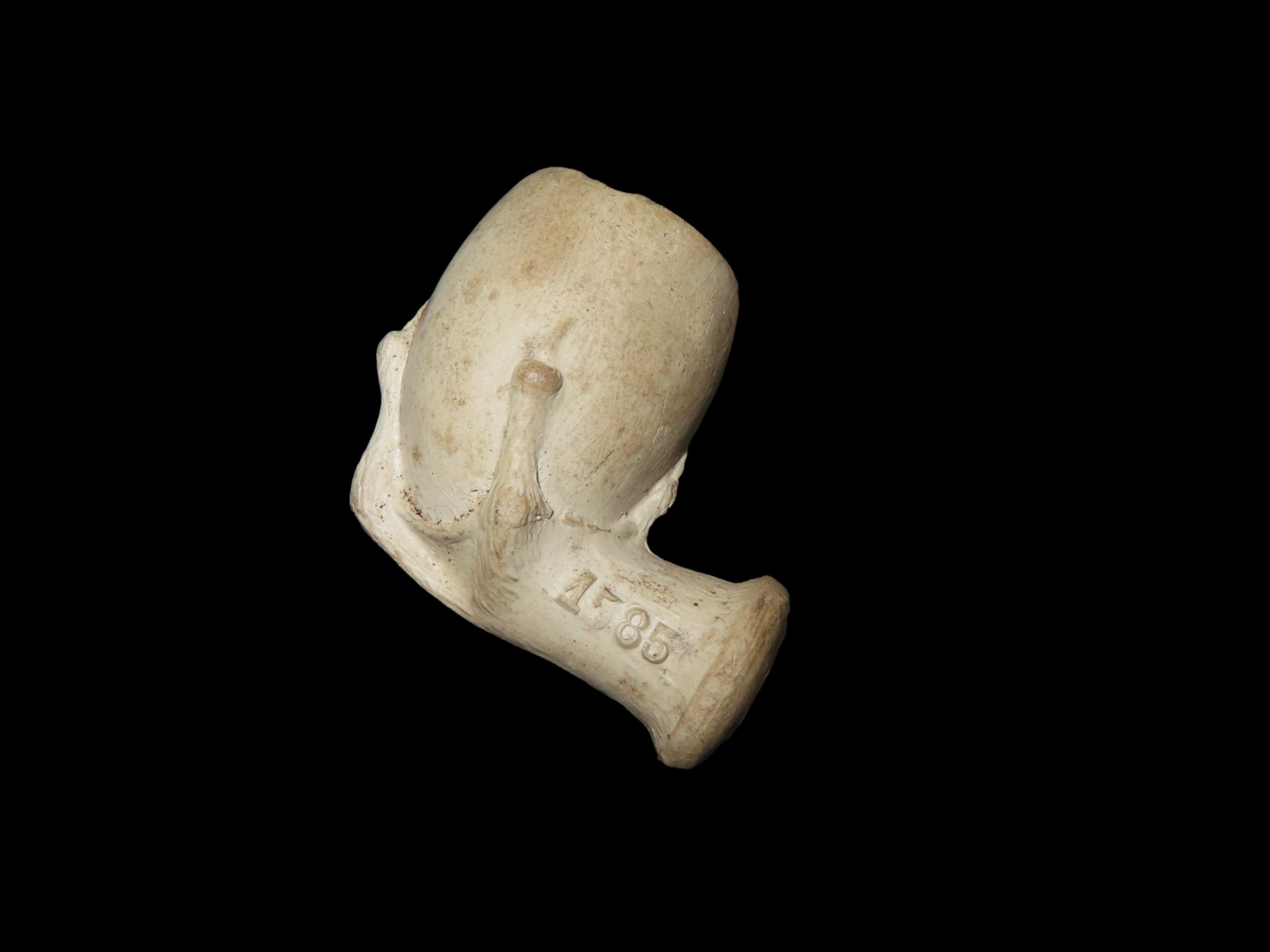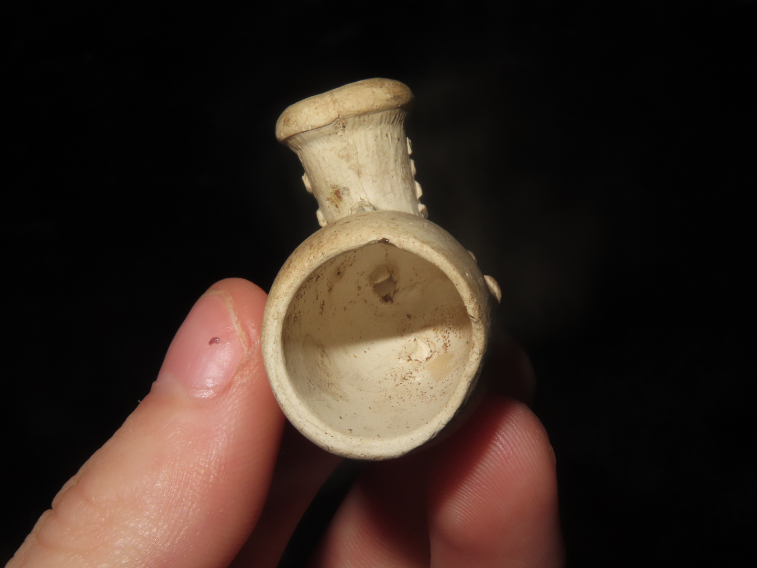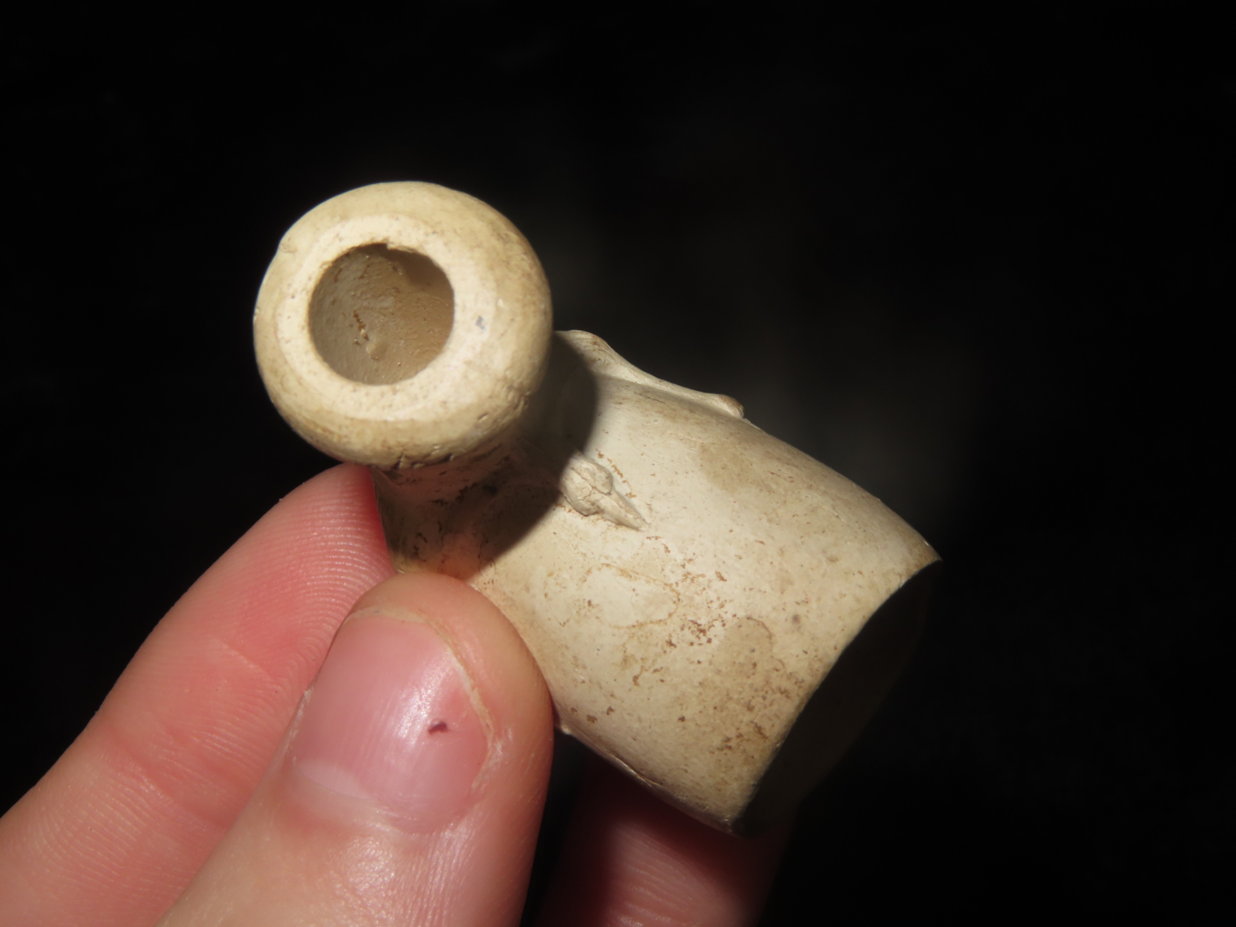 1 1/8″ x 3/4″ Early Kaolin Trade Pipe Eagle Claw Style Stamped 1585 DC