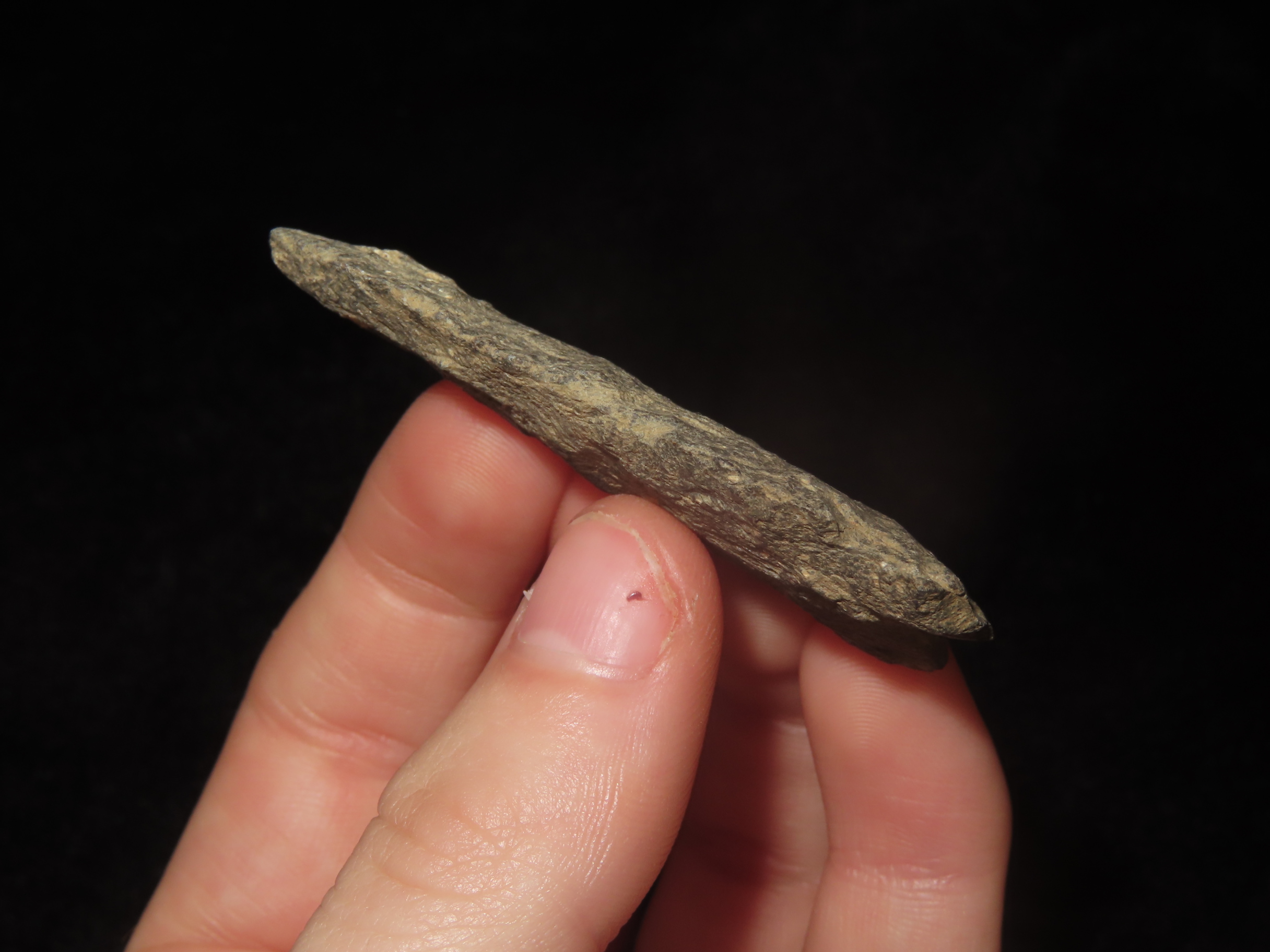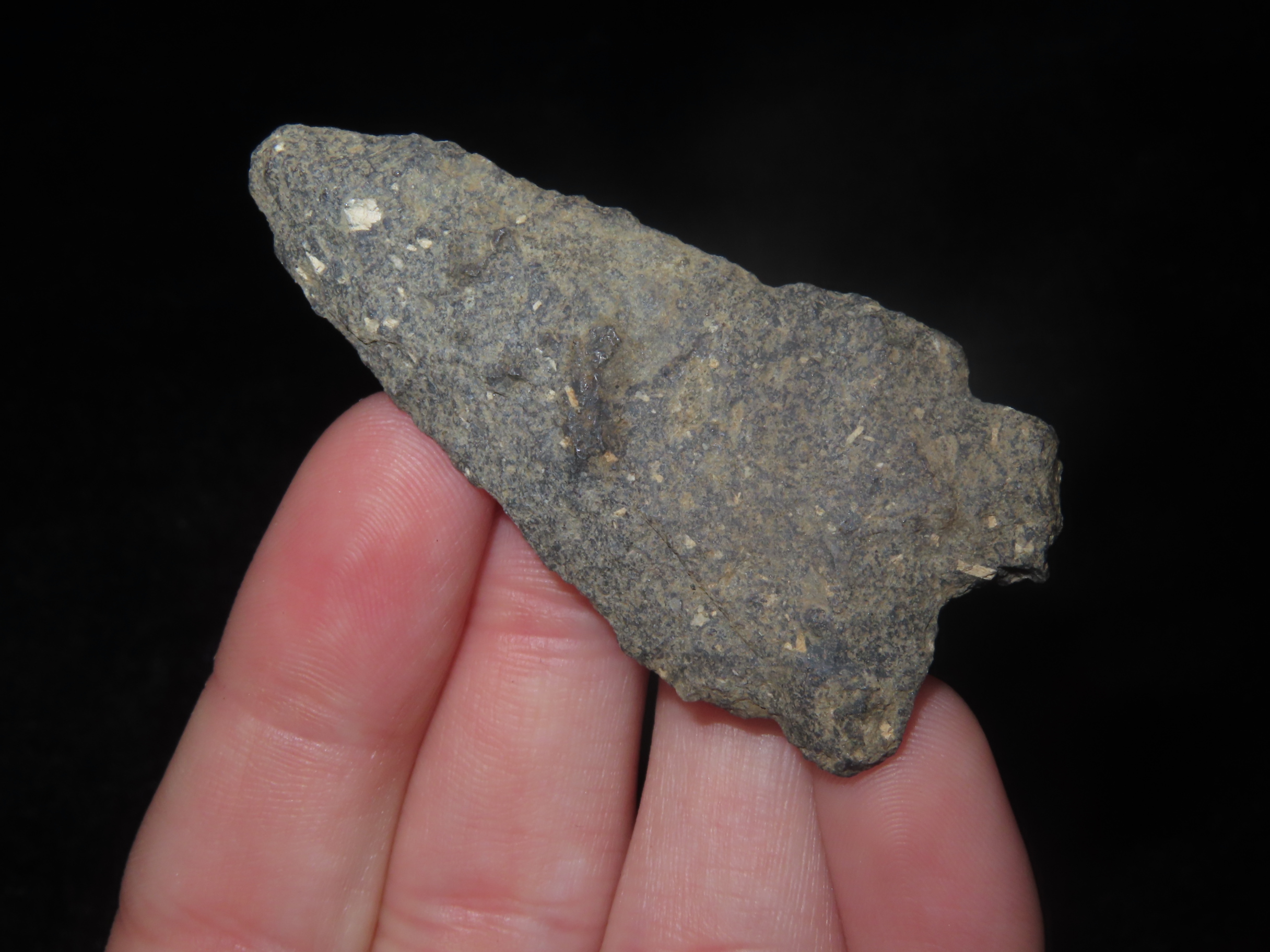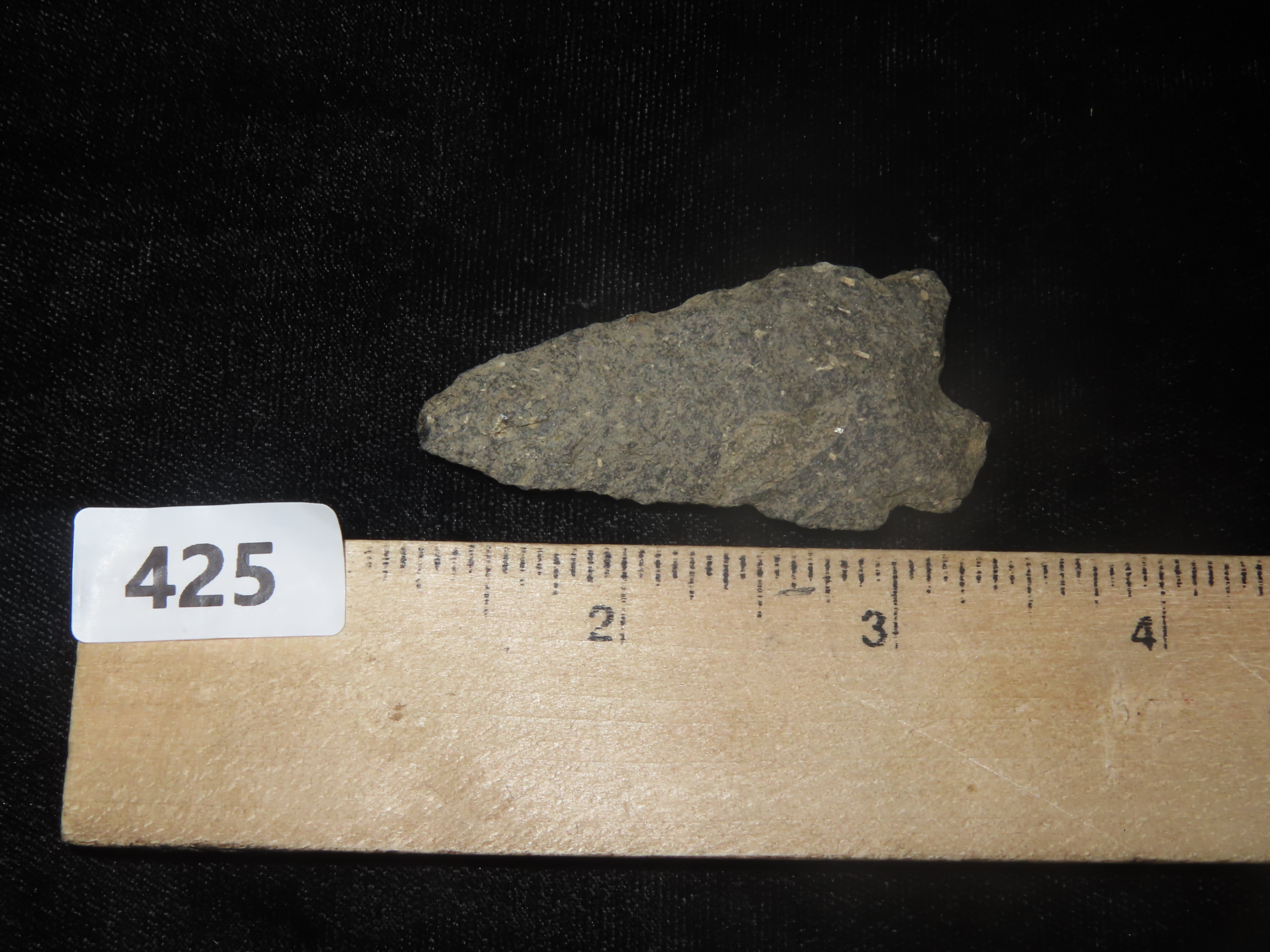 2 1/8″ x 1 1/8″ Hardaway, Late Paleo 9500-8000 BP, found at The Beaver Site on the Marvin Farm in Attleboro, Massachusetts. Ex Peter Engstrom, Ex Dr. Robbins Collections