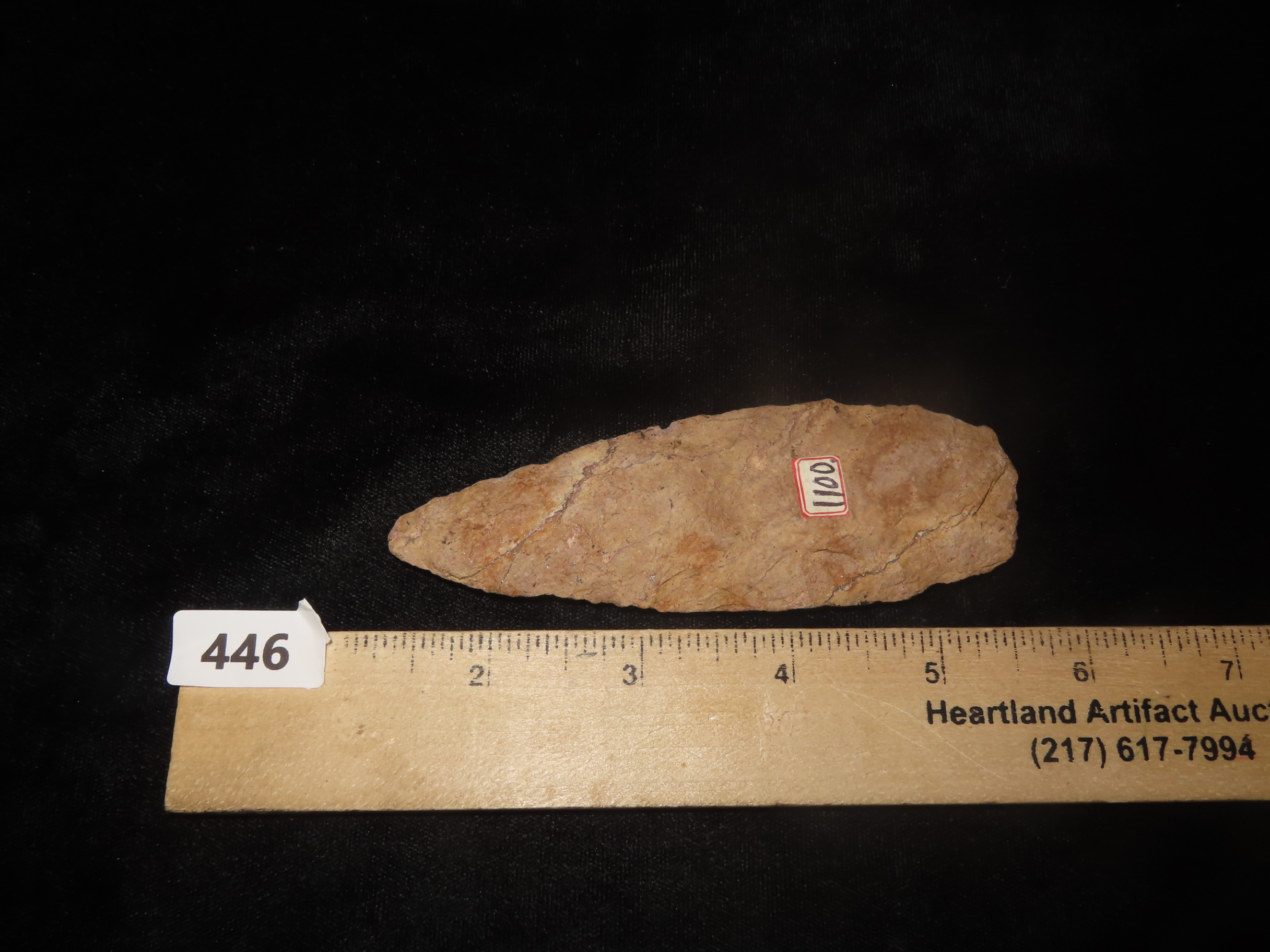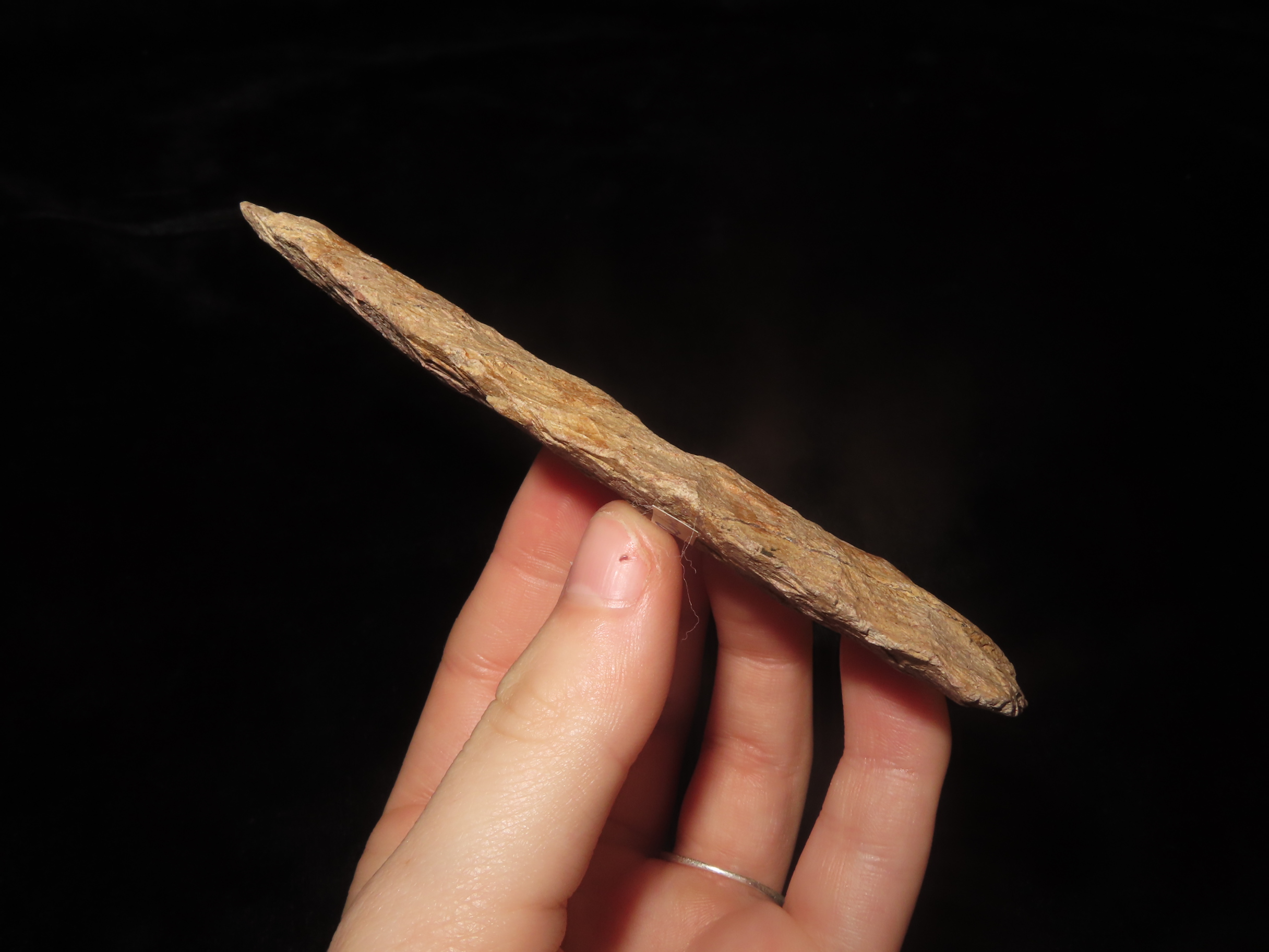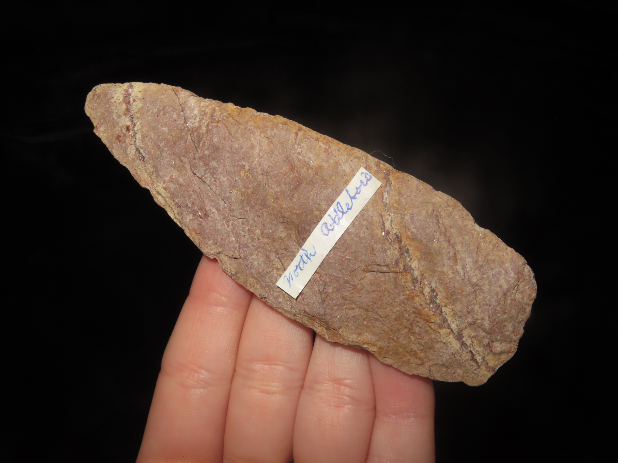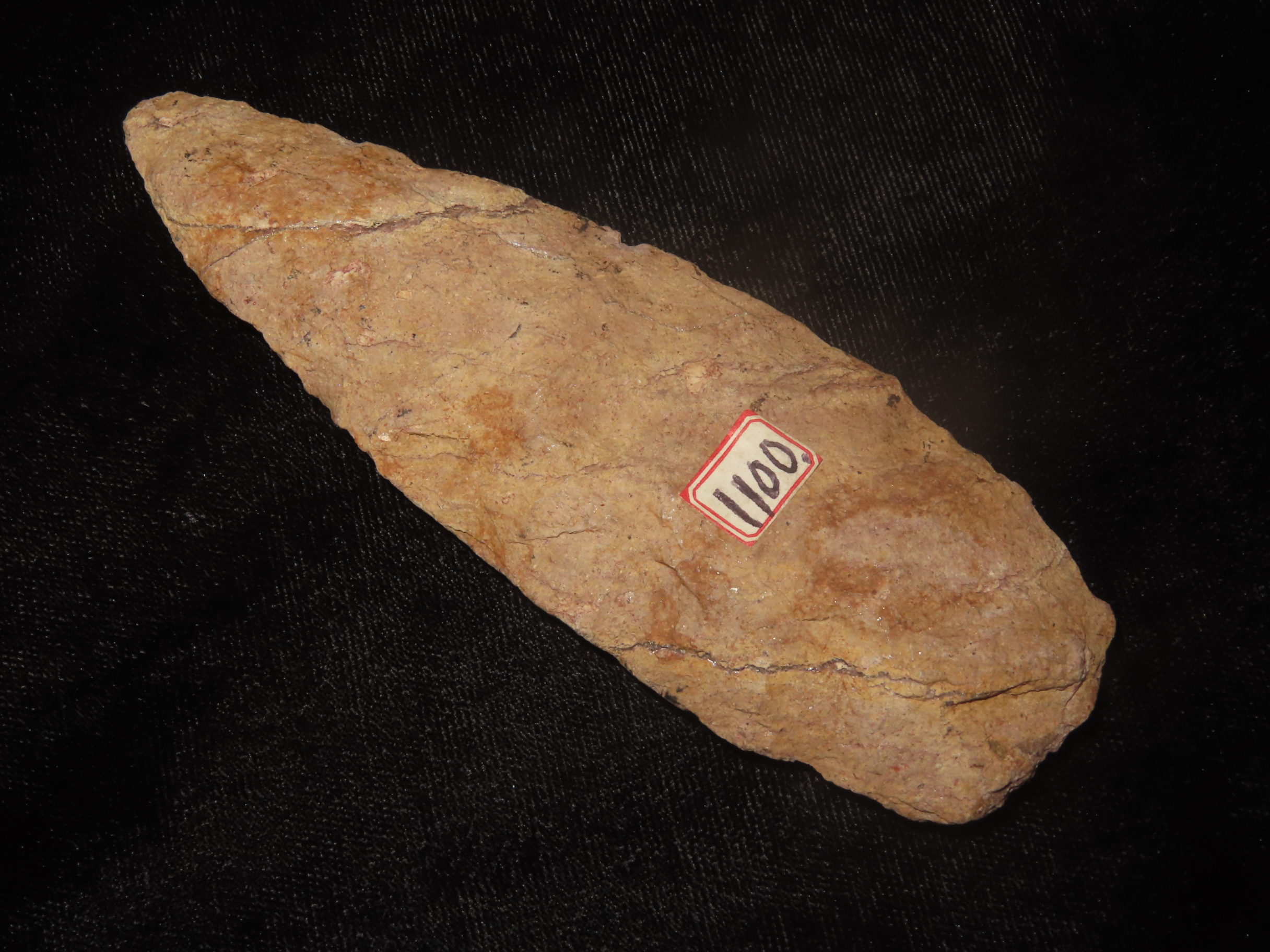 4 3/8″ x 1 1/2″ Archaic Blade, found at The Beaver Site on the Marvin Farm in Attleboro, Massachusetts. Ex Peter Engstrom, Ex Dr. Robbins Collections
