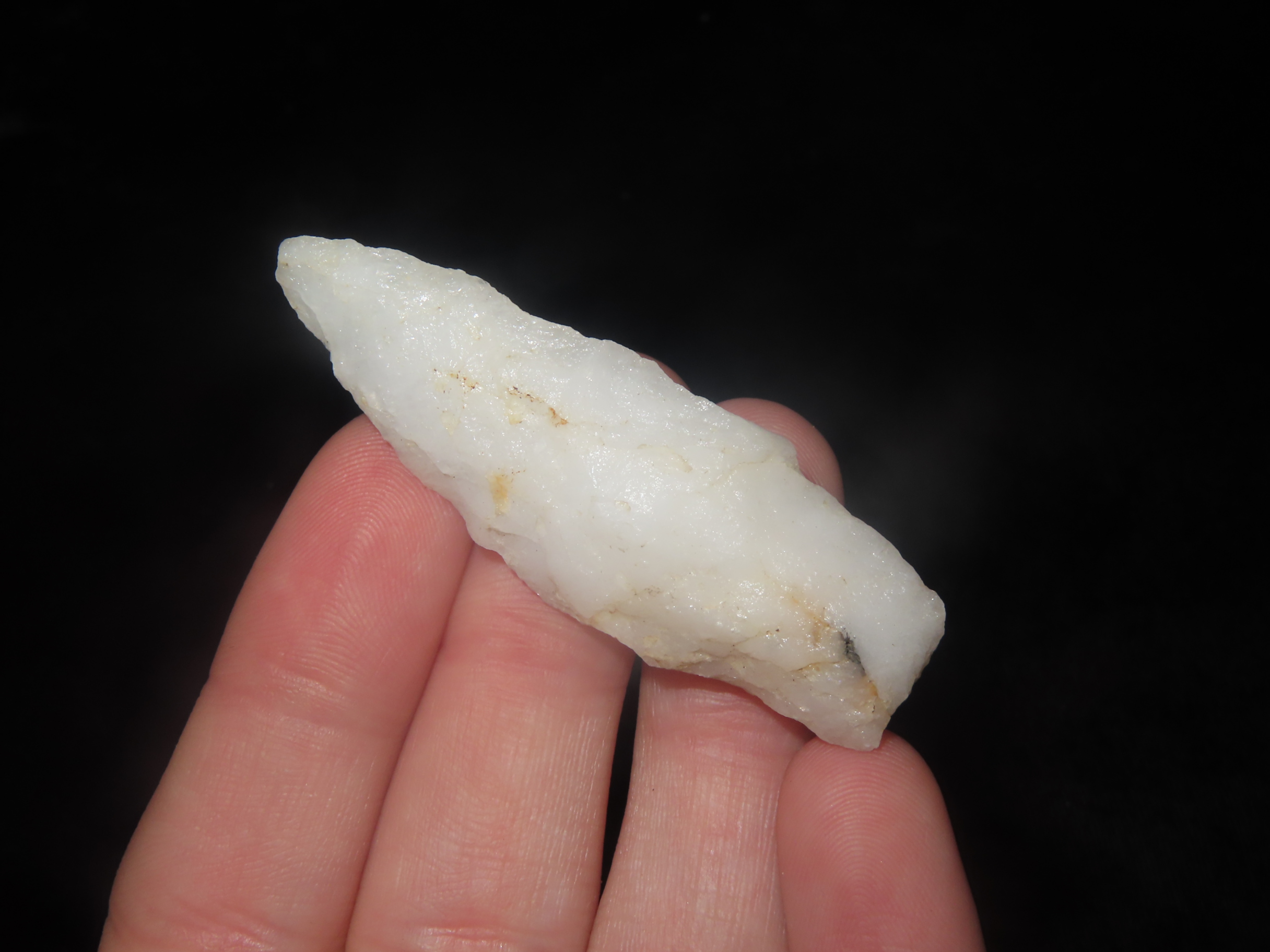2 1/16" x 7/8" Quartzite Holmes Pt, found at The Beaver Site on the Marvin Farm in Attleboro, Massachusetts. Ex Peter Engstrom, Ex Dr. Robbins Collections