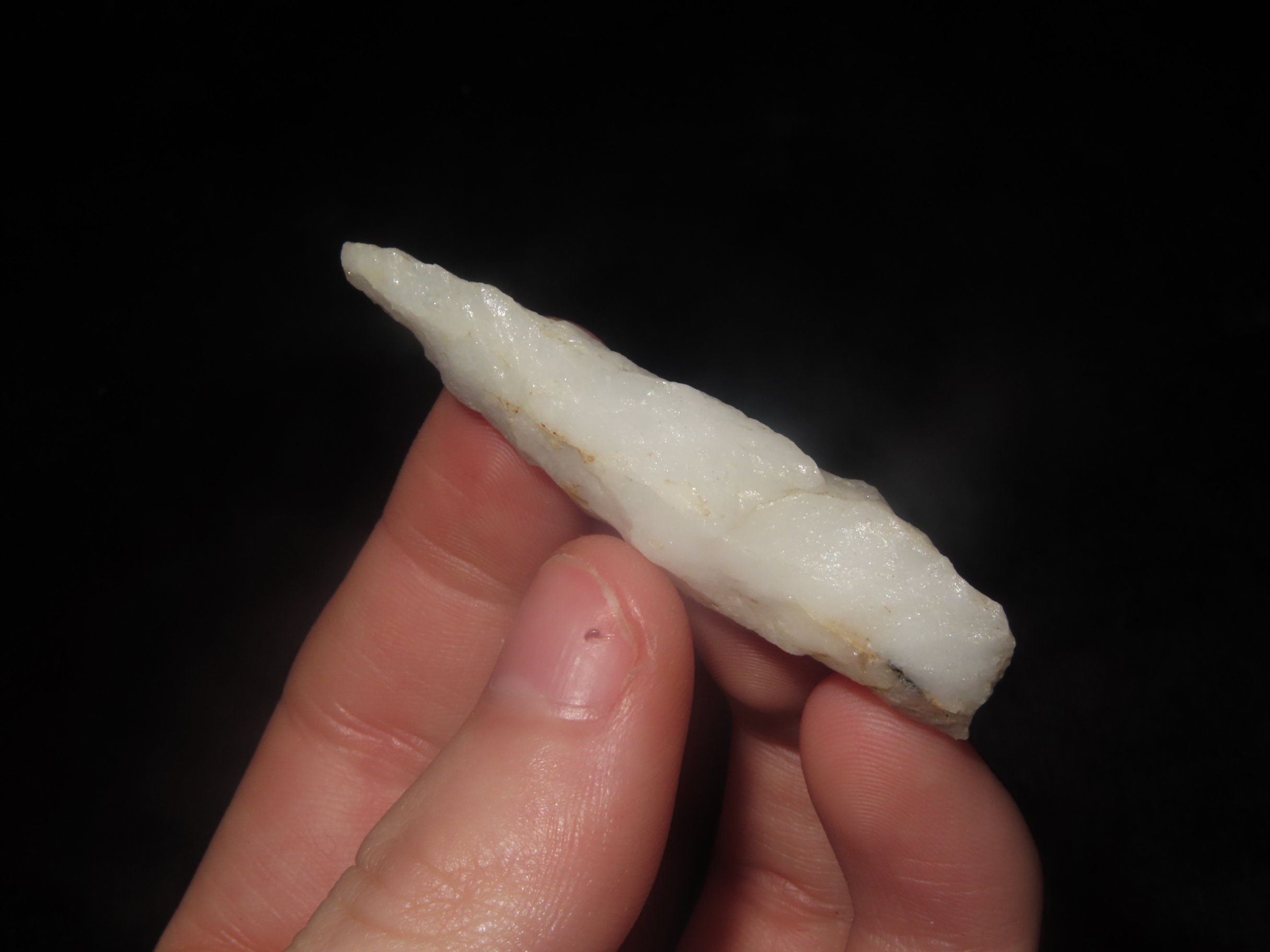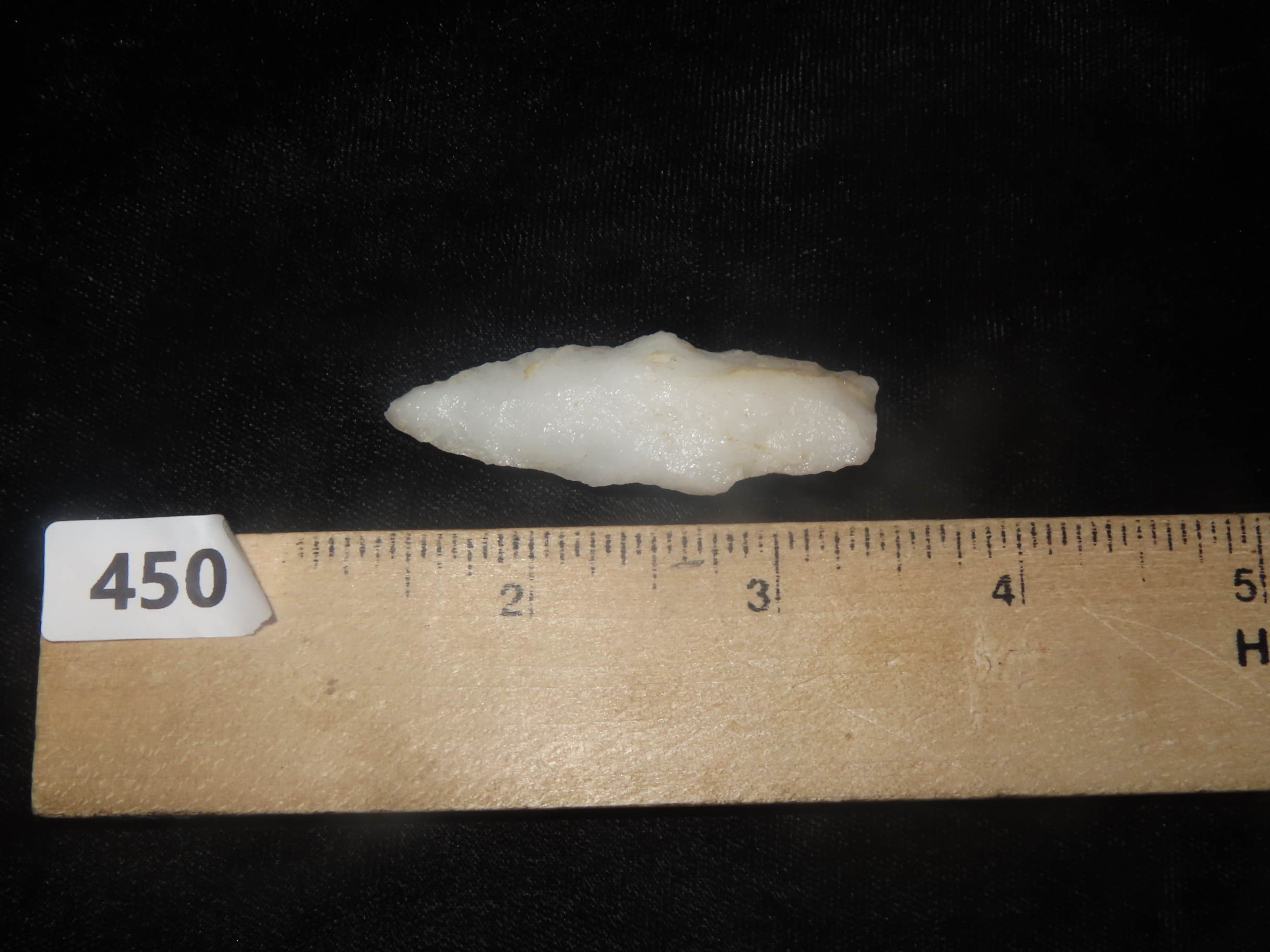 2 1/16″ x 7/8″ Quartzite Holmes Pt, found at The Beaver Site on the Marvin Farm in Attleboro, Massachusetts. Ex Peter Engstrom, Ex Dr. Robbins Collections