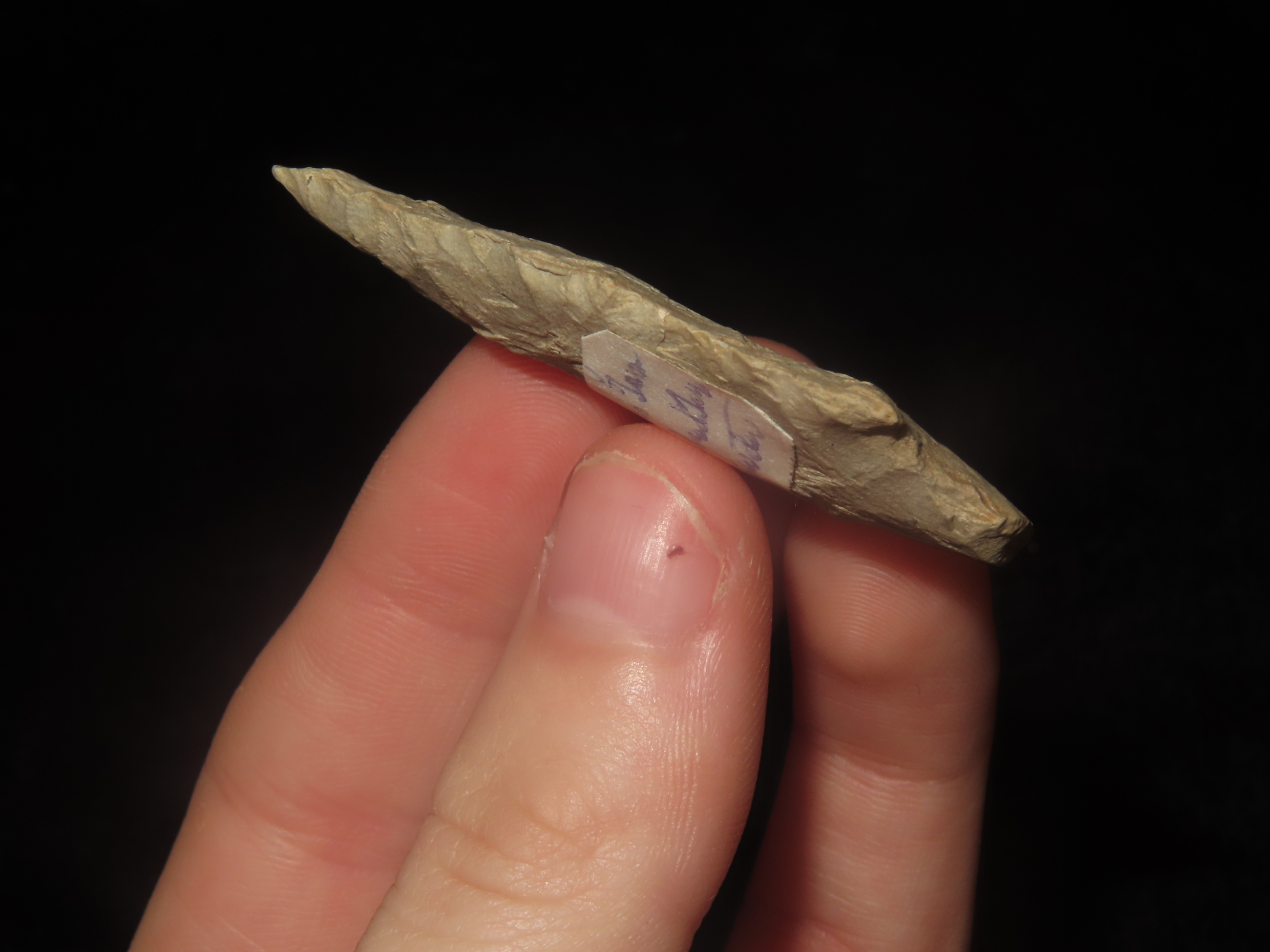2″ x 1″ Morrow Mountain, found 1920-1930 at The Beaver Site on the Marvin Farm in Attleboro, Massachusetts. Ex Peter Engstrom, Ex Dr. Robbins Collections