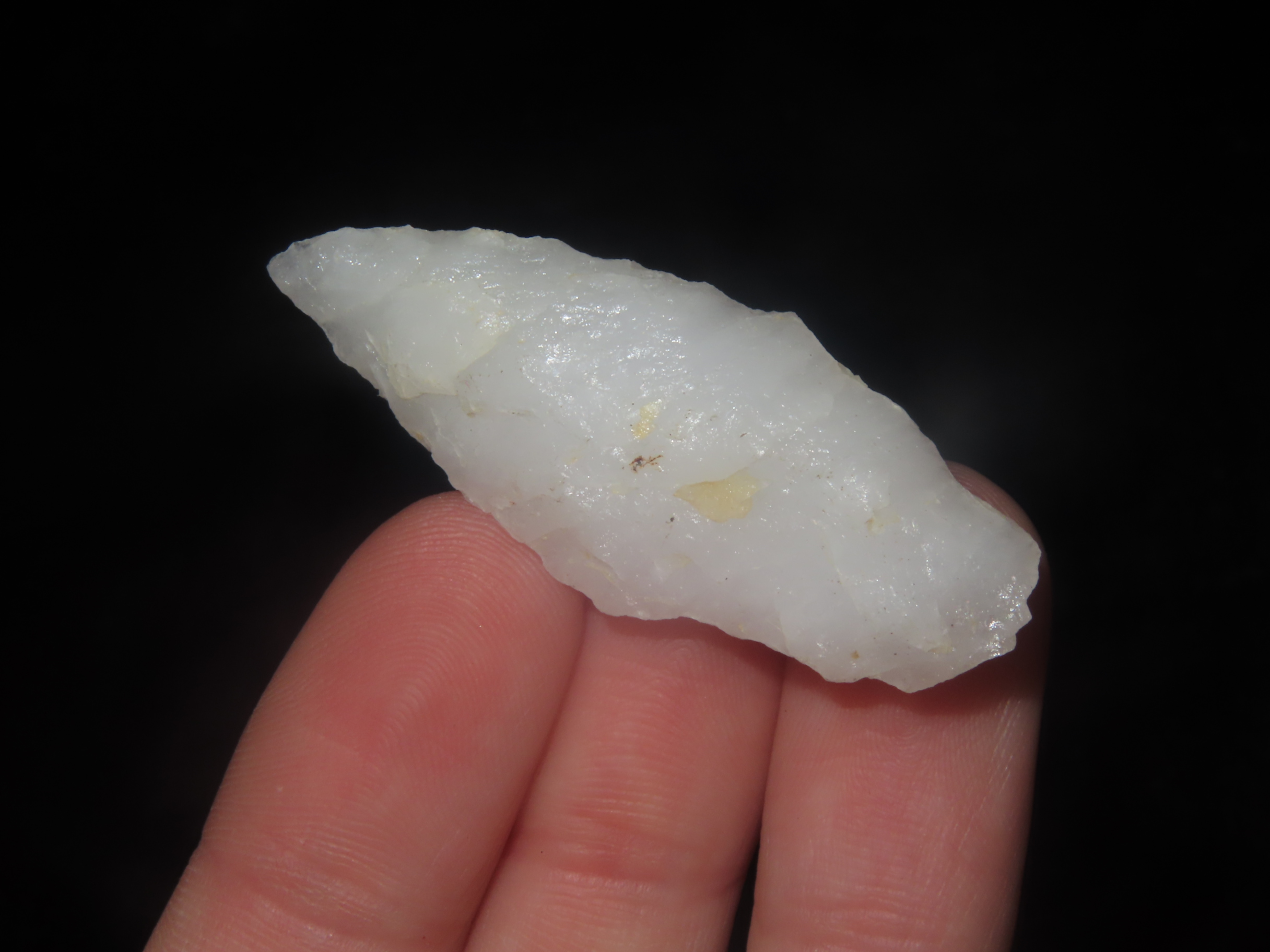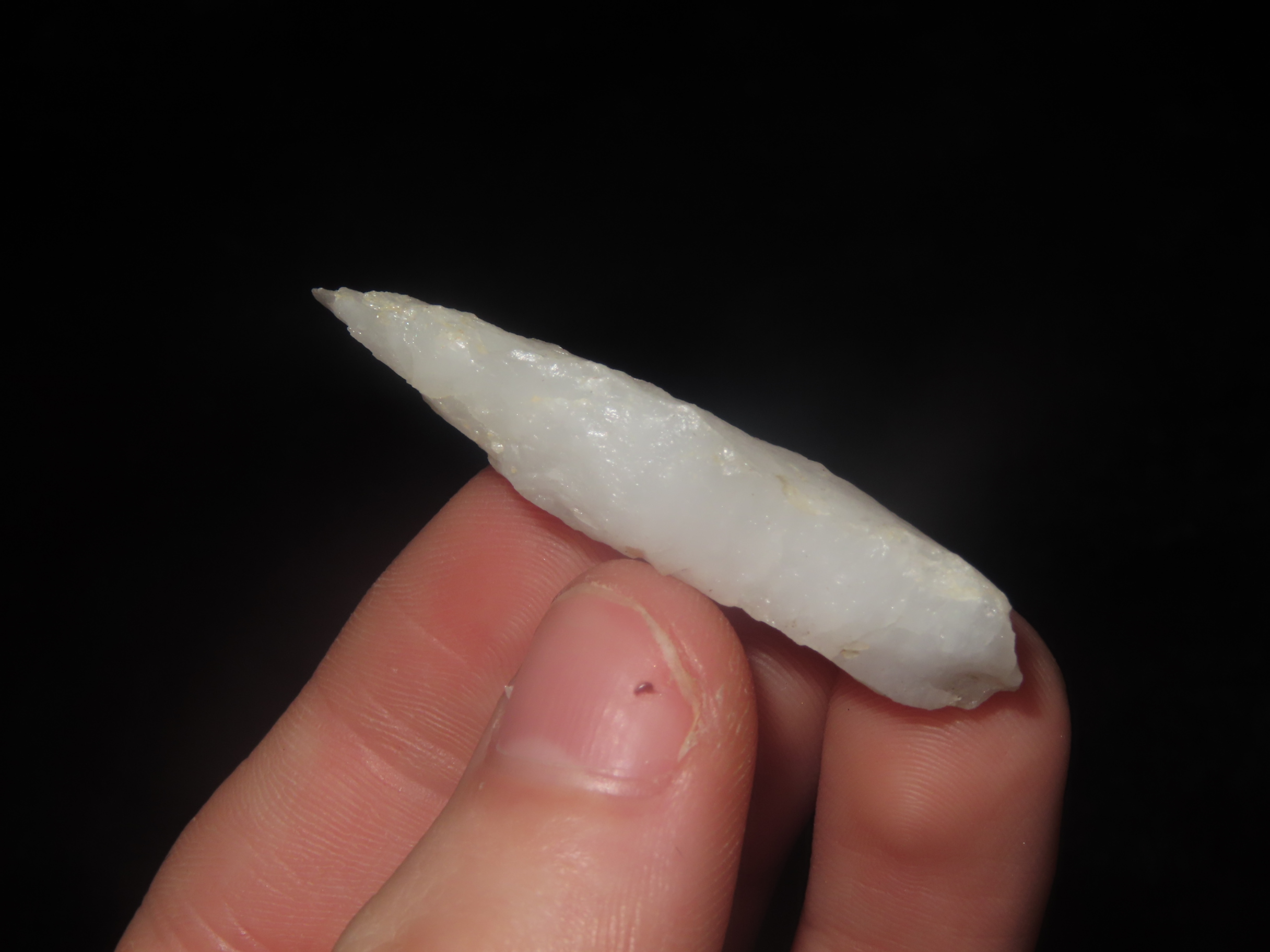 1 3/4" x 5/8" Fish Spear Crystal Quartz Pt, found at The Beaver Site on the Marvin Farm in Attleboro, Massachusetts. Ex Peter Engstrom, Ex Dr. Robbins Collections
