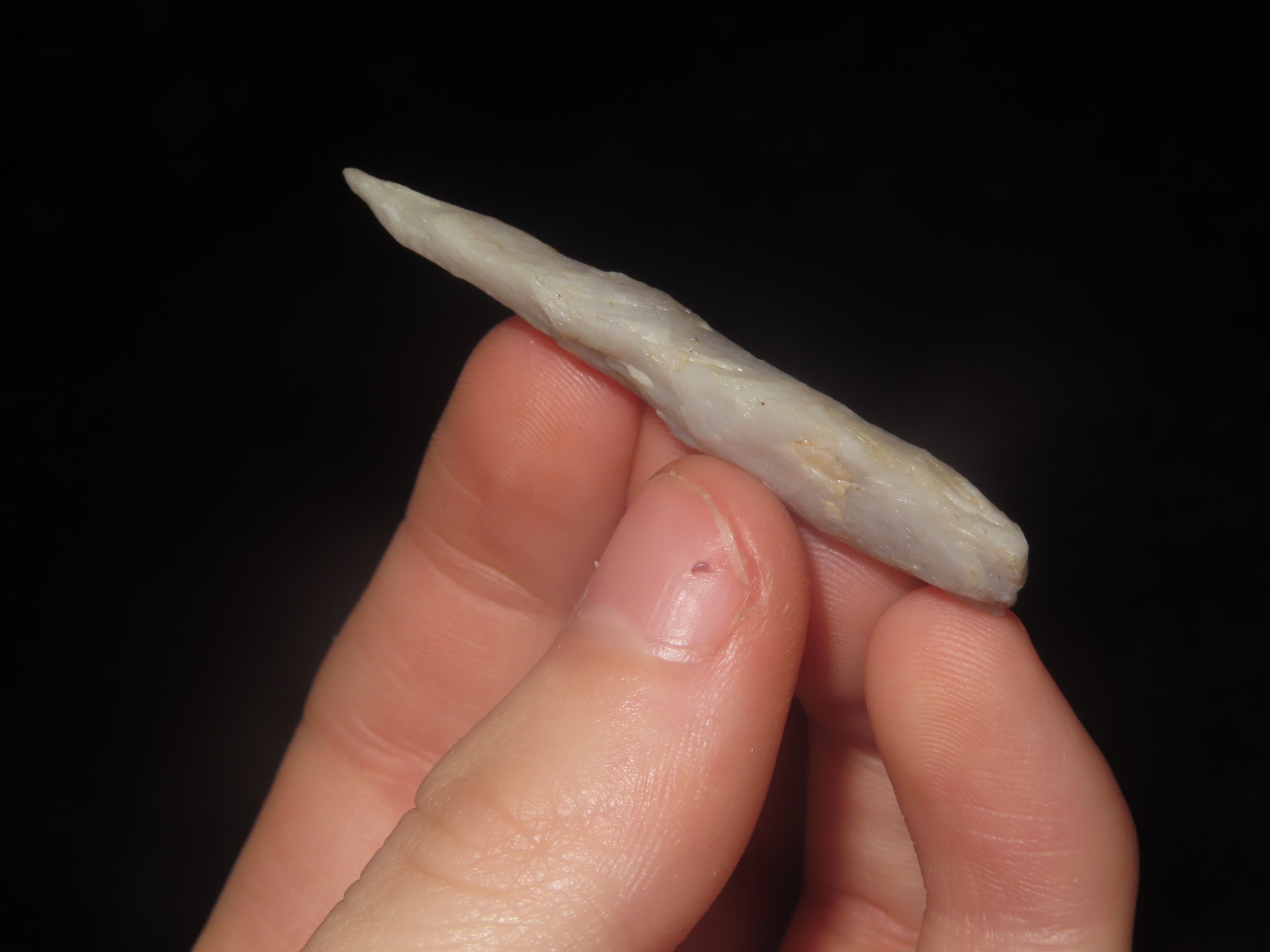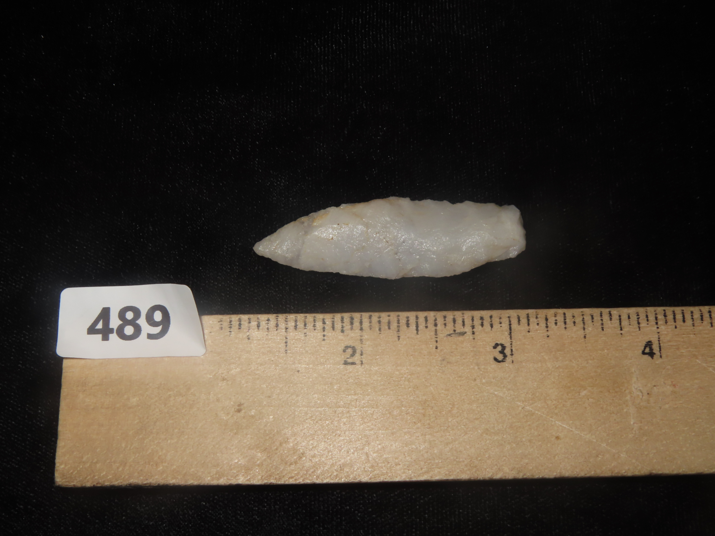 1 7/8" x 1/2" Quartzite Holmes Pt, found at The Beaver Site on the Marvin Farm in Attleboro, Massachusetts. Ex Peter Engstrom, Ex Dr. Robbins Collections