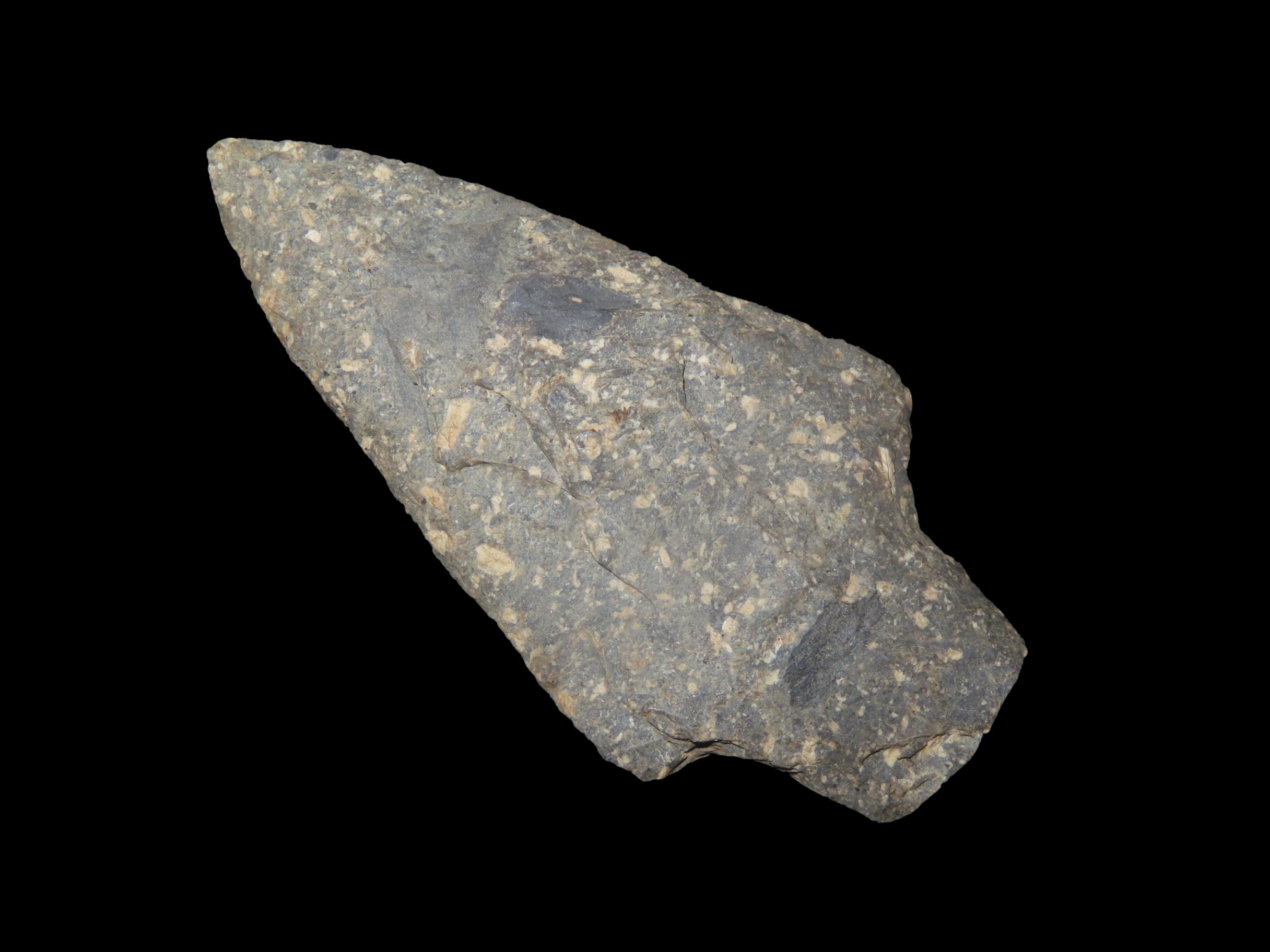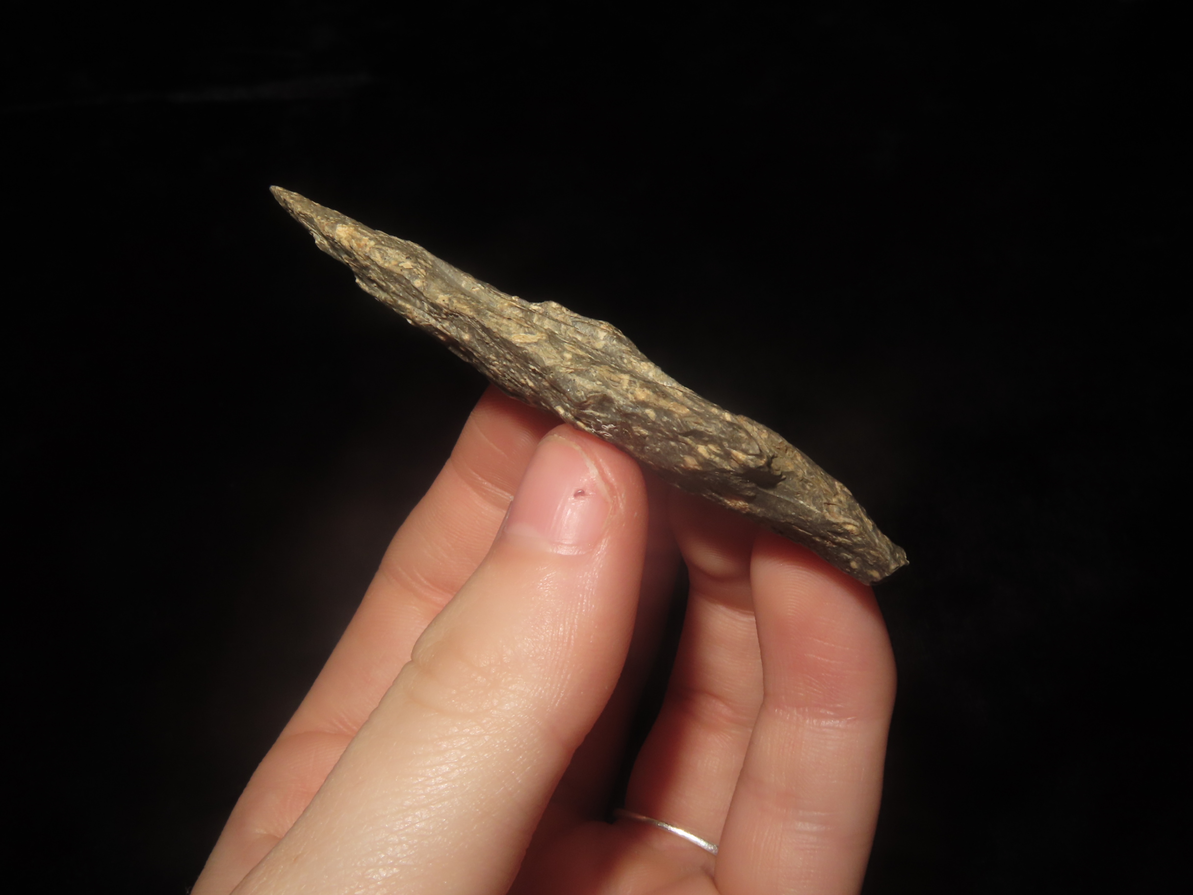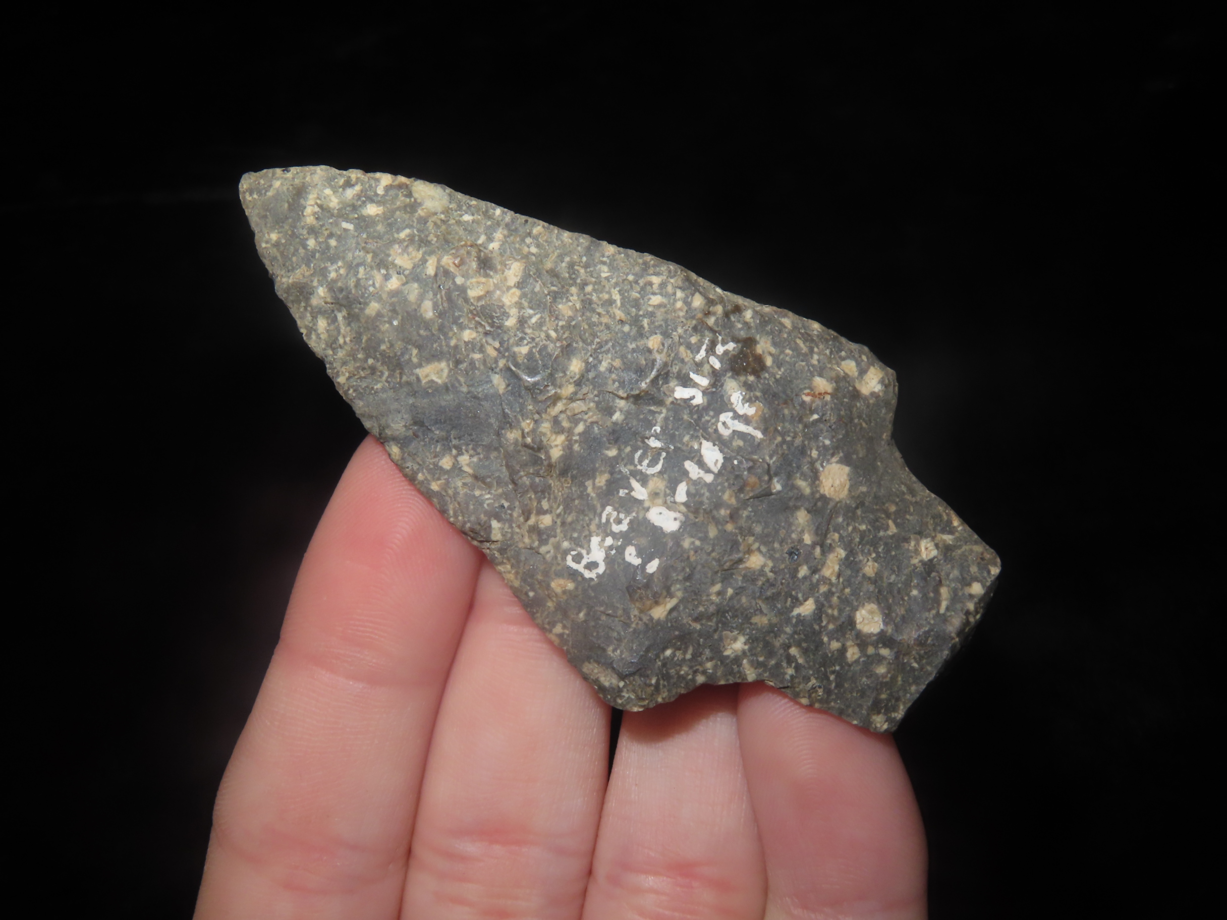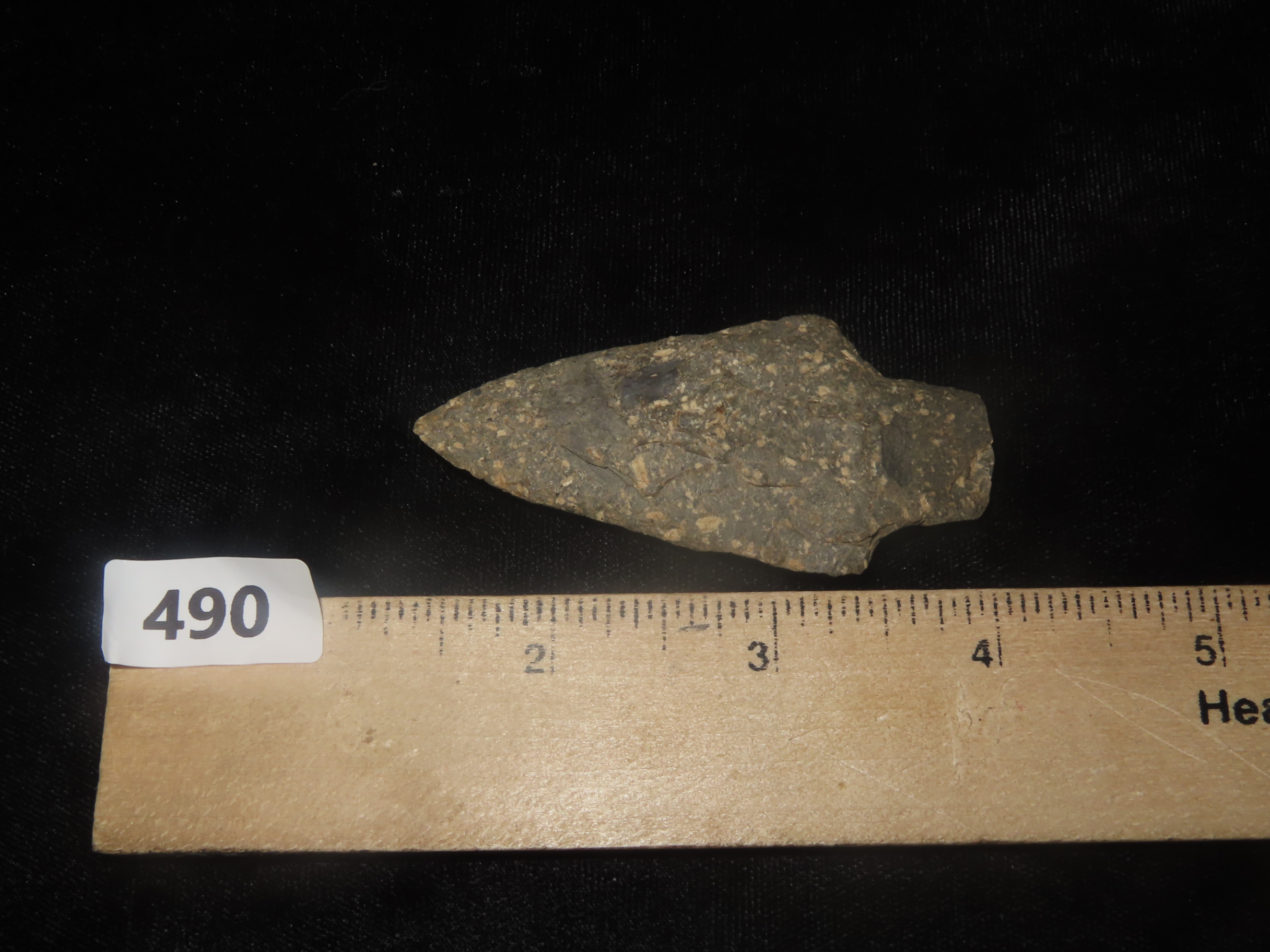 2 3/4″ x 1 3/8″ Morrow Mountain Straight Base, found at The Beaver Site on the Marvin Farm in Attleboro, Massachusetts. Ex Peter Engstrom, Ex Dr. Robbins Collections
