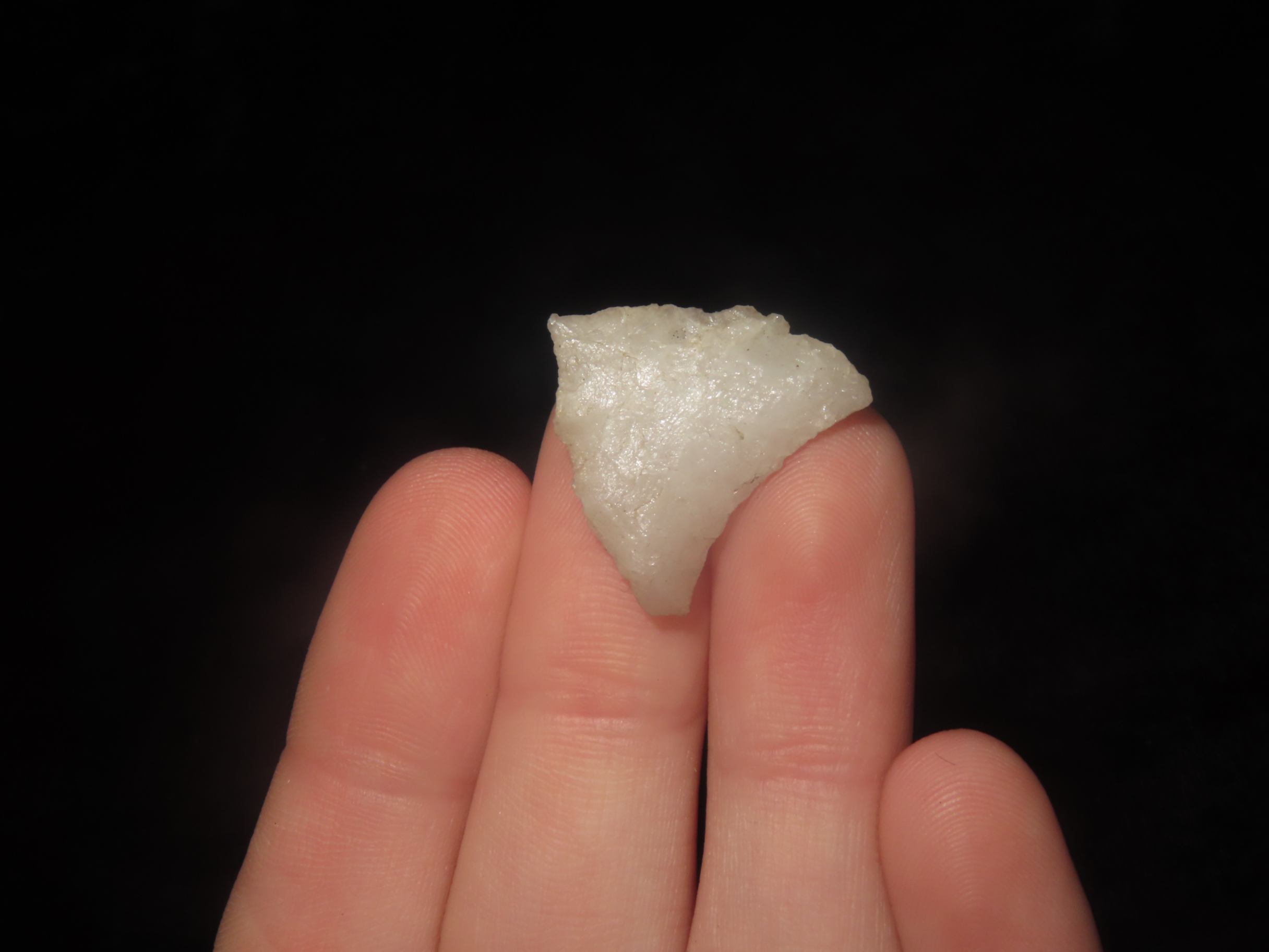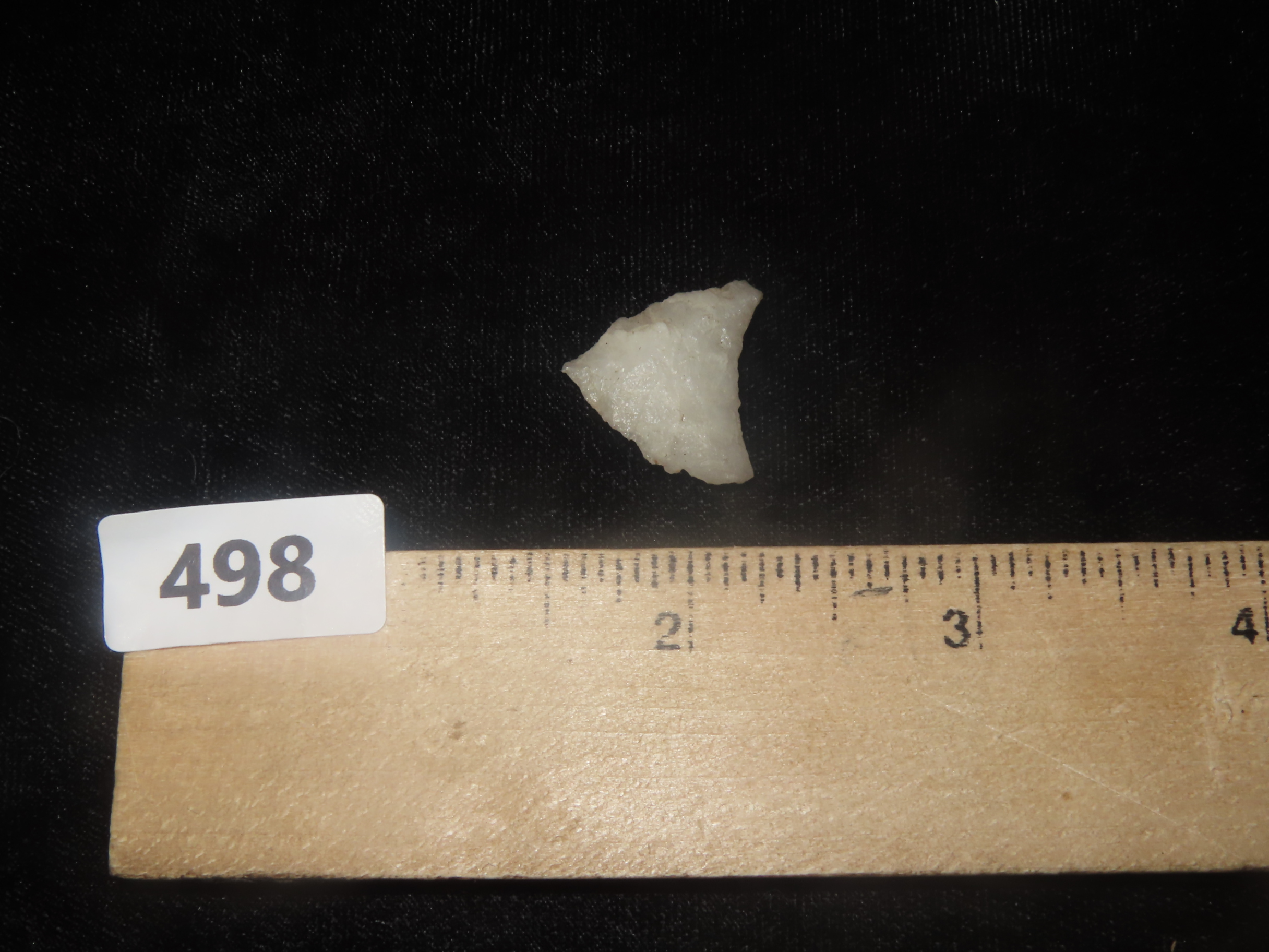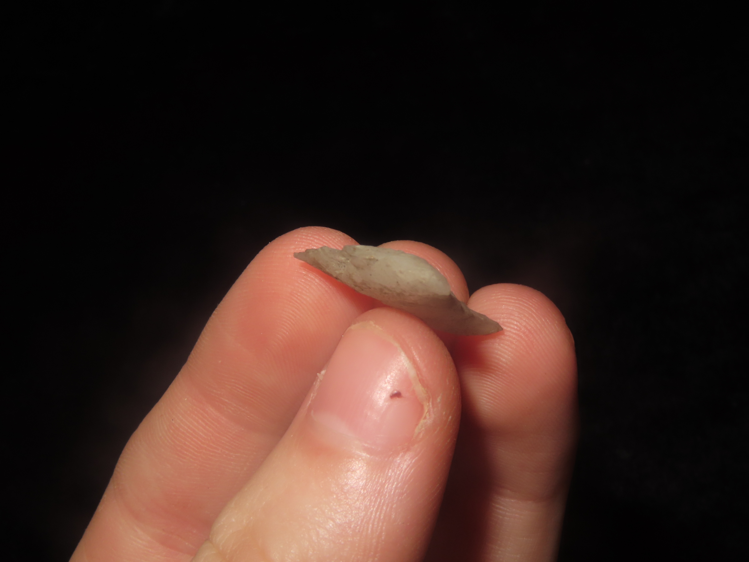 3/4″ x 3/4″ Late Paleo Crystal Quartz Alamance/Clovis, 12,000-10,000 BP, found at The Beaver Site on the Marvin Farm in Attleboro, Massachusetts. Ex Peter Engstrom, Ex Dr. Robbins Collections