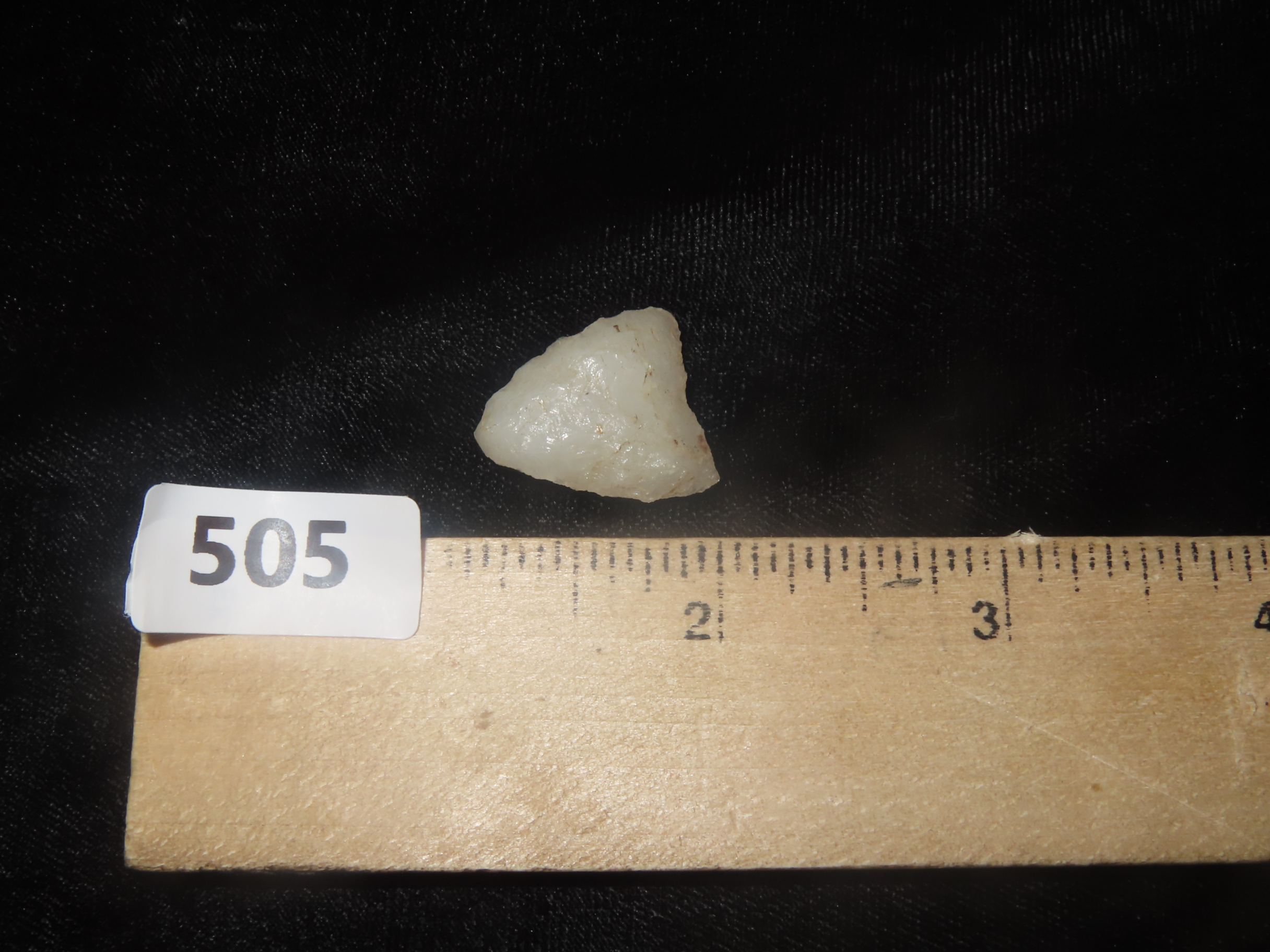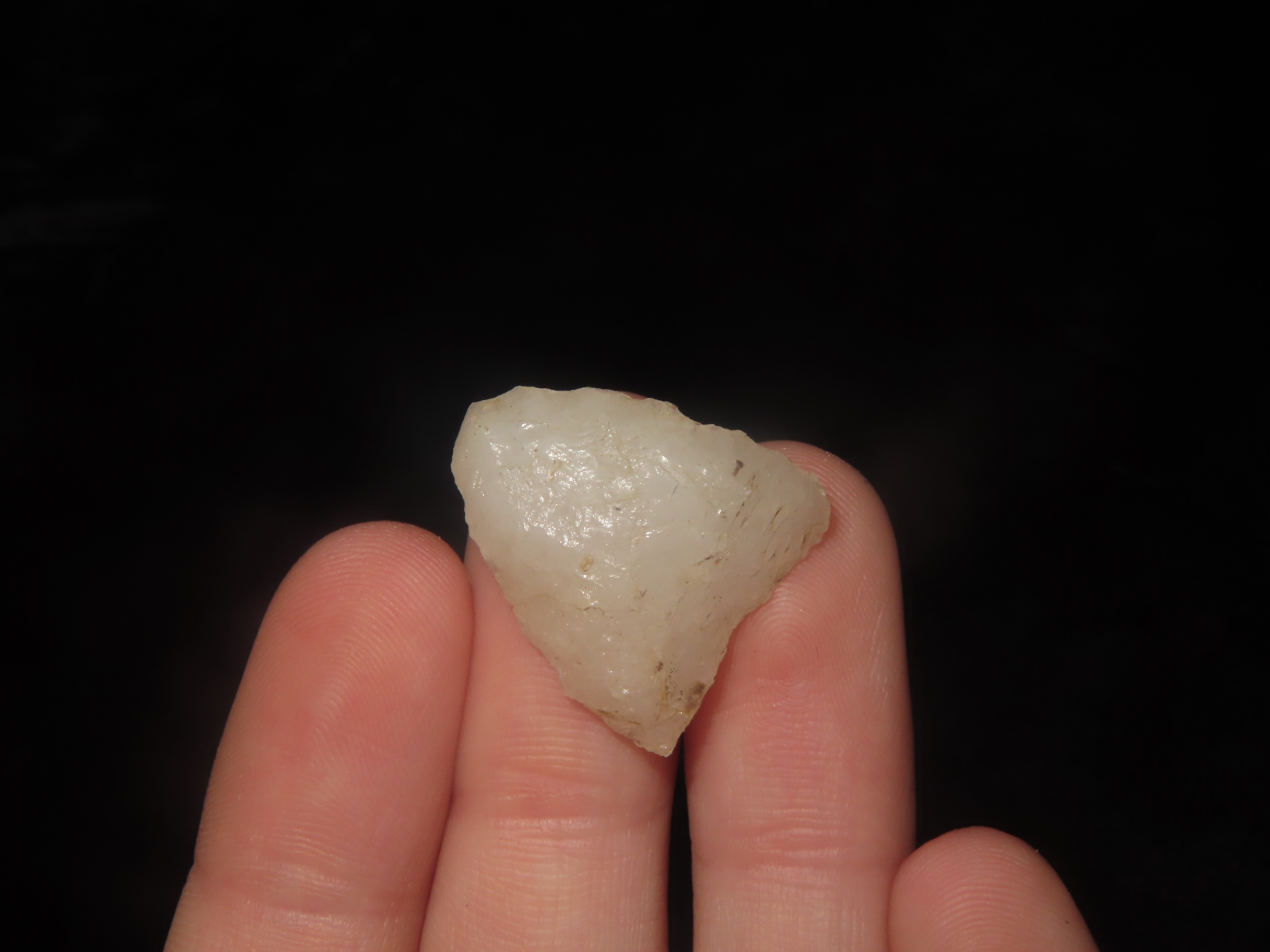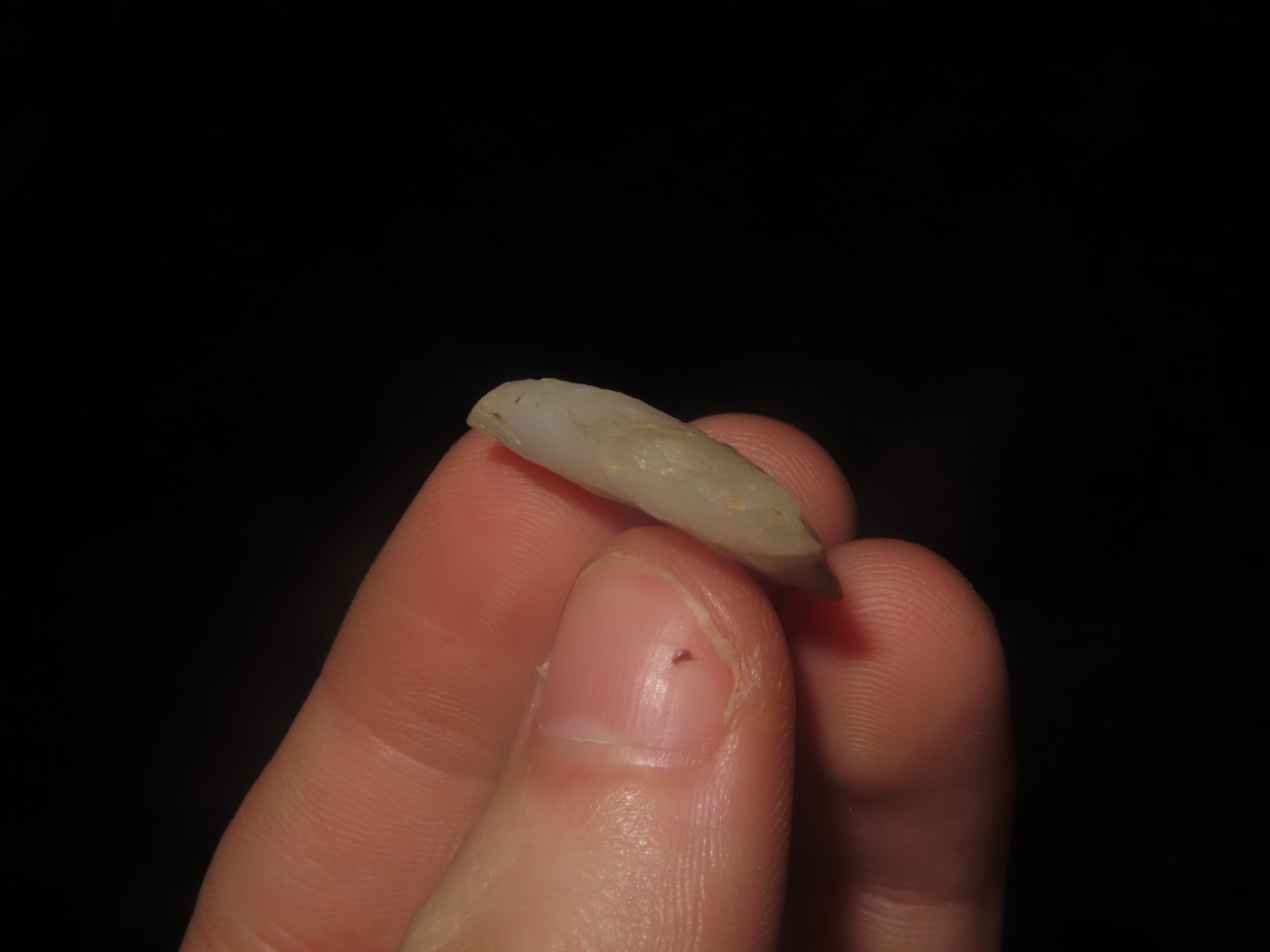 7/8″ x 11/16″ Late Paleo Crystal Quartz Alamance/Clovis, 12,000-10,000 BP, found at The Beaver Site on the Marvin Farm in Attleboro, Massachusetts. Ex Peter Engstrom, Ex Dr. Robbins Collections