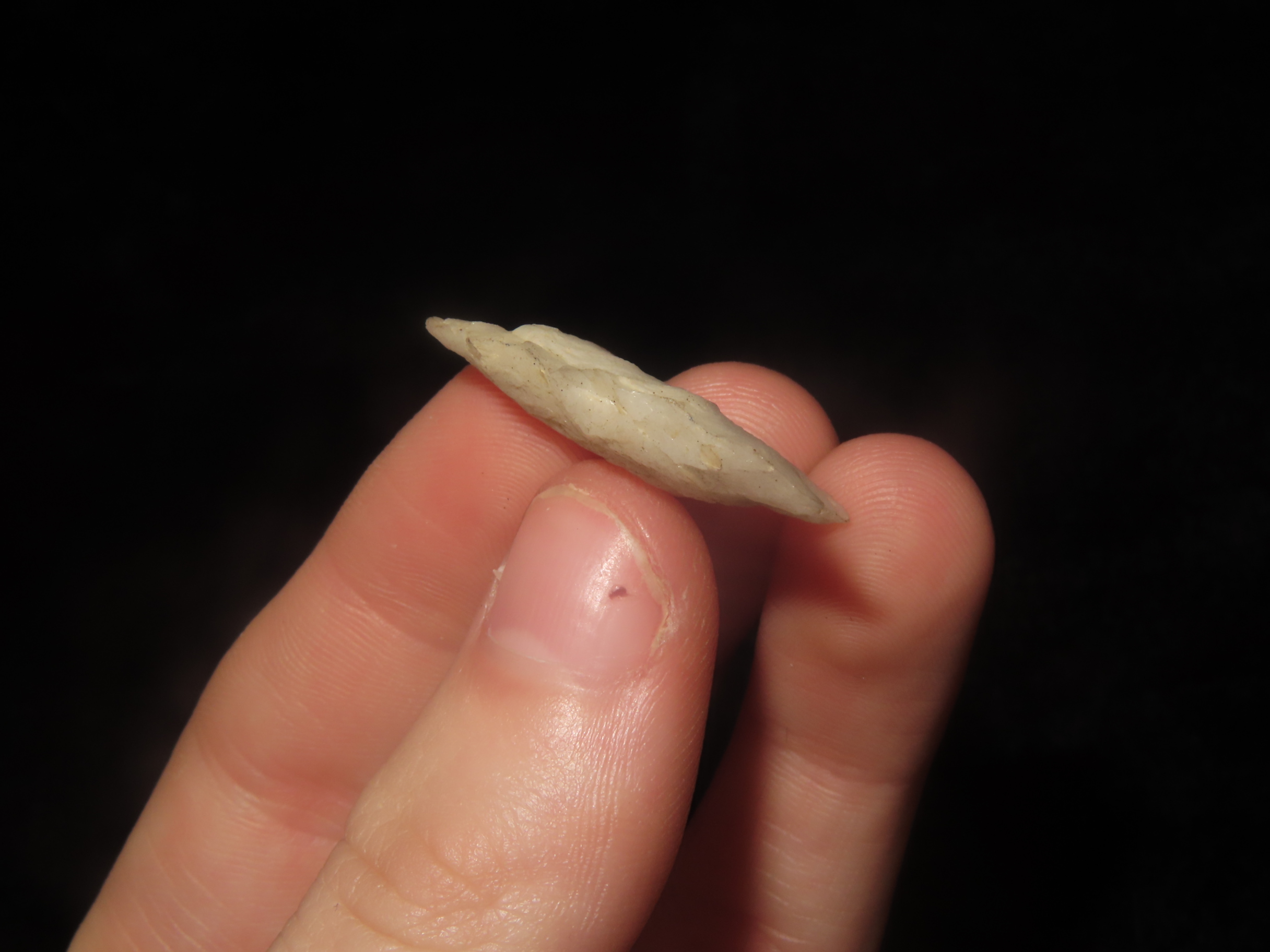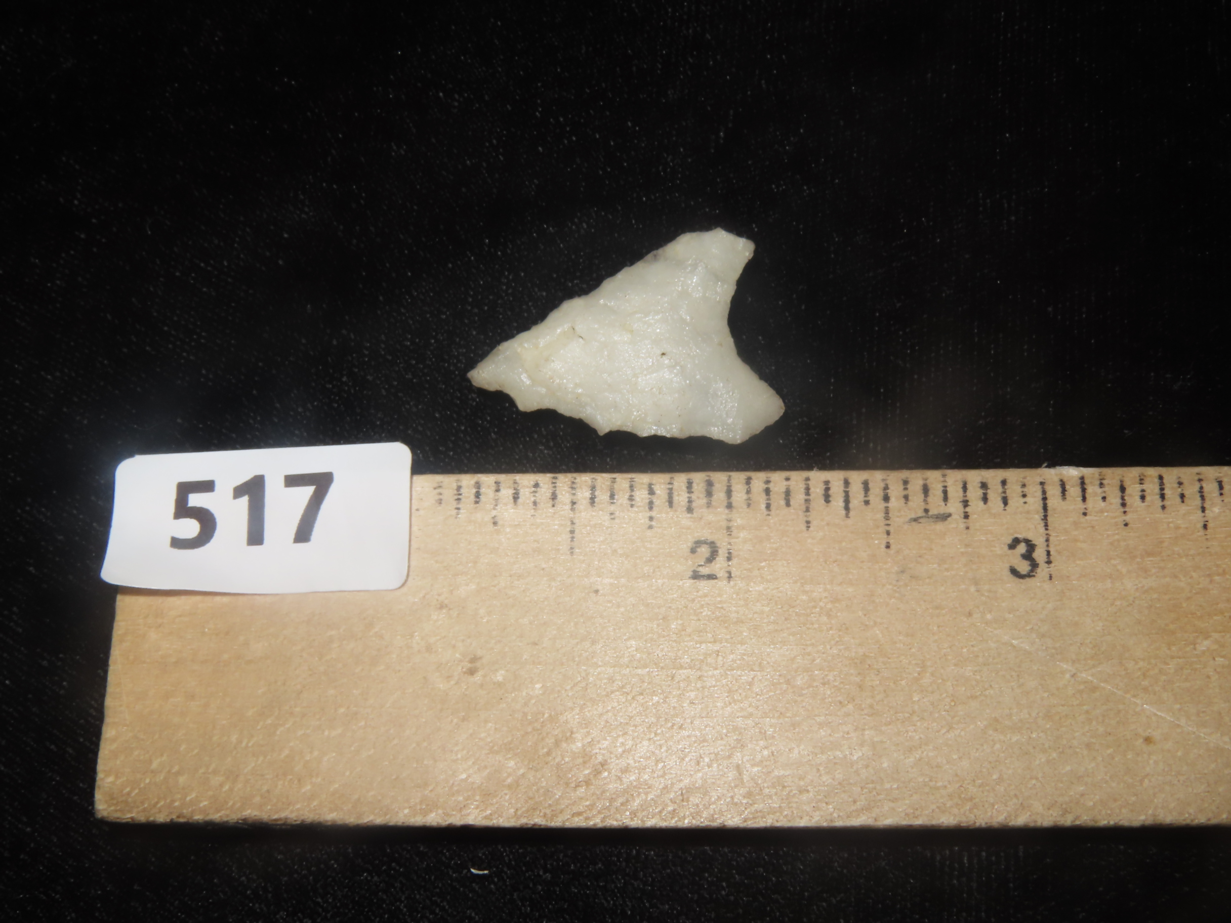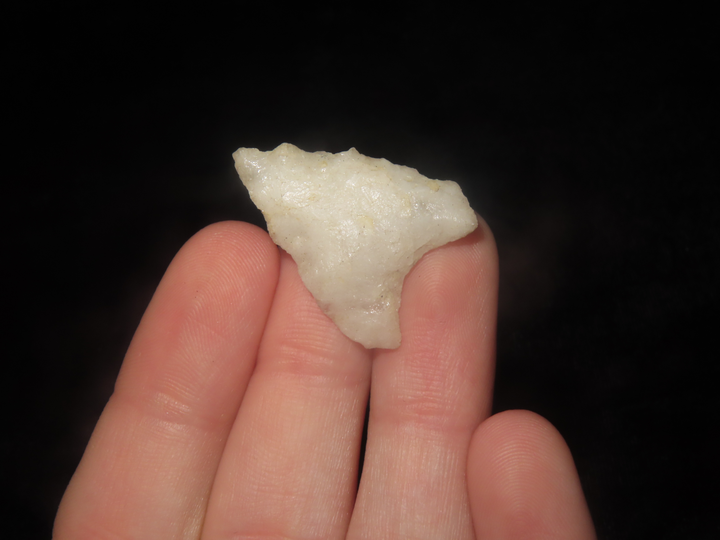 1 1/16" x 3/4" Late Paleo Crystal Quartz Alamance/Clovis, 12,000-10,000 BP, found at The Beaver Site on the Marvin Farm in Attleboro, Massachusetts. Ex Peter Engstrom, Ex Dr. Robbins Collections