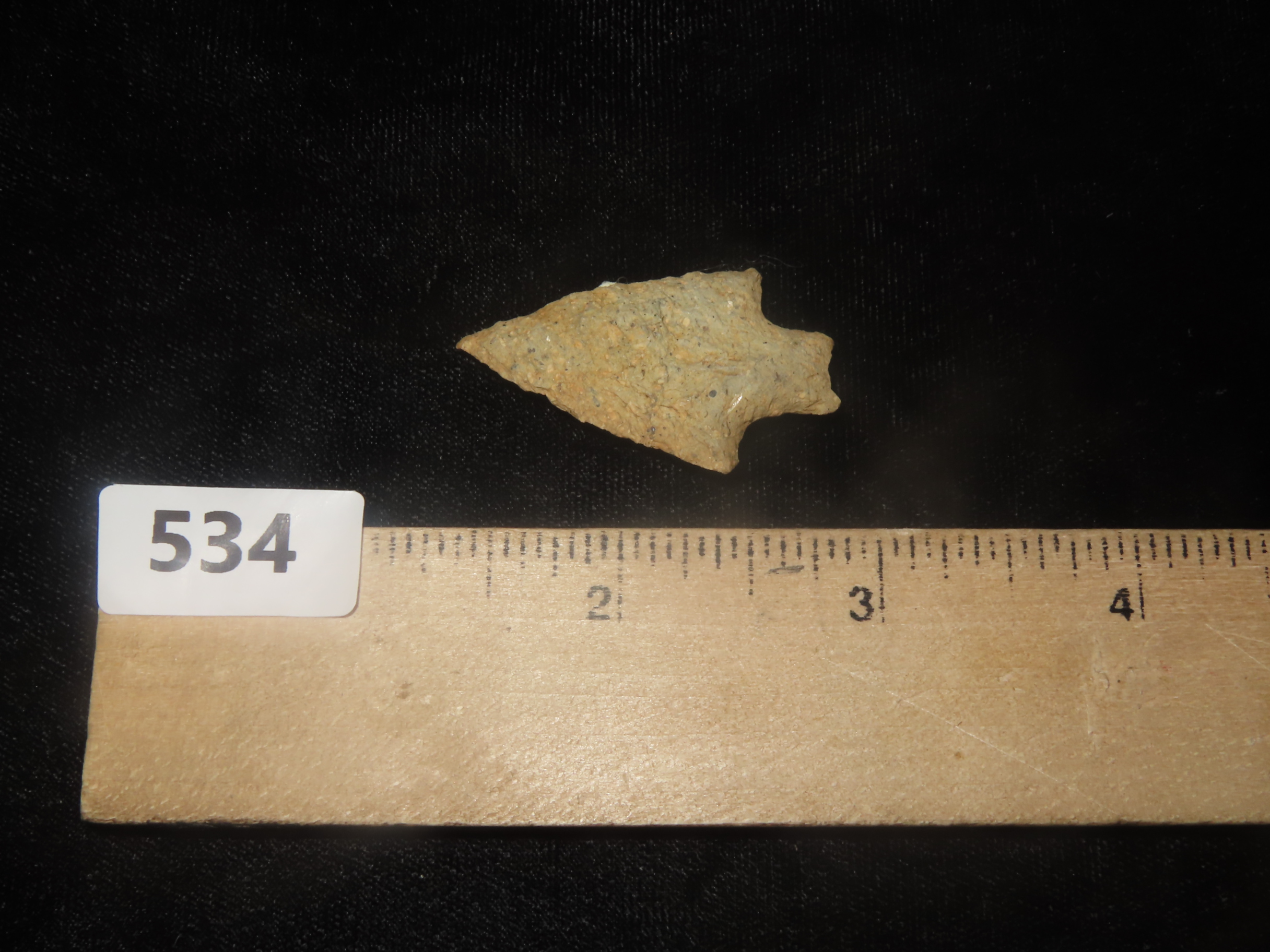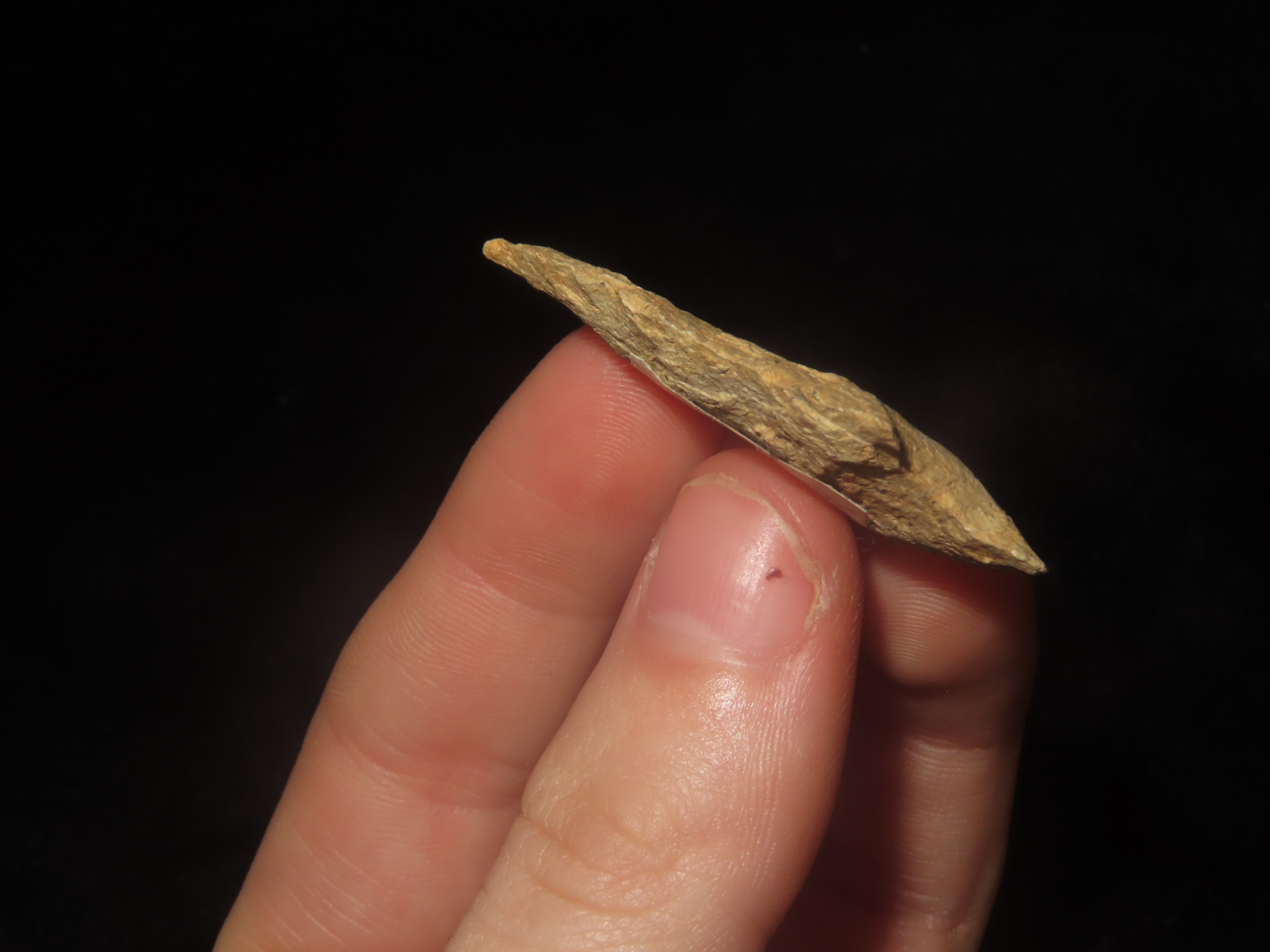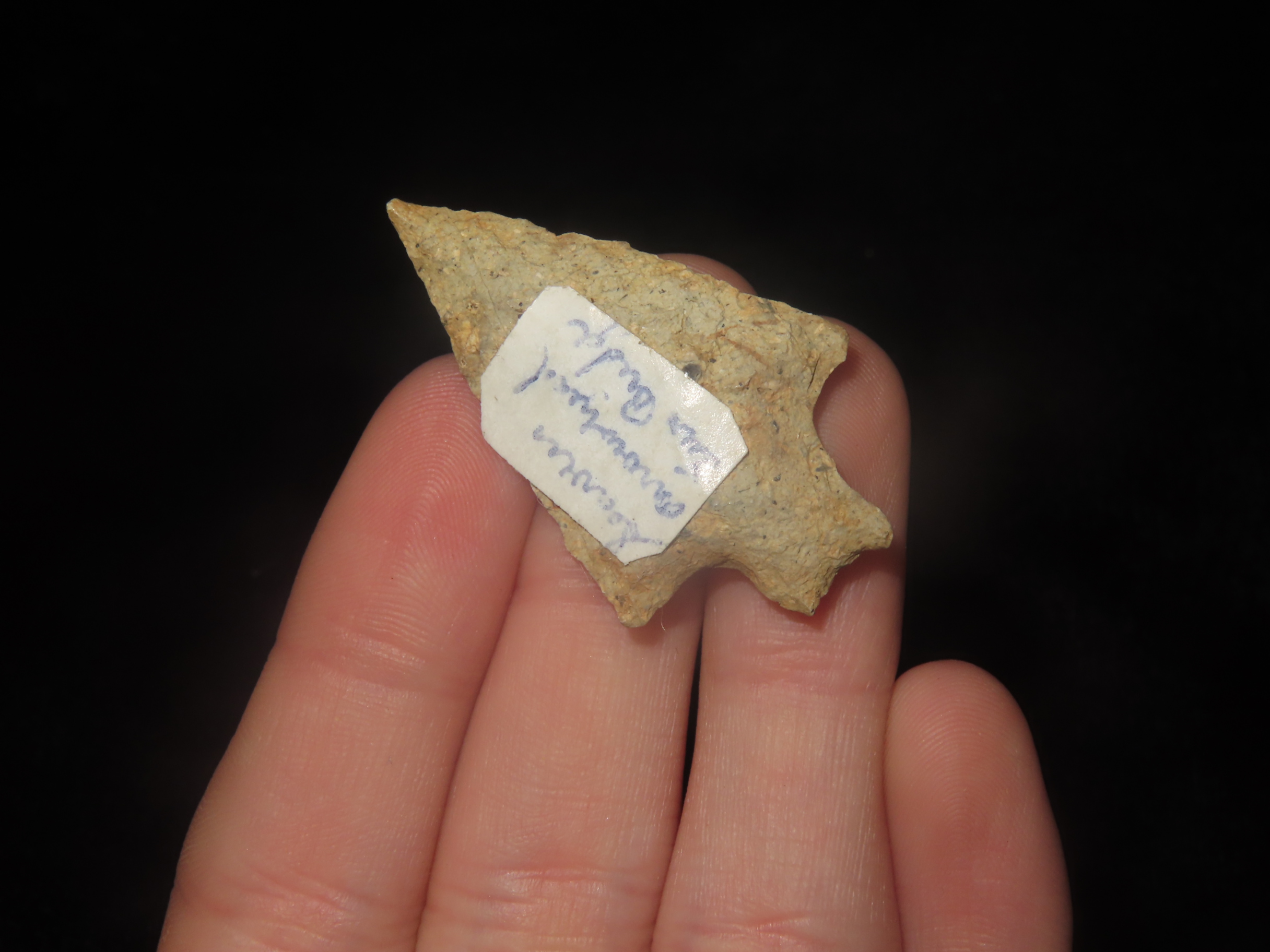1 5/8″ x 1″ Piscataway Pt, Rhyolite, found at The Beaver Site on the Marvin Farm in Attleboro, Massachusetts. Ex Peter Engstrom, Ex Dr. Robbins Collections