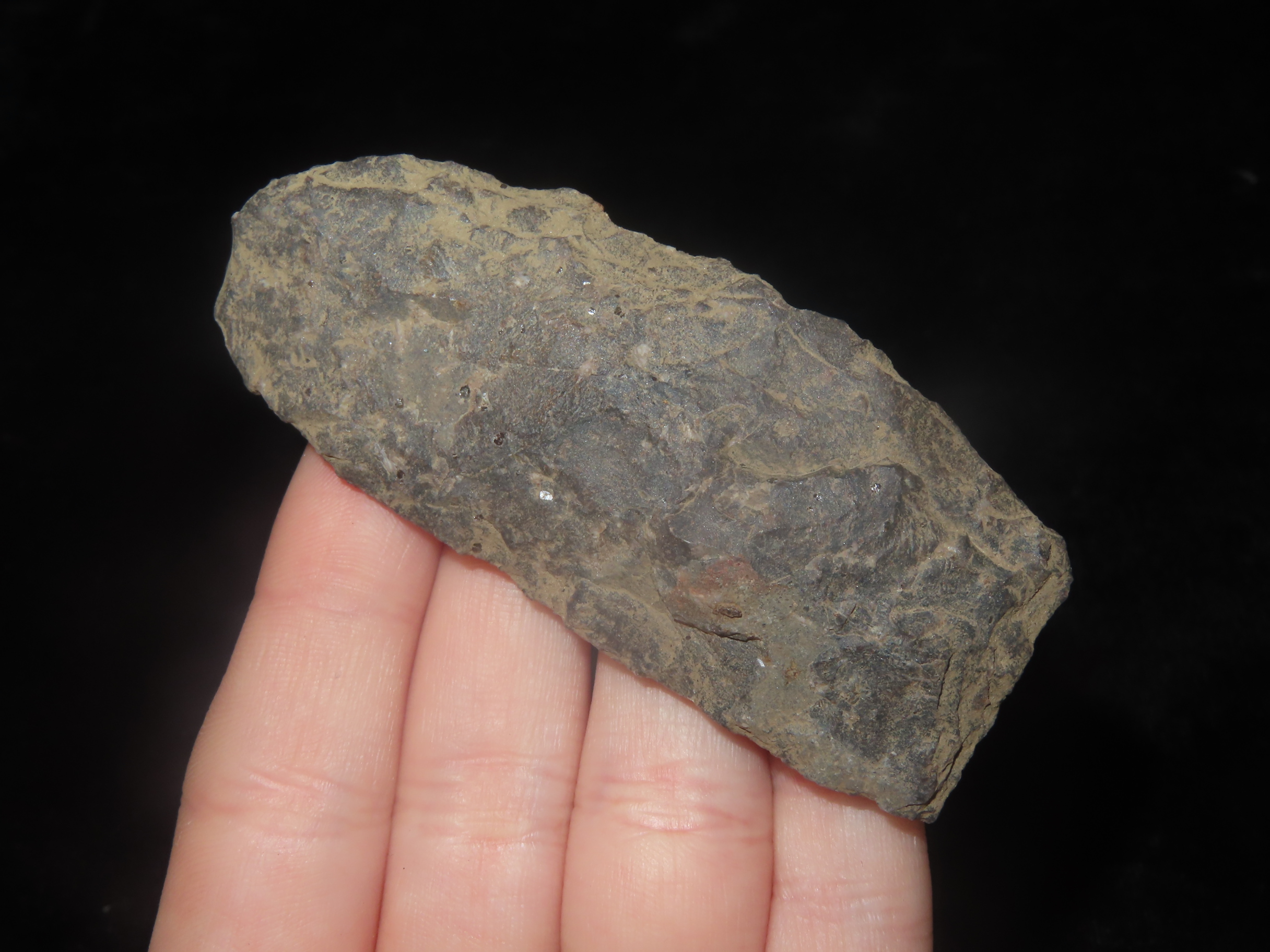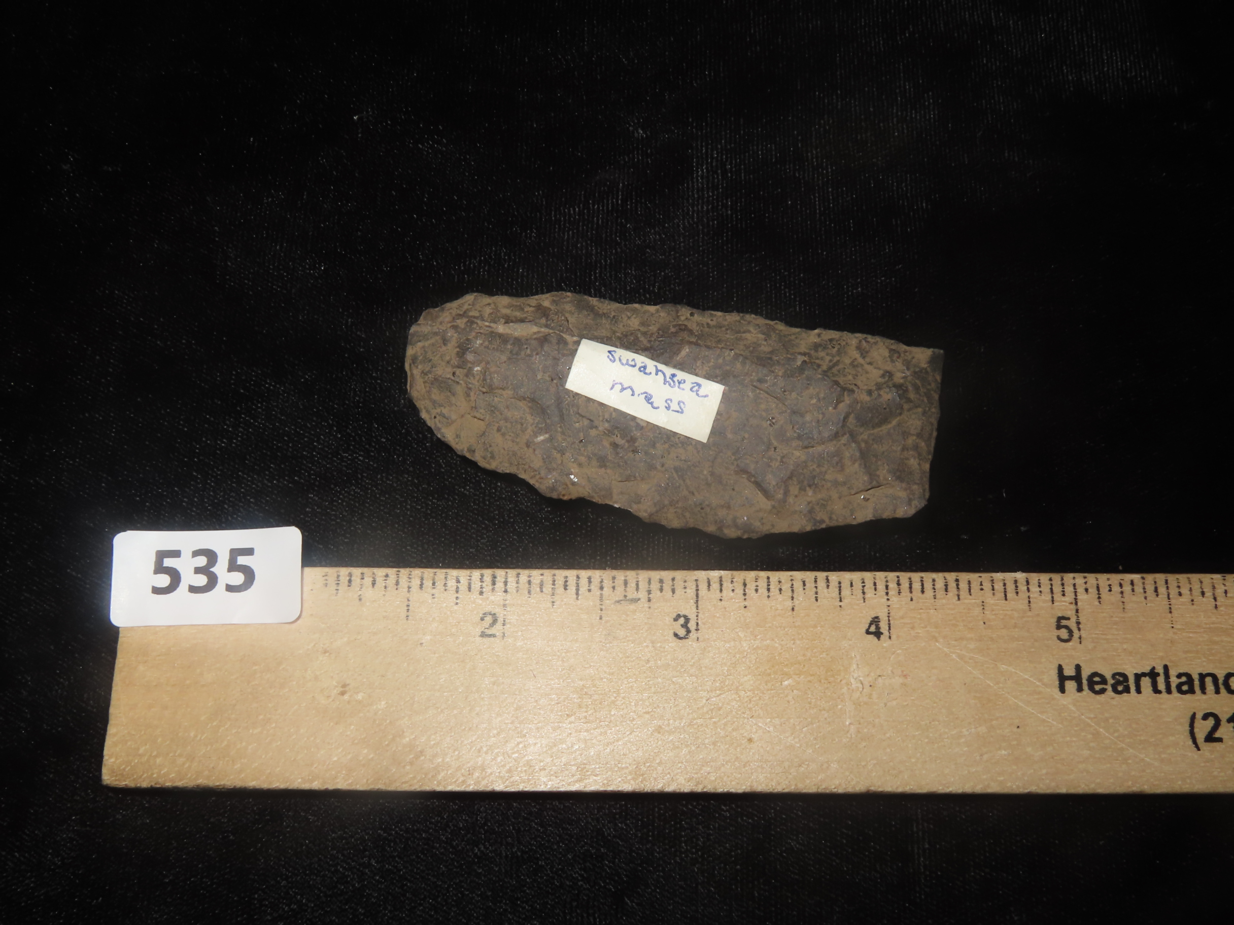 2 7/8″ x 1 1/4″ Mansion Pt., Purple Rhyolite, found at The Beaver Site on the Marvin Farm in Attleboro, Massachusetts. Ex Peter Engstrom, Ex Dr. Robbins Collections