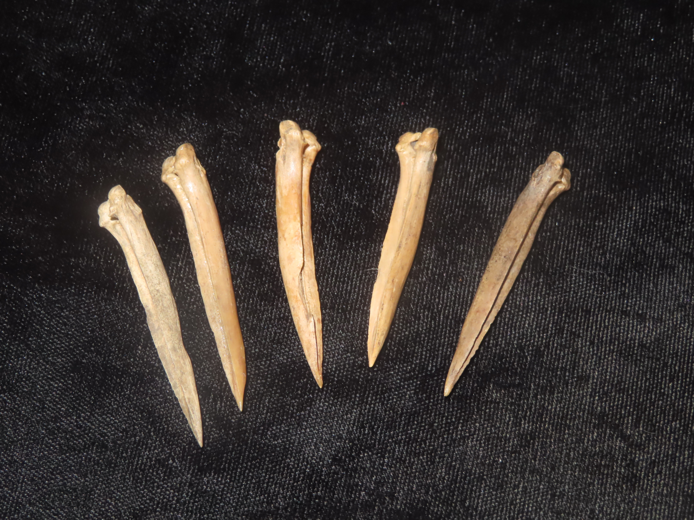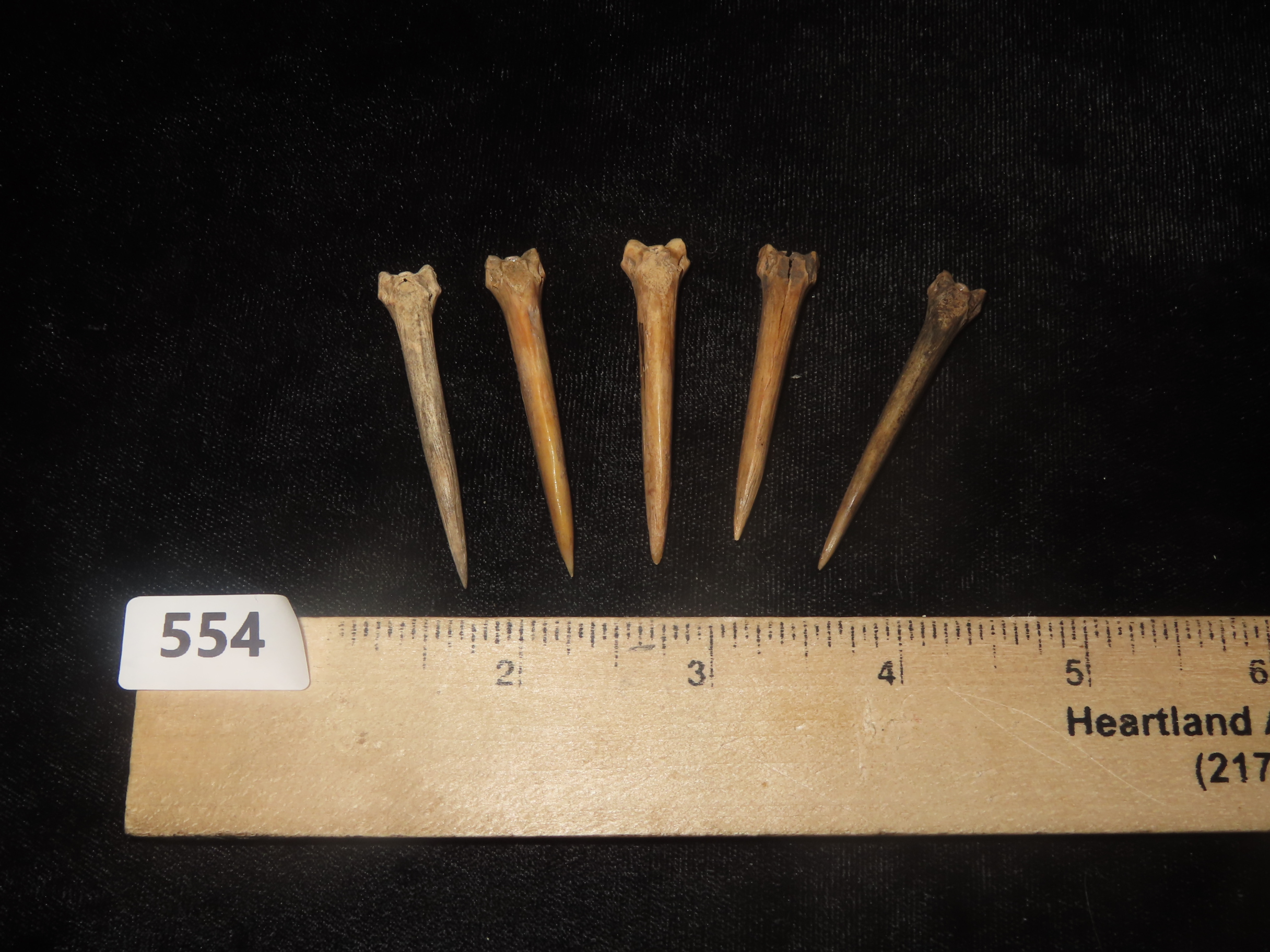 Lot of 5 Catfish Spine Bone Needles, found in Illinois River Bottom, Ex Charlie Cathers Collection