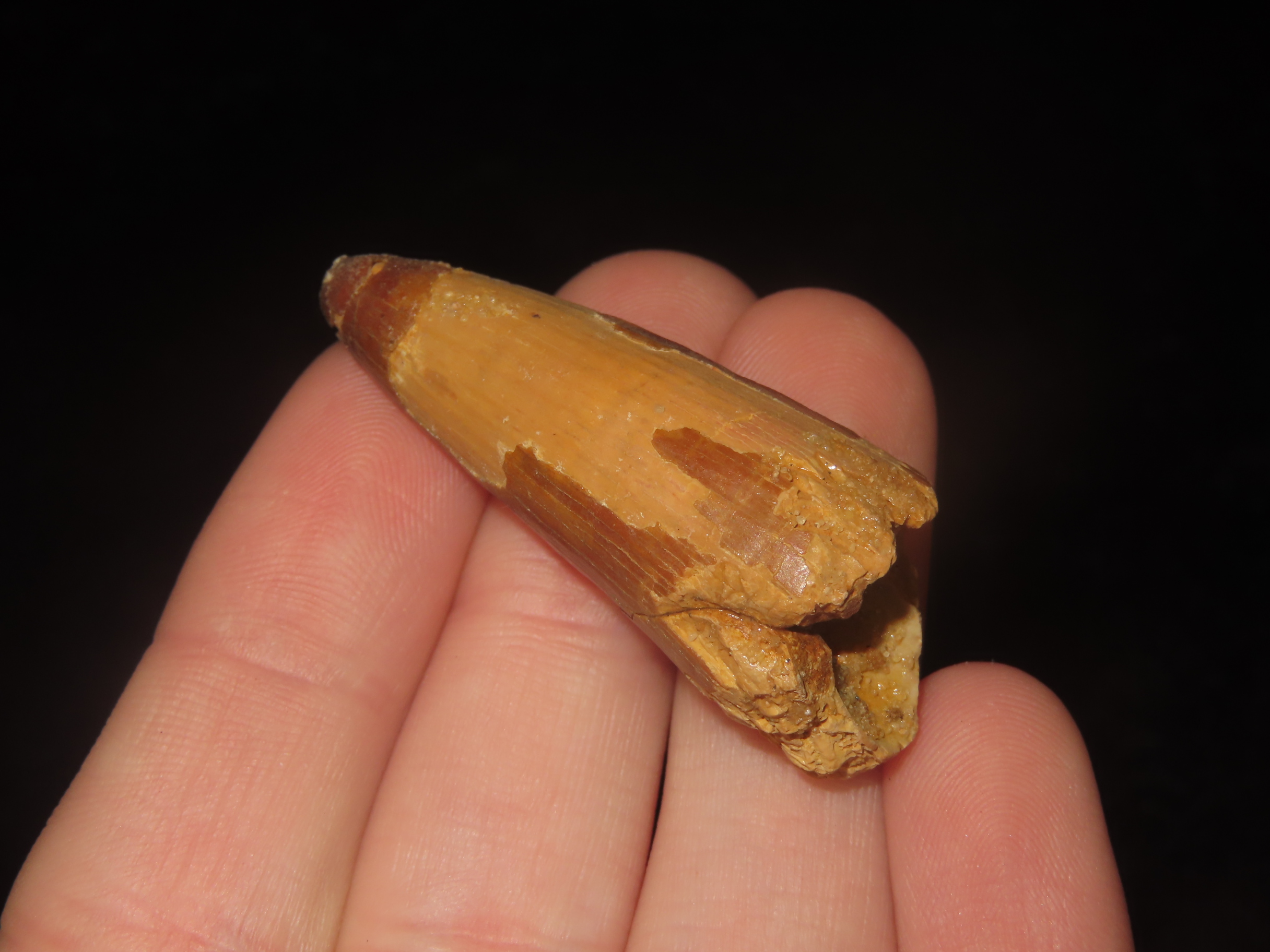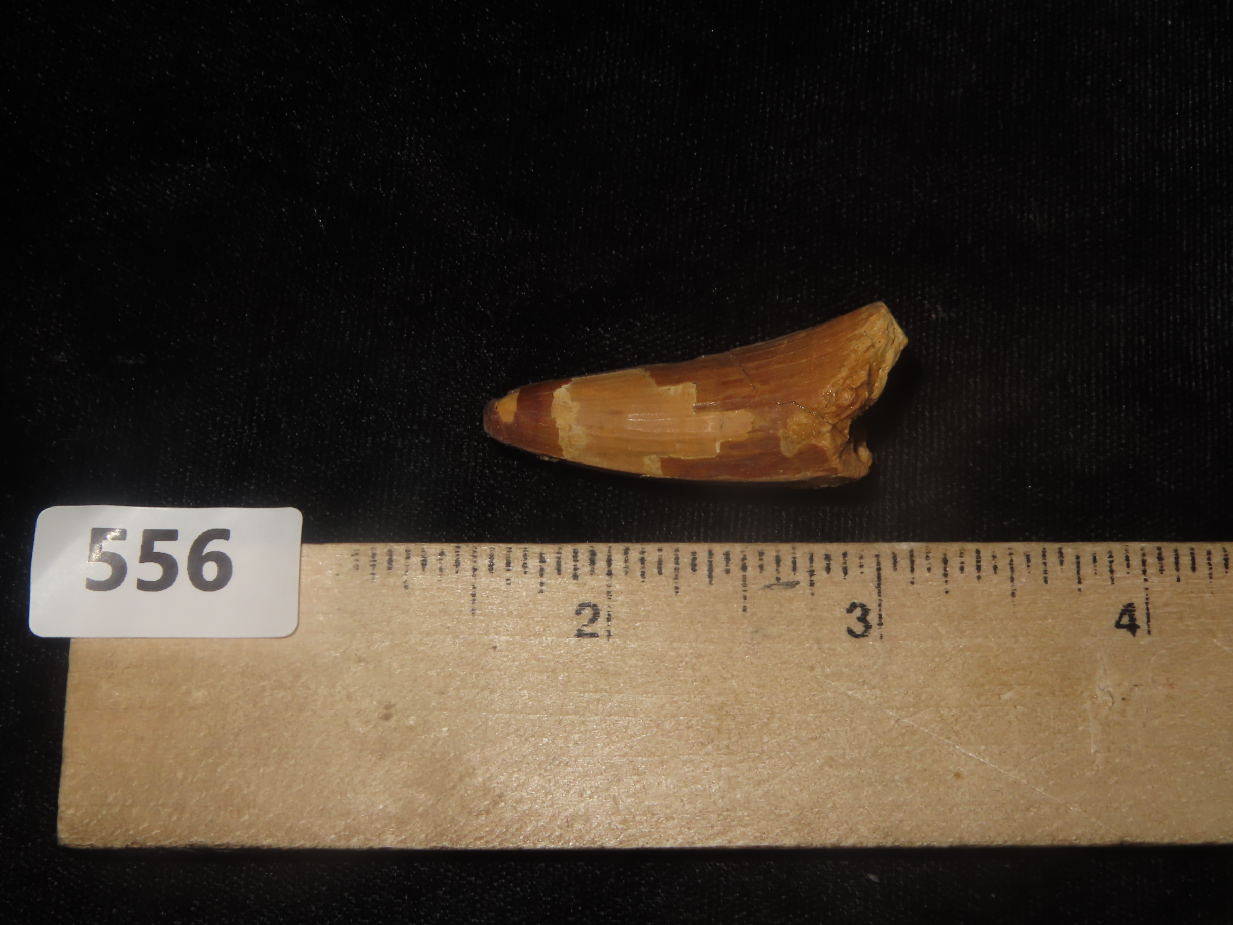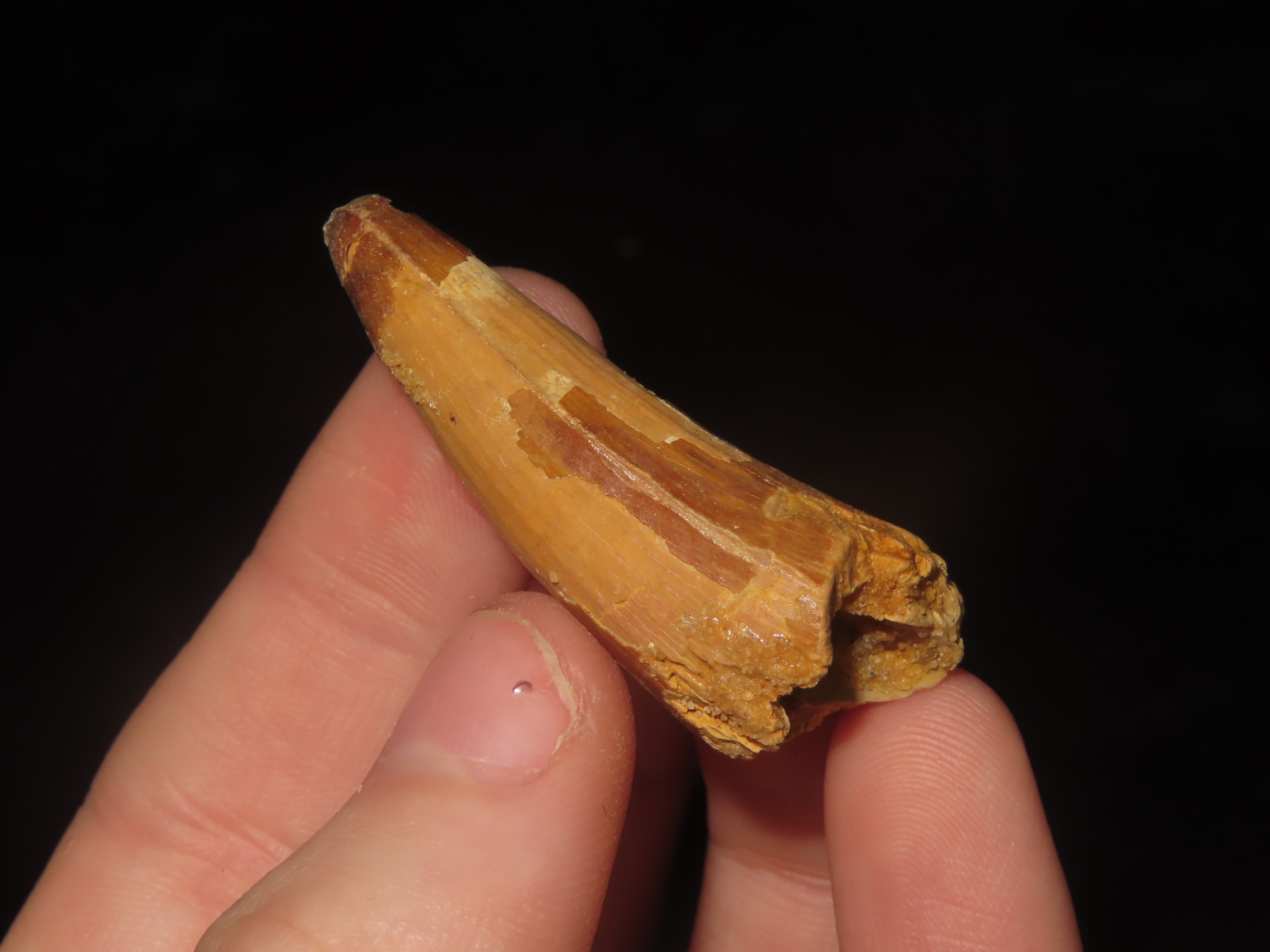 1 1/2″ x 5/8″ Fossil Spinosaurus Tooth, Upper Cretaceous Period, from Egypt, 112 MYA-71.2MYA