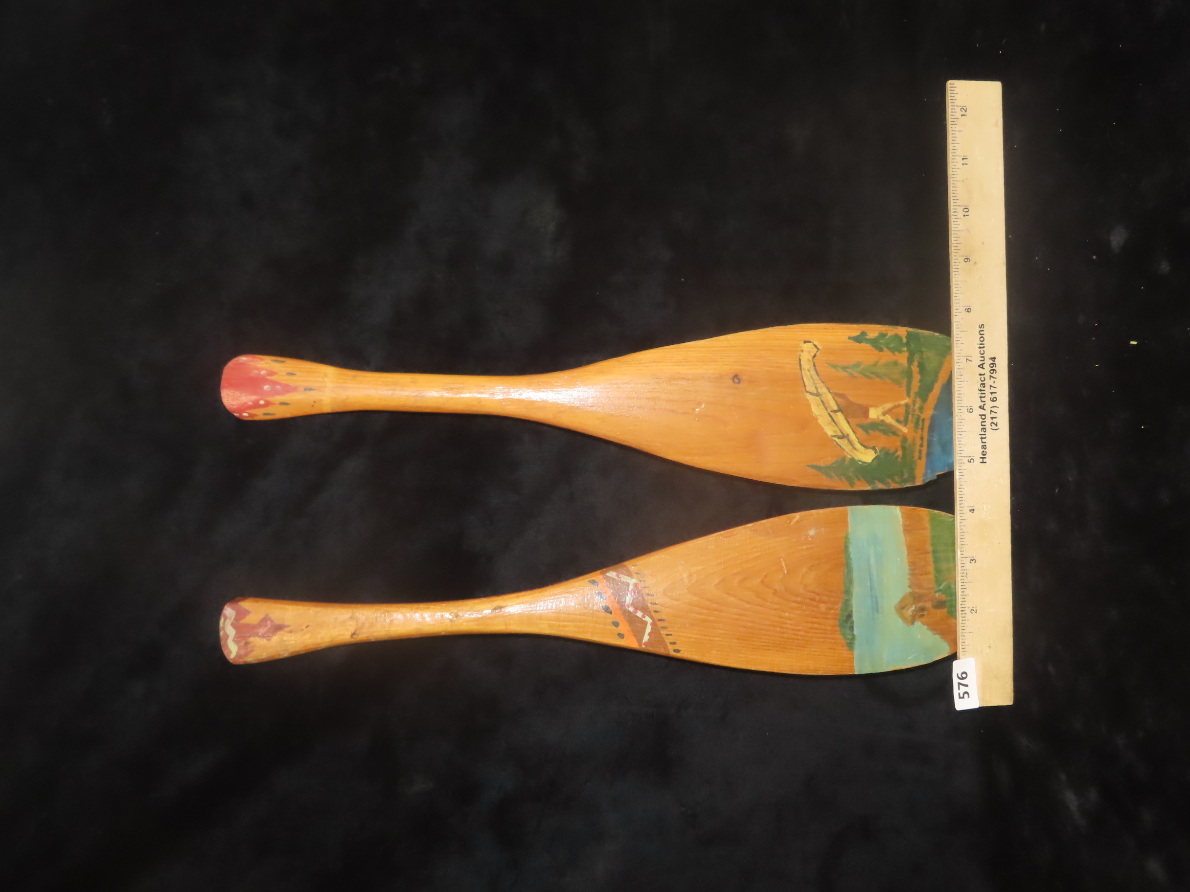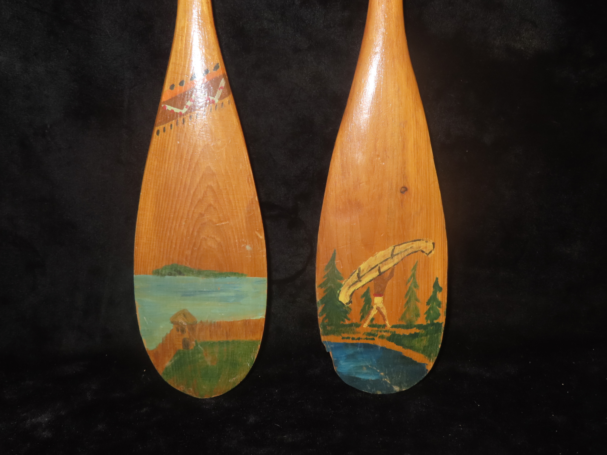 Pair of 16″ Hand Painted Decorative Canoe Paddles from Northwest Coast