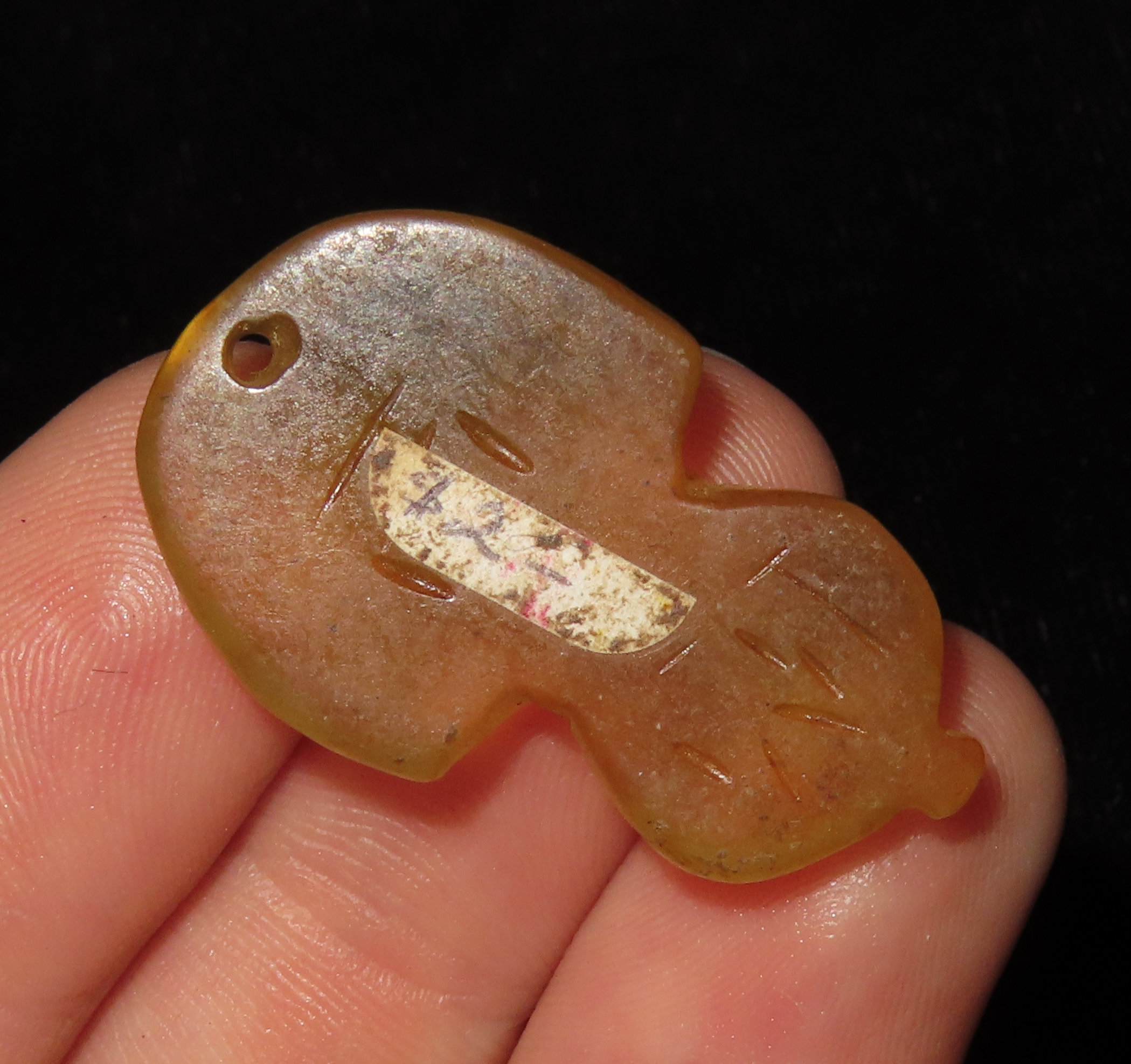 1 1/4" x 3/4" Antique Hongshan Jade Carving Pendant from China