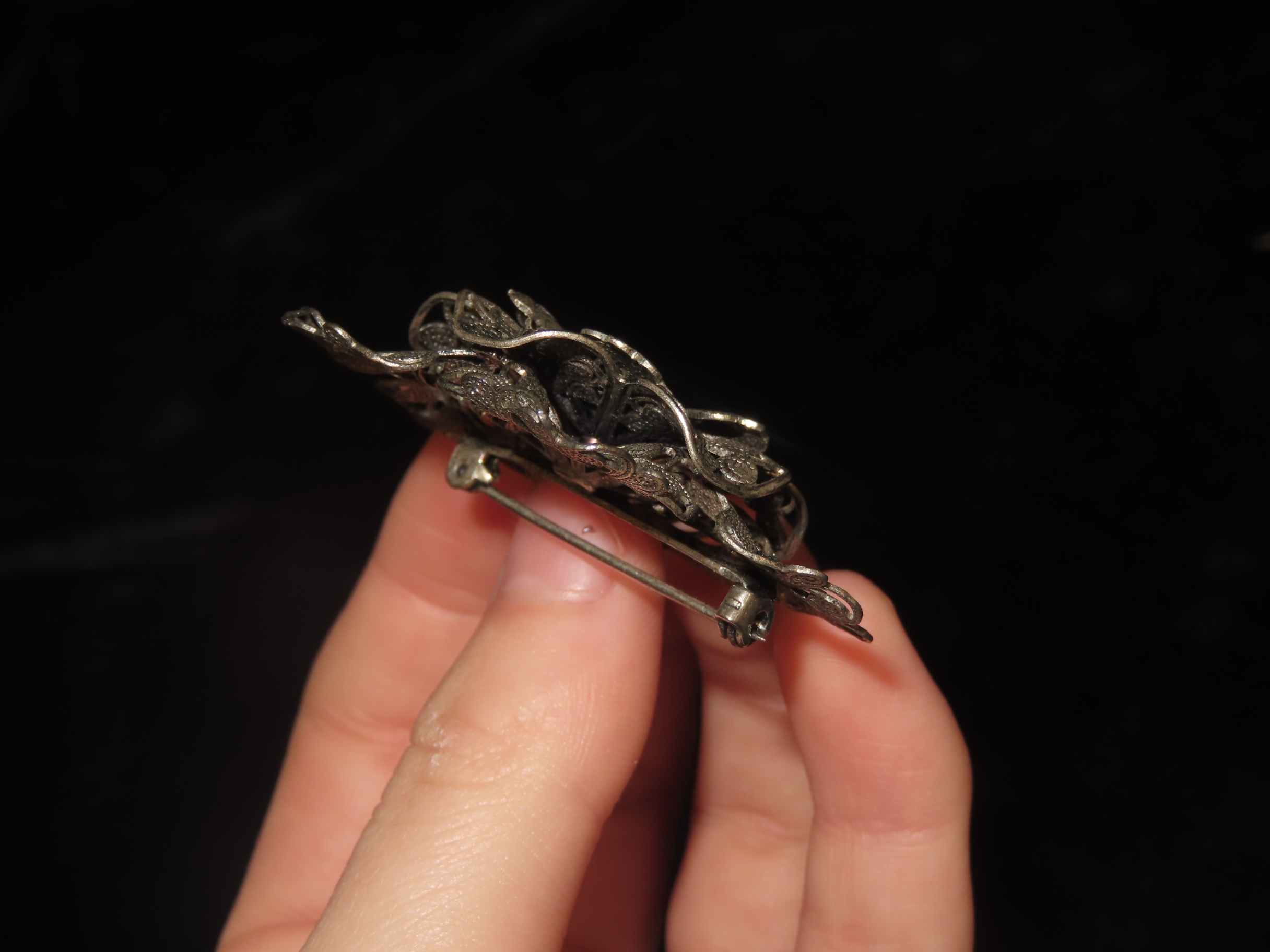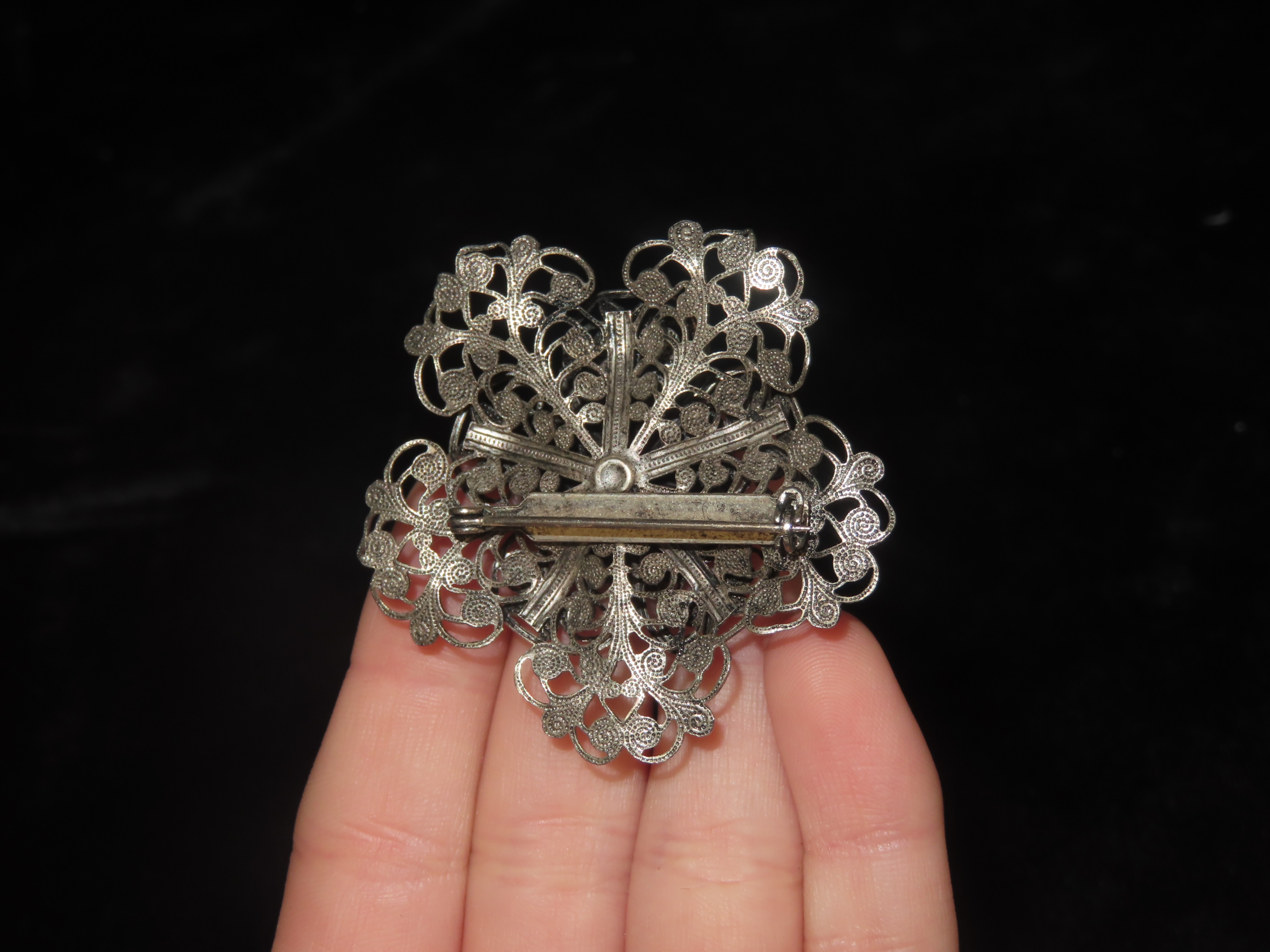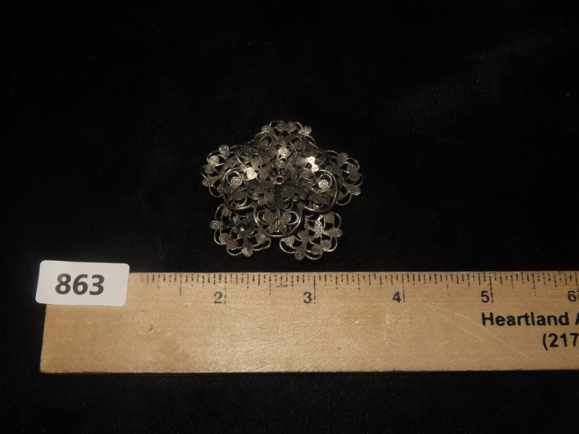 2" Fancy Filigree Silvertone Unmarked Brooch, South America